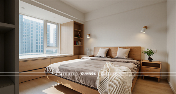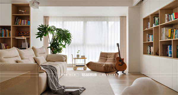 整體以橡木、白蠟?zāi)緸橹鲗?dǎo),從定制家具到墻面飾面,延續(xù)自然木紋的肌理。搭配大面積米白與暖灰基調(diào),營造出舒緩、柔和的治愈感空間。材質(zhì)與色彩的統(tǒng)一,使家如同一個包容的容器,清晰承載著居住者日常的脈絡(luò)與情緒。