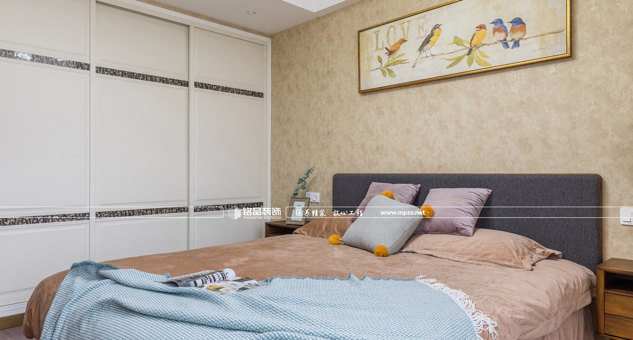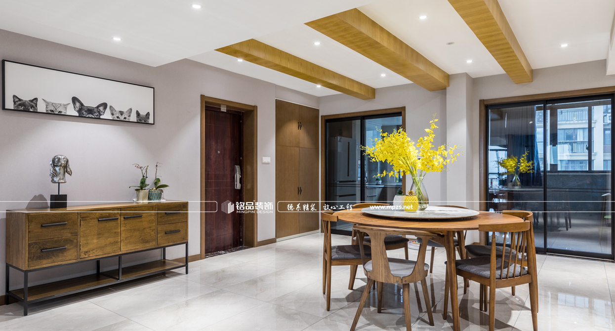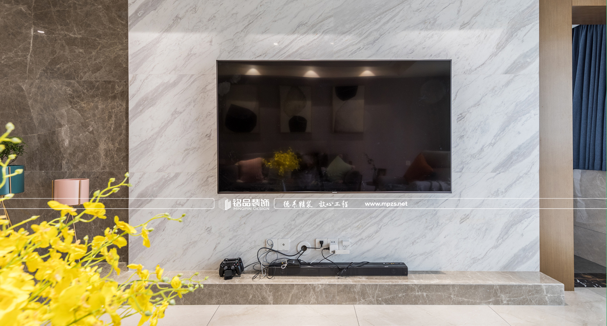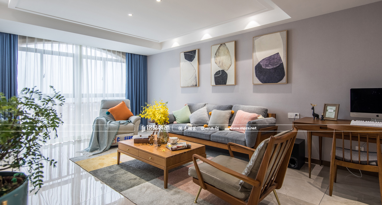 通過材質(zhì)的運(yùn)用,把空間進(jìn)行合理的劃分,完美呈現(xiàn)出北歐風(fēng)格的靈魂。延續(xù)硬裝設(shè)計(jì)與材質(zhì)上奠定的雅致,在沉穩(wěn)的空間基調(diào)上,植入生動的軟裝表現(xiàn)手法。以步步帶入的層疊關(guān)系逐步渲染出整個空間的格調(diào)與品質(zhì)??蛷d大面積大灰白石材背景的利用,增加了空間的層次感,墻面掛裝飾畫使墻面看起來不會過于蒼白,更加生動豐富,優(yōu)雅又有藝術(shù)氣息,提升格調(diào),讓空間中的重點(diǎn)之處富有活力,固定式的石材地臺取代傳統(tǒng)的電視柜給人以簡約大氣感覺,整個空間以灰調(diào)做底配上原木系家具,使整個房子生動而富有情感,讓身心放松自在。
