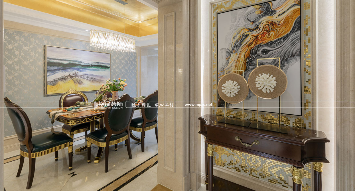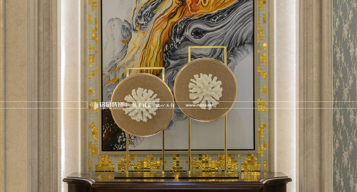 業(yè)主兩夫妻對于歐式的風(fēng)格很喜歡,要求整體風(fēng)格大氣,富麗堂皇一點。所以在材質(zhì)的選擇上以銅、不銹鋼,水晶馬賽克、大理石、水晶燈等為主。最求大氣,奢華的感覺為主。整套美式風(fēng)格裝修設(shè)計的家居環(huán)境中,大多都是統(tǒng)一色系的裝修色彩。而在其裝修色彩的采用上,為了凸顯其歷史的文化底蘊,很少采用明亮輕快的色澤,多用深棕色系。