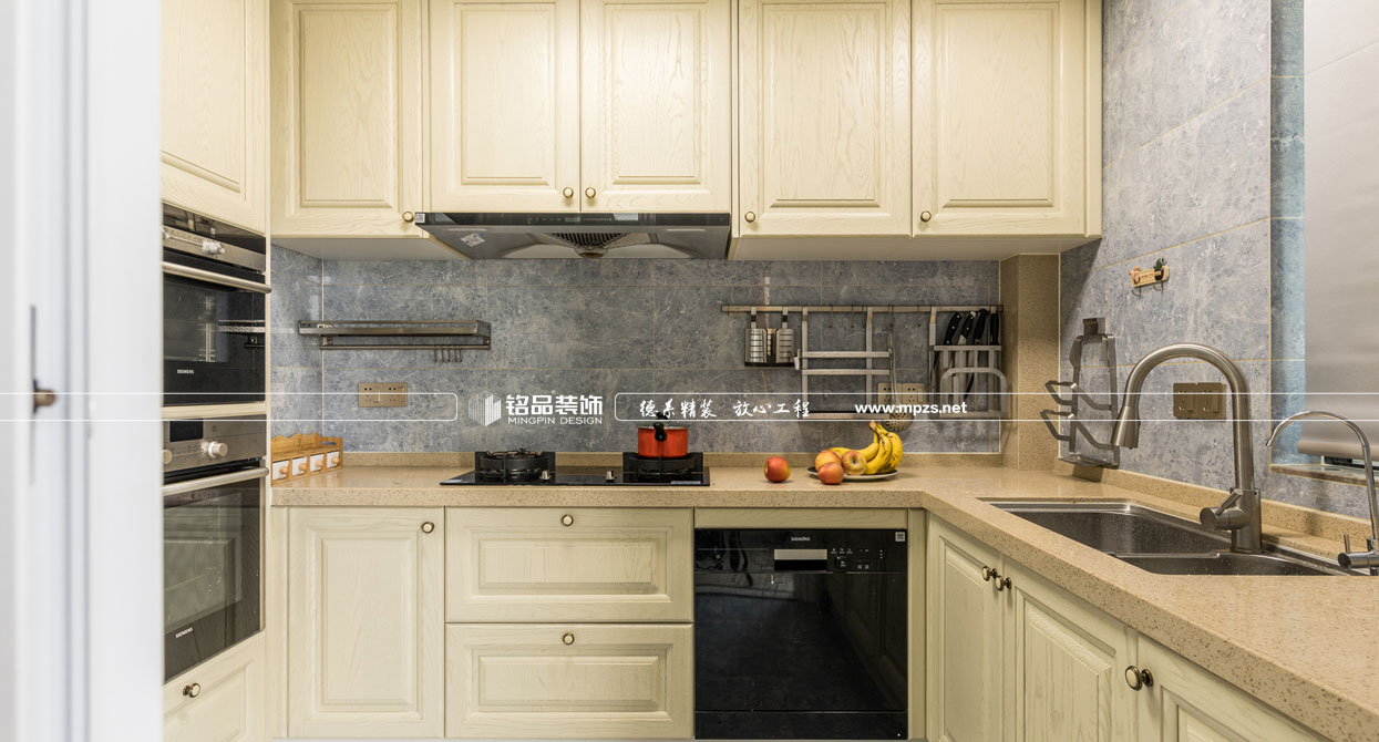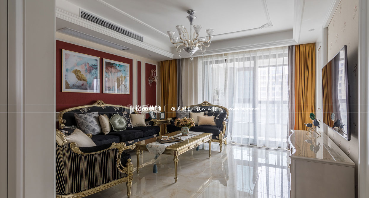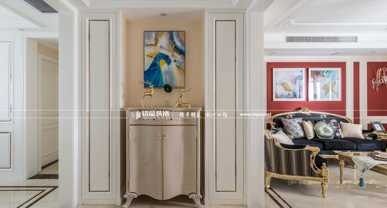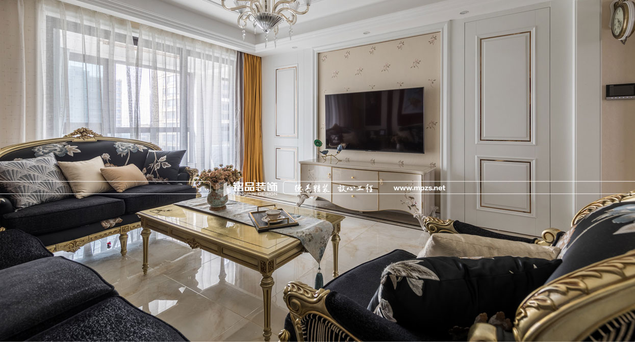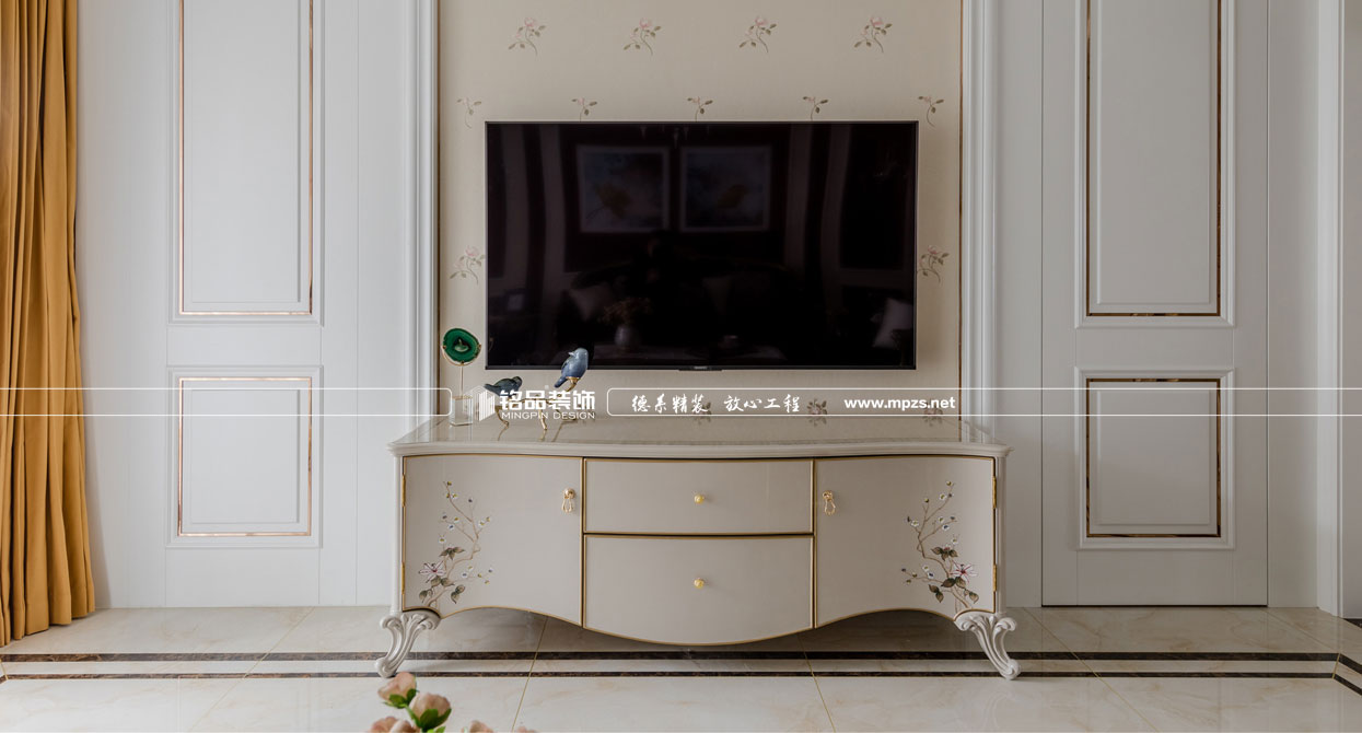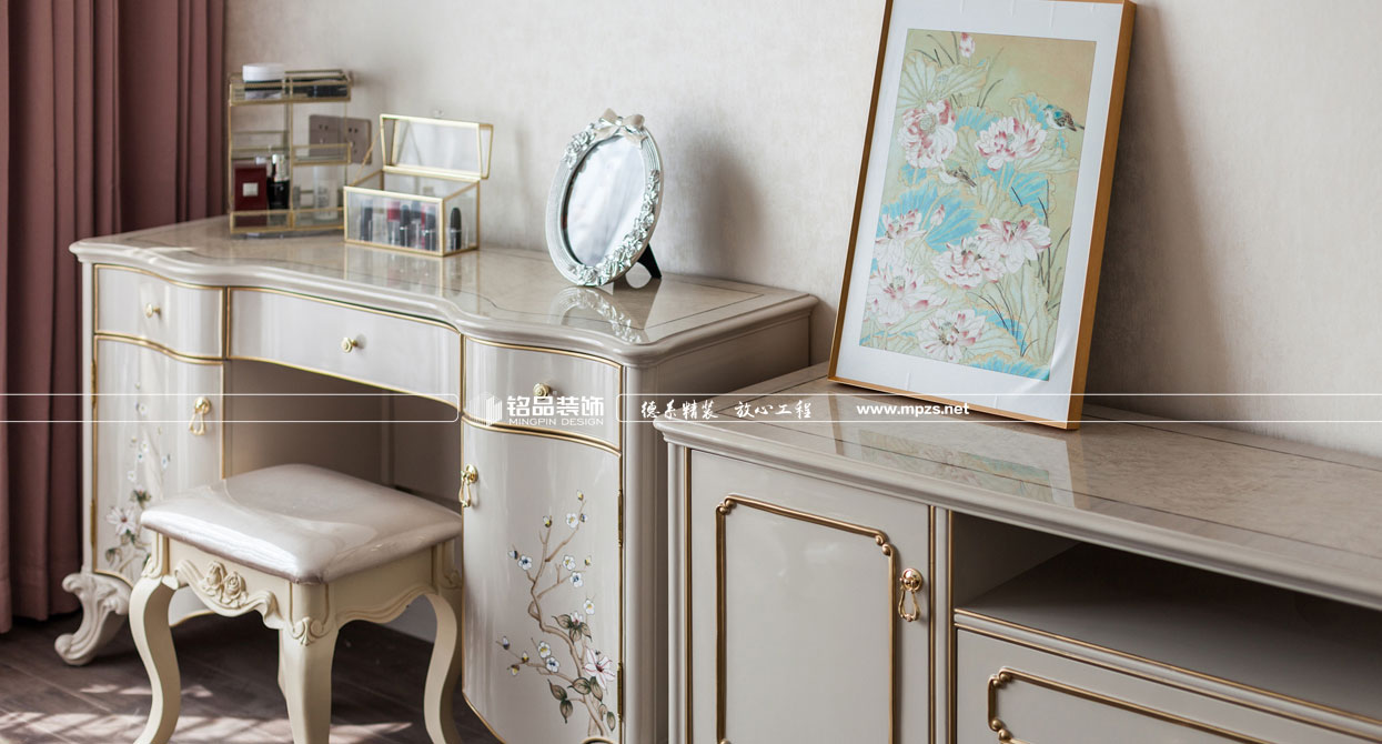 同樣的復(fù)古情調(diào),不一樣的味道??蛷d色調(diào)以米黃色為基底,玫瑰金的線條點綴,整面流線造型的沙發(fā)背景墻,給雅靜的空間帶來生機(jī)。餐廳,運用頂上雕花線與金屬欠條護(hù)墻裝飾空間,線條的運用像一條完美的分割線,發(fā)掘了整個空間細(xì)膩華麗的風(fēng)采