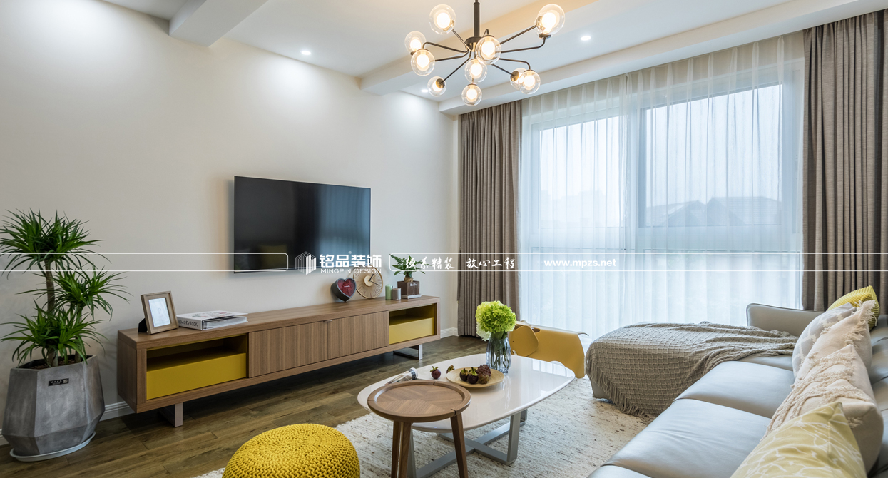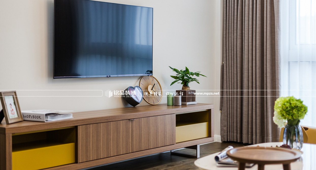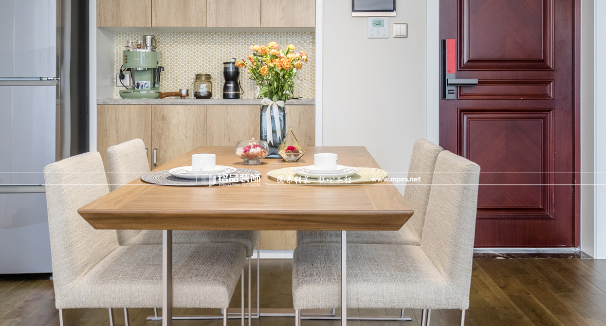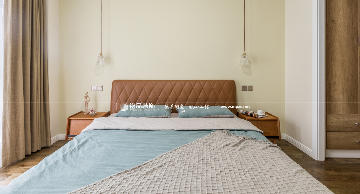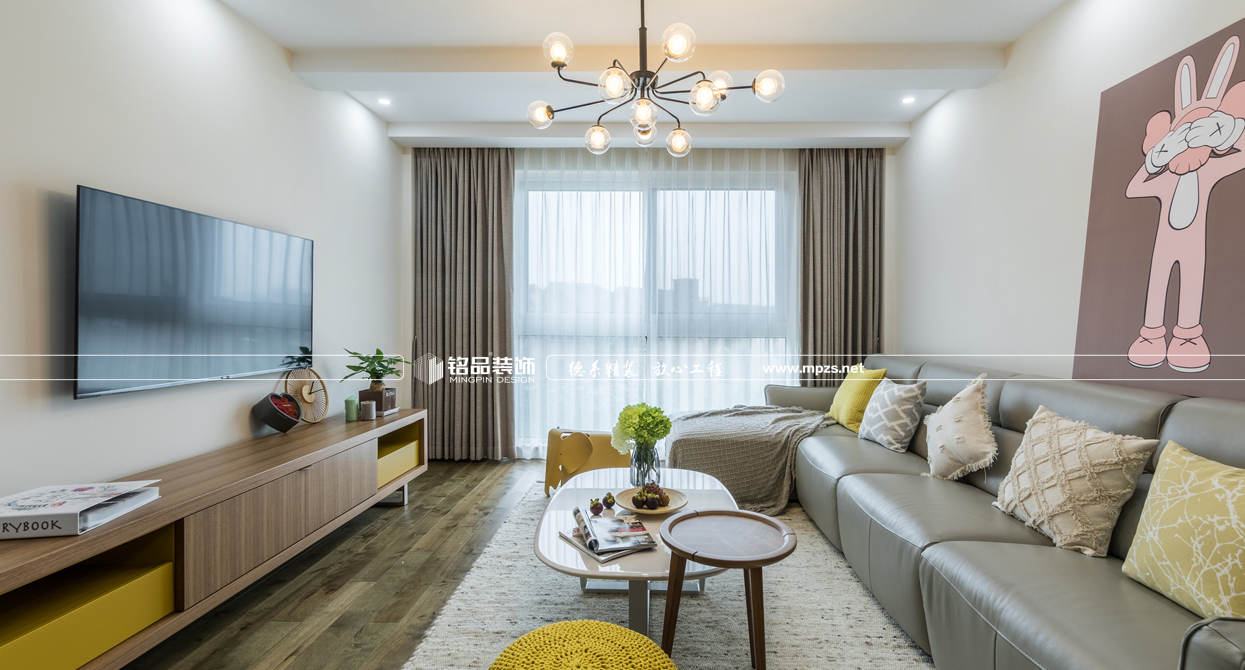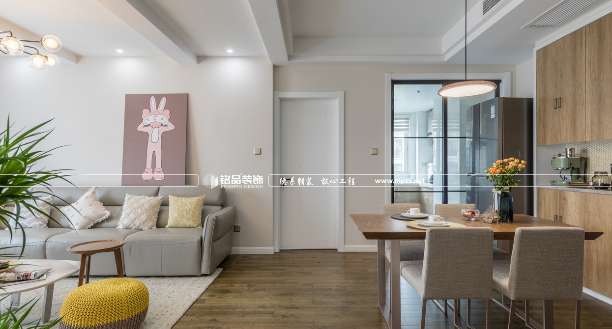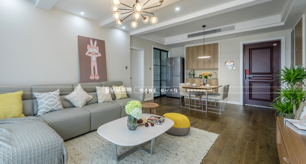 整屋地板配上木質(zhì)家具,墻面不做過多的處理,用干凈簡單的乳膠漆調(diào)色,搭配皮質(zhì)沙發(fā),整個空間就很層次。軟裝上面也是花了一點(diǎn)心思,有了一點(diǎn)俏皮的粉色來做點(diǎn)綴,讓整個房子更活潑生動。