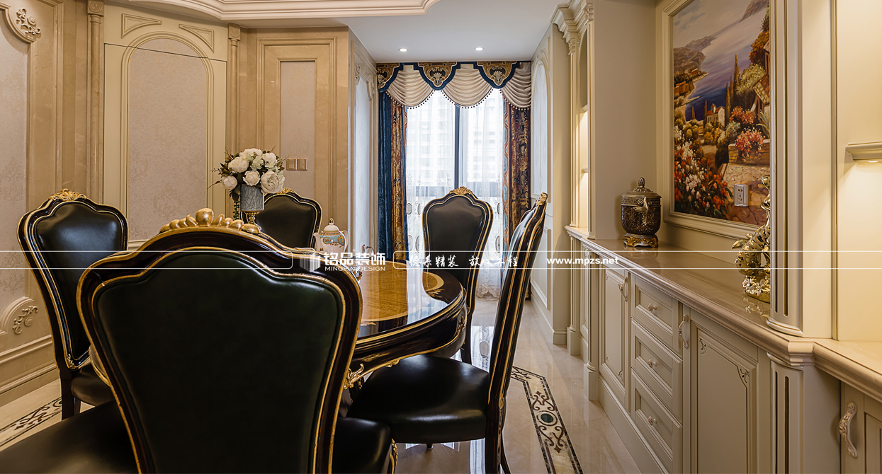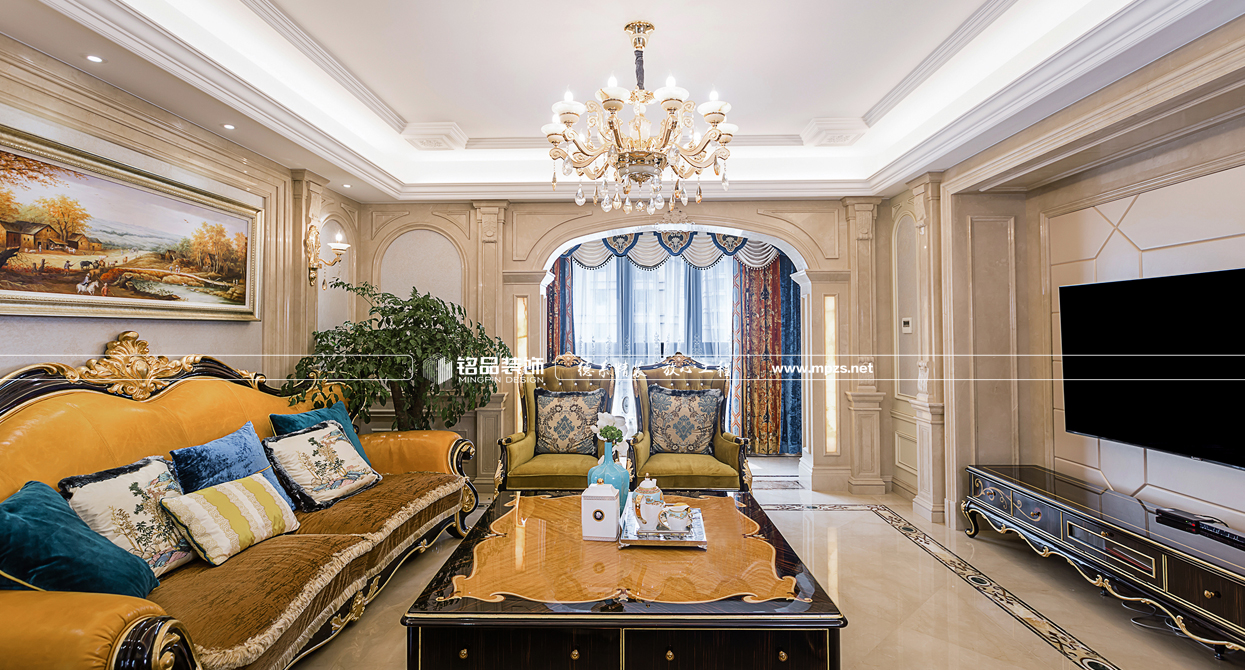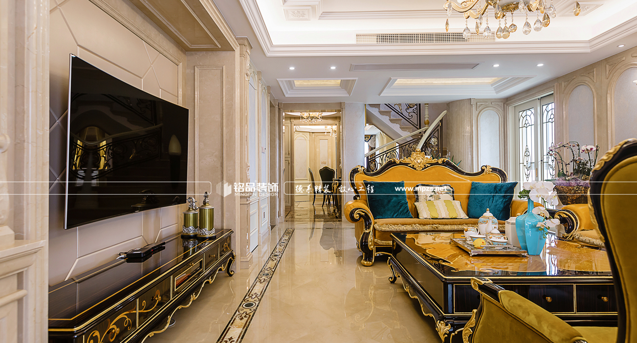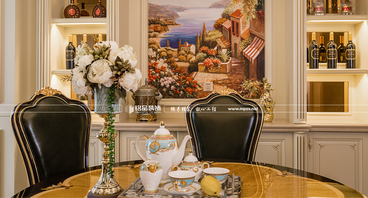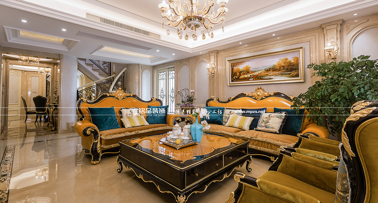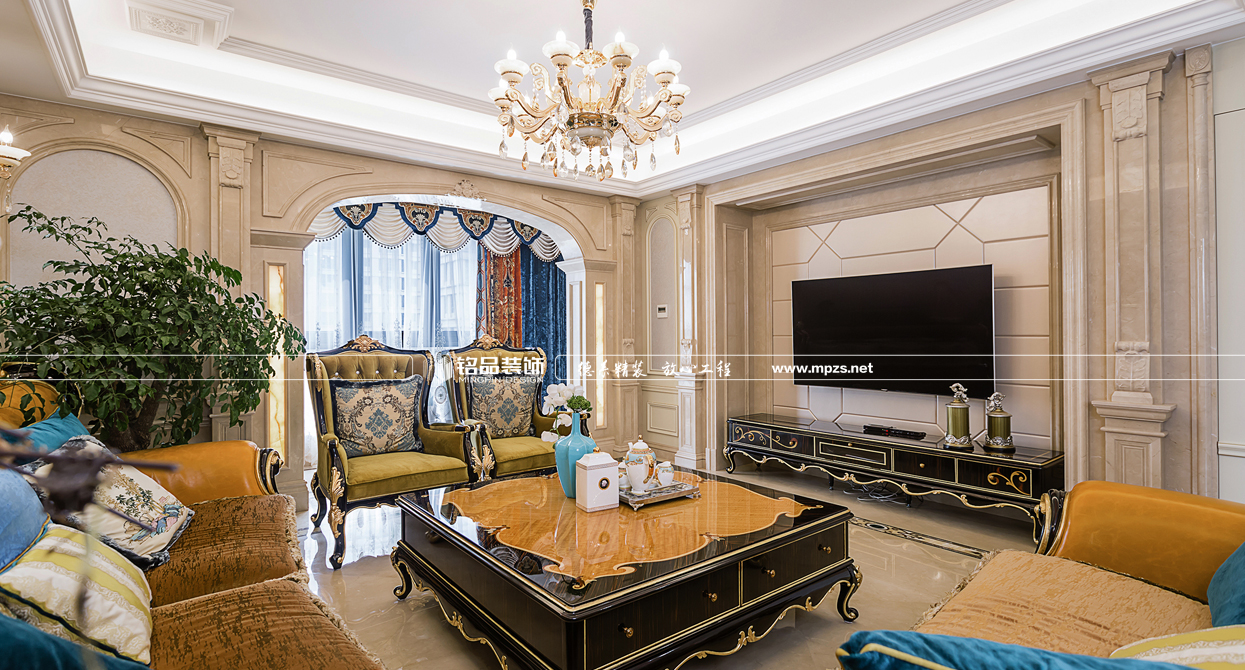 房屋的整體空間比較開闊,最初的設(shè)計(jì)理念是希望整體的效果比較厚實(shí)但并非用深色系,凸出歐式效果的奢華,讓空間看似大氣又精致