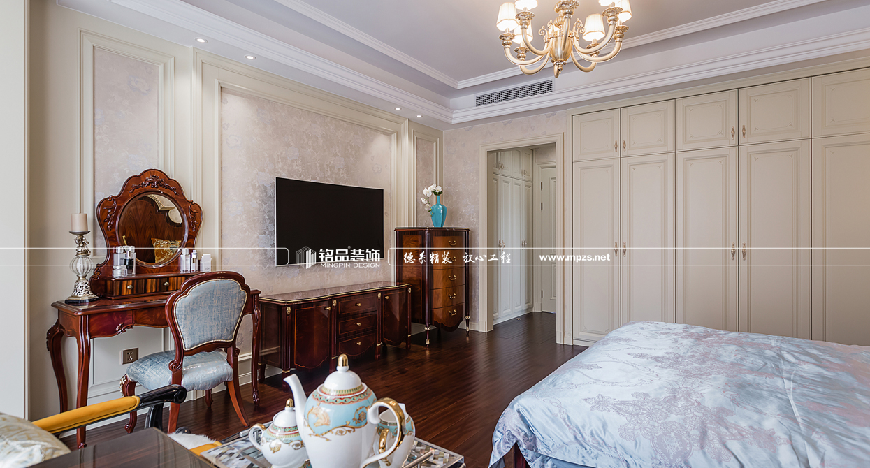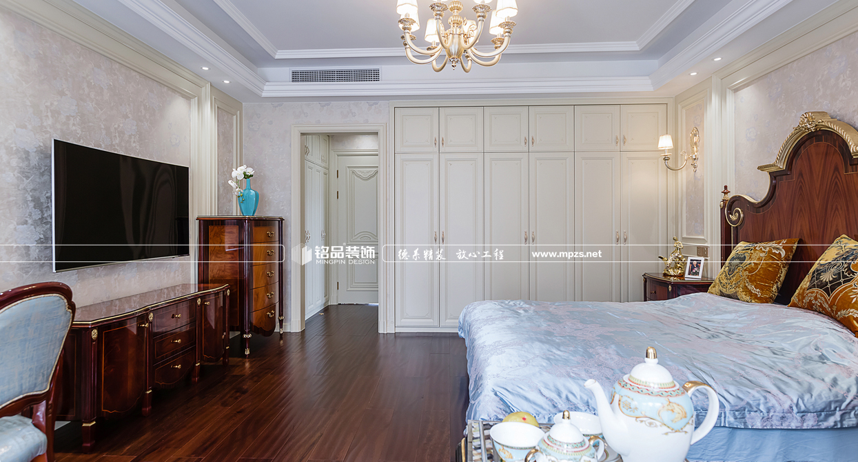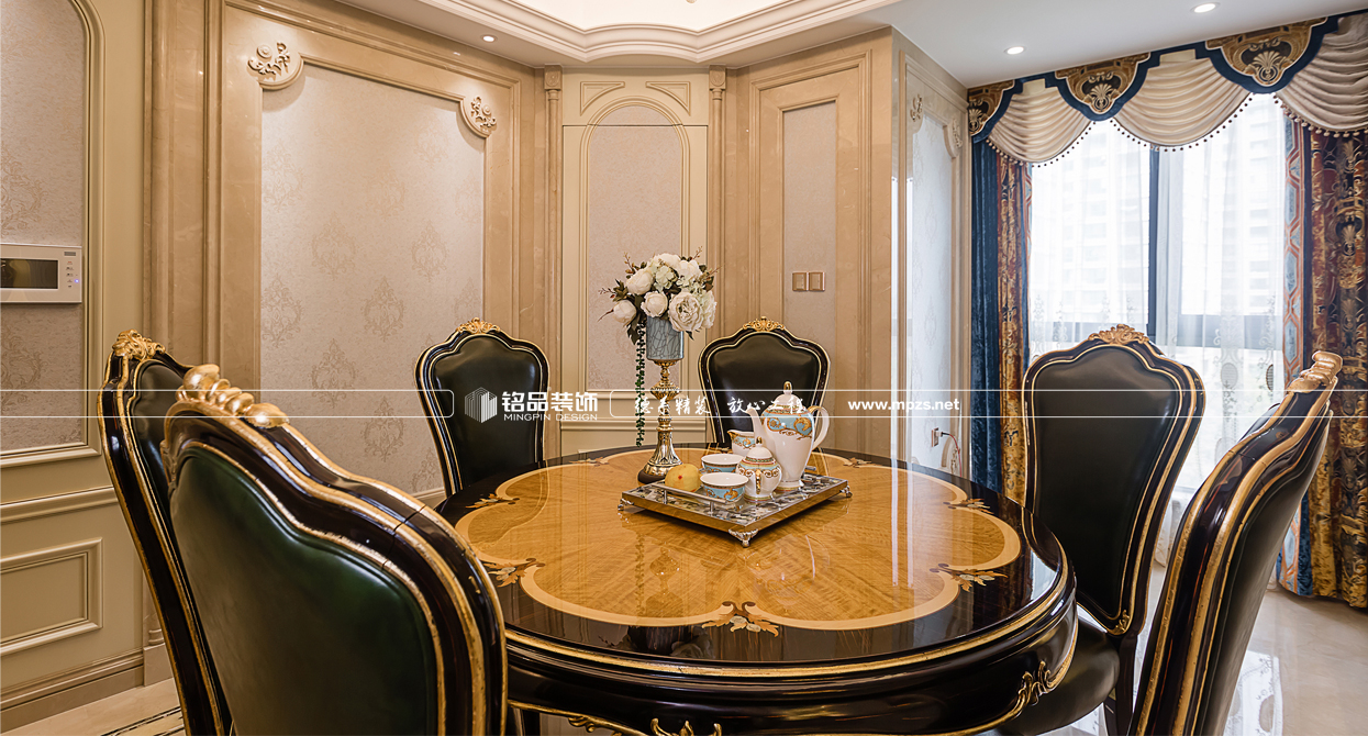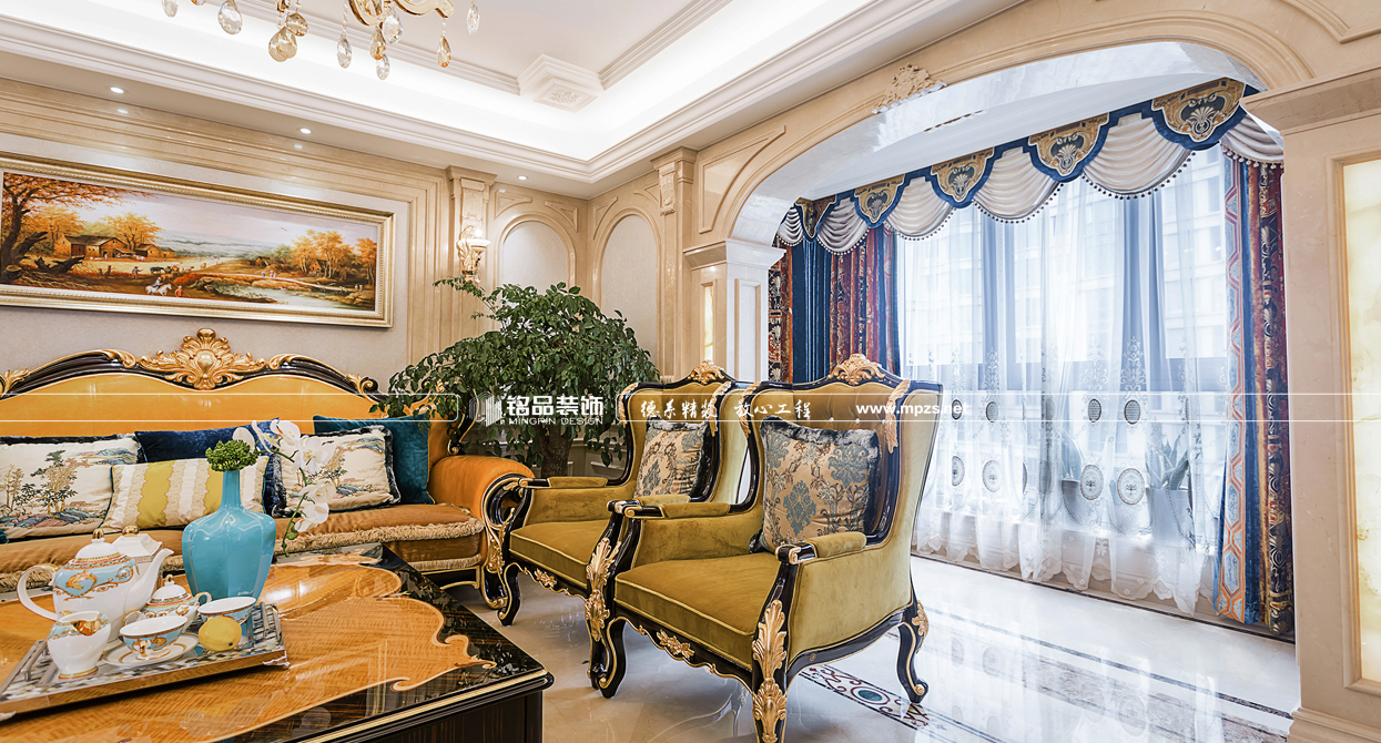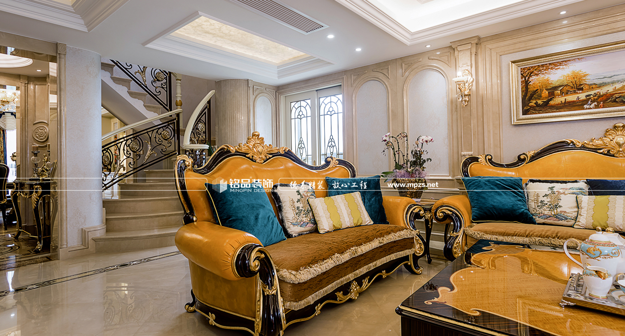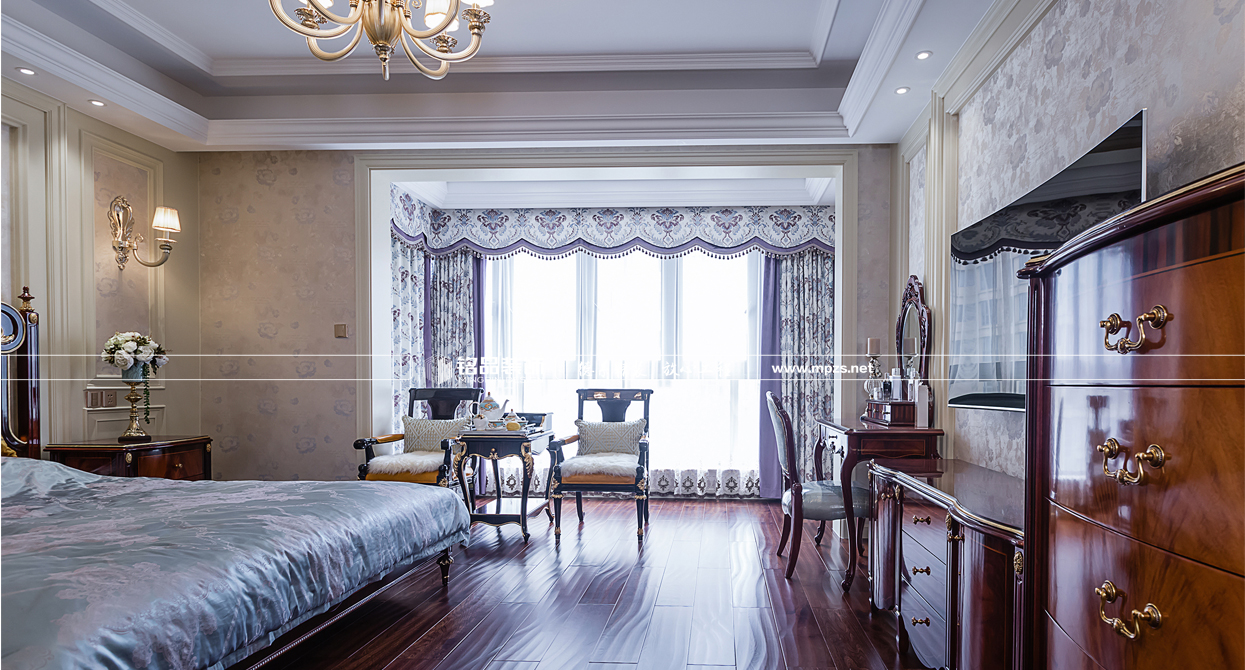 房屋的整體空間比較開闊,最初的設(shè)計(jì)理念是希望整體的效果比較厚實(shí)但并非用深色系,凸出歐式效果的奢華,讓空間看似大氣又精致