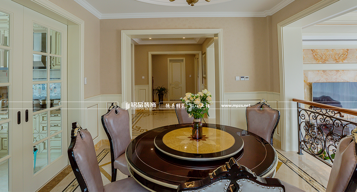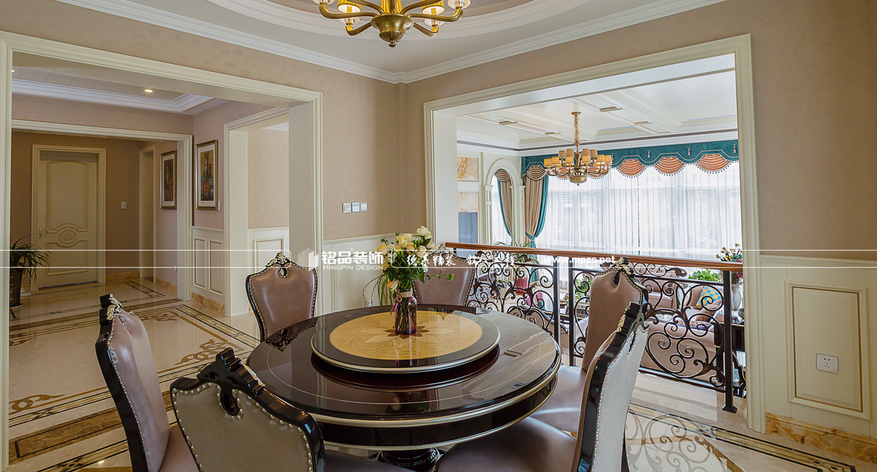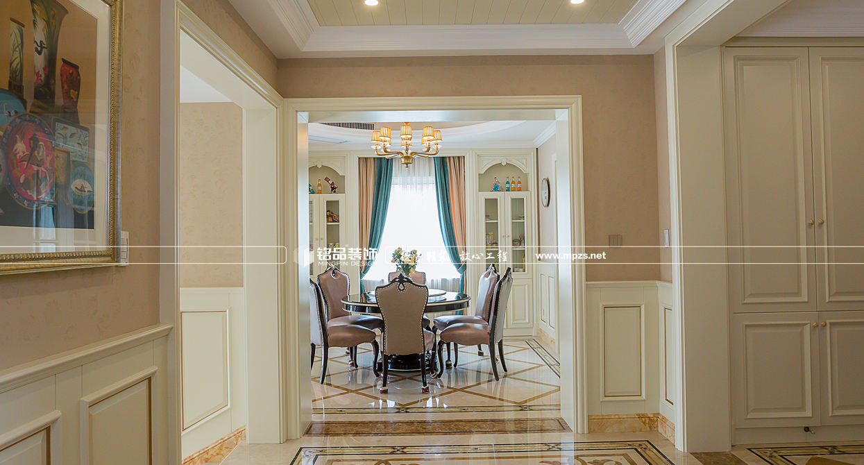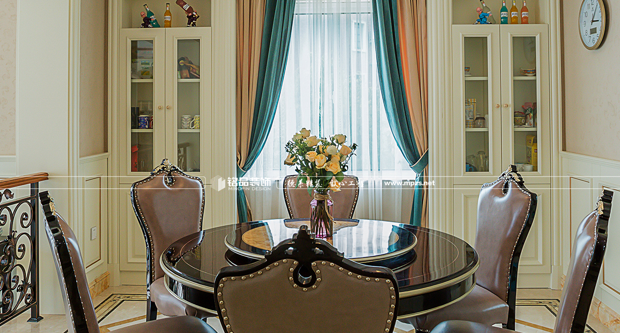 我認(rèn)為這并不算設(shè)計(jì)理念,可以說是設(shè)計(jì)構(gòu)思吧。這個(gè)戶型是一個(gè)典型的小獨(dú)棟,因此四面都是有窗戶的,在設(shè)計(jì)上不用擔(dān)心空間的采光問題的同事,要解決的是整體空間的溫馨度的問題。說到采光南面的玄關(guān)就是要解決的,所以把玄關(guān)進(jìn)深加大,為了解決兩個(gè)問題,一是保證客廳到玄關(guān)的門洞既大氣又會有足夠的光,另外可以讓電視背景加長。功能分配:滿足兩個(gè)客戶的主要需求,客戶好客而且有著好廚藝,因此設(shè)計(jì)了雙餐廳,利用原有的停車庫做了餐廳包廂,另外一個(gè)大功能需求就是,兒童房需要獨(dú)立的學(xué)習(xí)空間,主人需要獨(dú)立的會客書房。其他需求,整體上要溫馨,客廳保持大而不空洞。設(shè)計(jì)中這些問題都一一解決。利用混搭的設(shè)計(jì)使得空間飽滿,戶型微調(diào)整使得空間保證空間大氣的同時(shí)沒有浪費(fèi)空間的感覺。