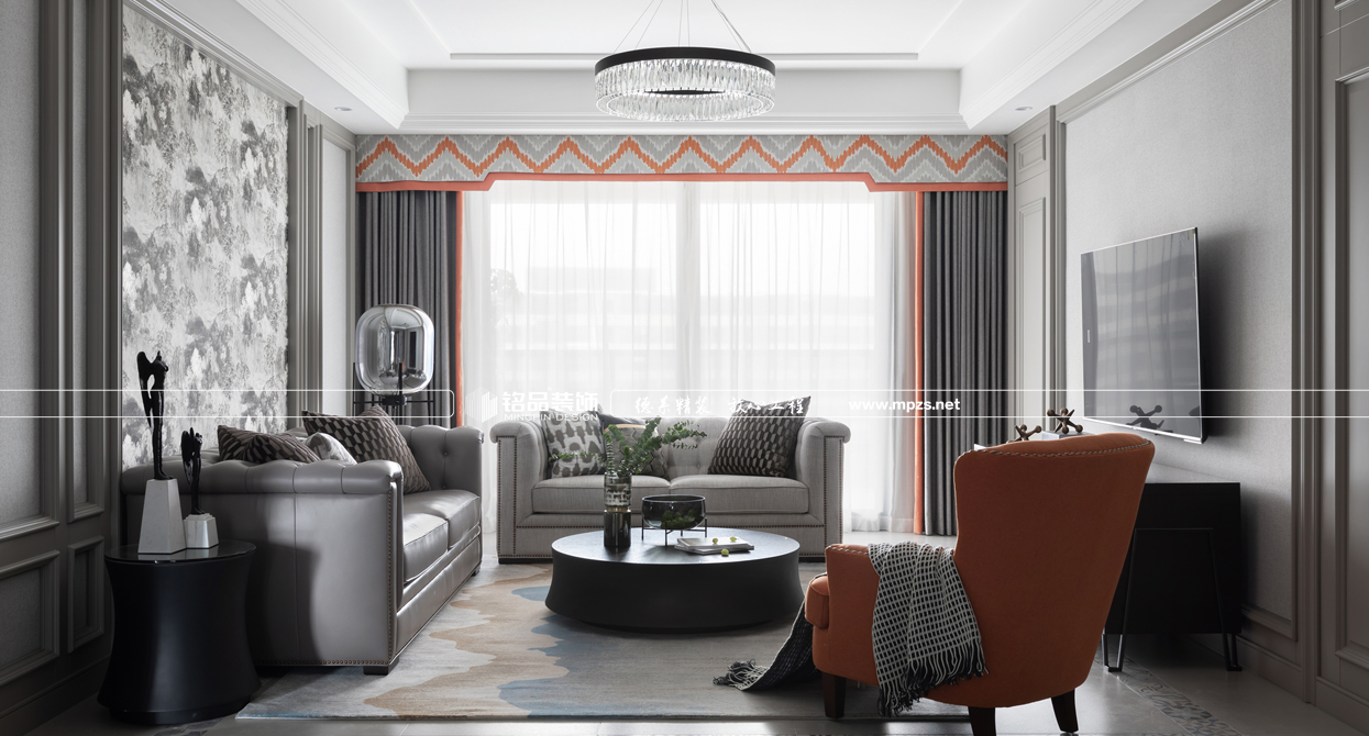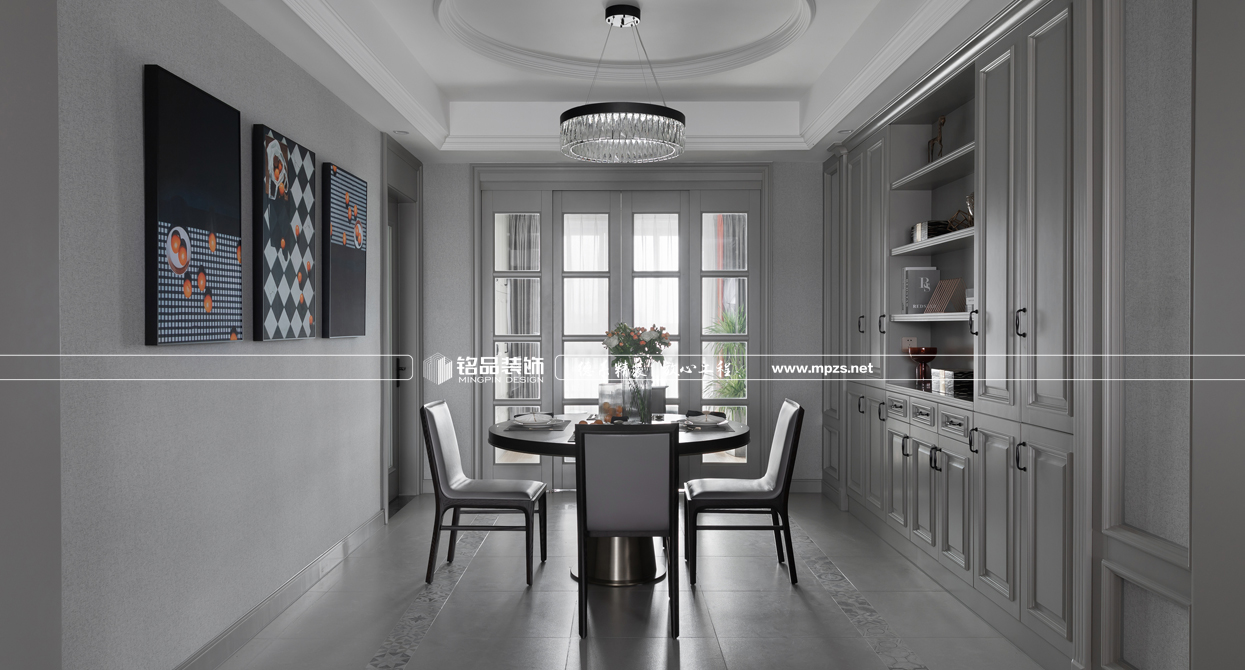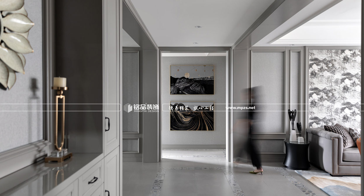 “輕奢”是一種生活態(tài)度,不追求浮夸外露的虛榮感,即使在生活重壓下喘不過氣,也想要從細微處滿足內(nèi)心精神需求。本案就是用一種最恰當?shù)姆绞綕M足業(yè)主物質(zhì)與精神的雙重需求,通過現(xiàn)代精神和古典特質(zhì)間的演繹,跳脫風格與材質(zhì)、色彩的束縛,在多與少、深與淺、古典和現(xiàn)代之間輕柔踱步,營造了一個不造作、不浮夸、不喧囂的“輕奢”空間。