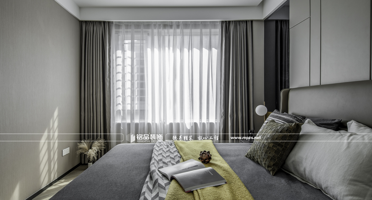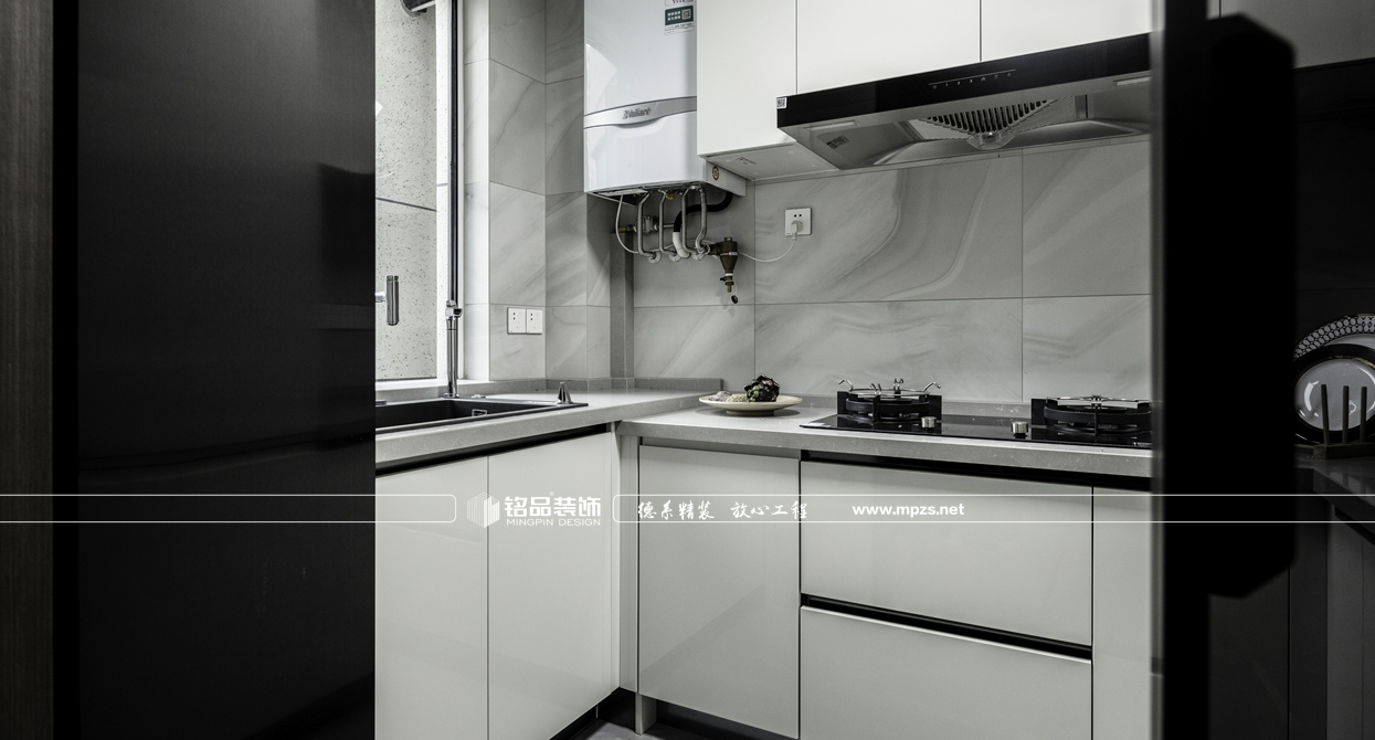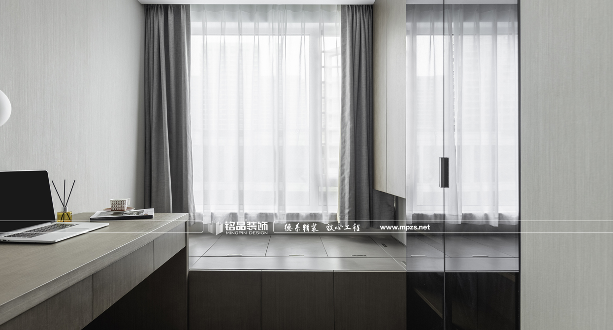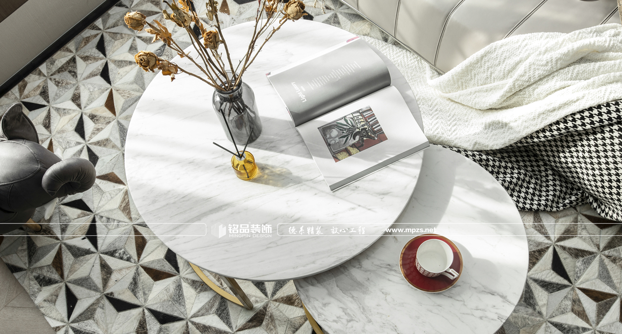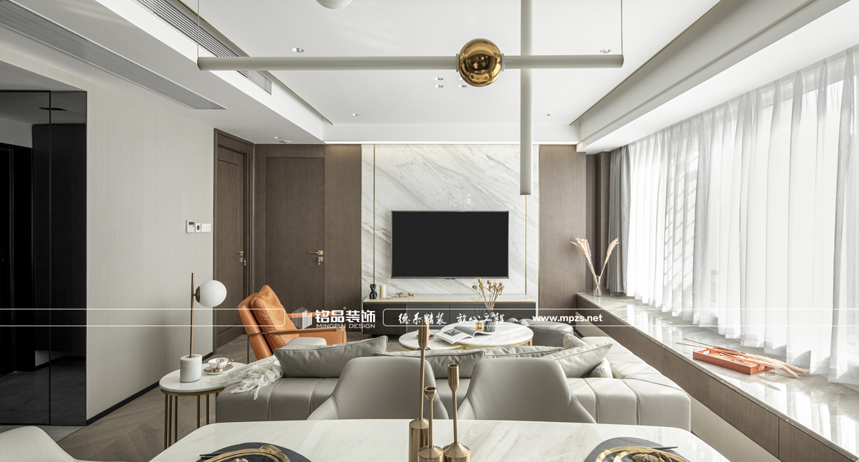 輕奢裝修作為當(dāng)下比較精致的一種裝修方式,也體現(xiàn)了對(duì)生活的一種態(tài)度。本套杭州裝修案例整體采用灰白為基調(diào),加入自然的木色平衡空間的冷峻感,簡單的頂面采用金屬元素線條勾勒??蛷d地面通鋪灰色石紋地磚,加鋪灰色紋路地毯,提高空間的舒適性體驗(yàn),灰色系皮質(zhì)沙發(fā)呼應(yīng)現(xiàn)代感風(fēng)格的電視柜,大理石電視背景提升空間質(zhì)感。原木色客廳沙發(fā)背景,與黑色玻璃背景結(jié)合過度玄關(guān),餐廳與客廳場域,采用金屬元素做踢腳線與背景裝飾線條。 餐廳設(shè)置在與廚房入戶相鄰的動(dòng)線空間上,整個(gè)硬裝與客廳呼應(yīng),廚房的長虹玻璃門片也成為一道美麗的背景。