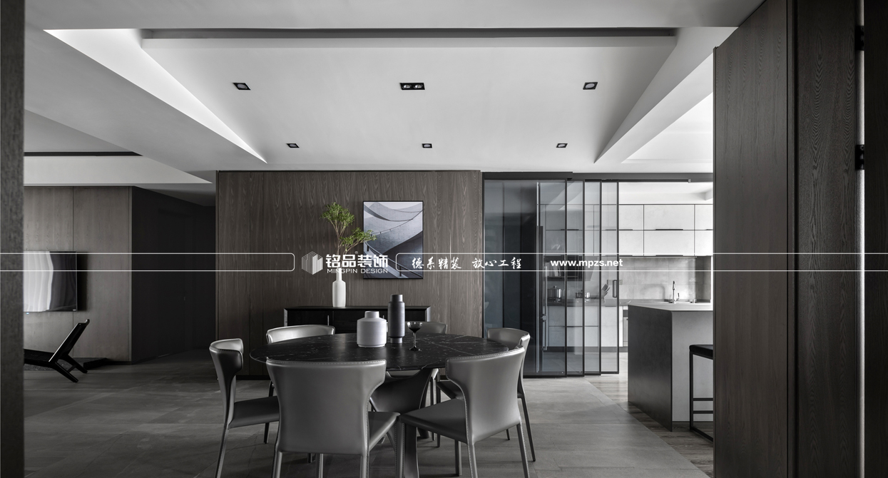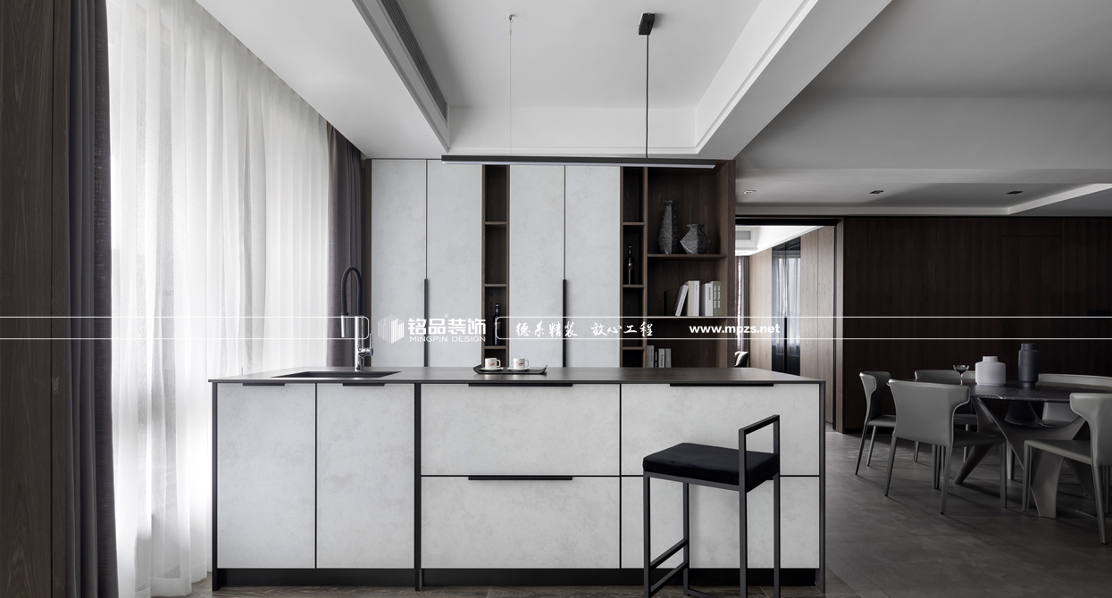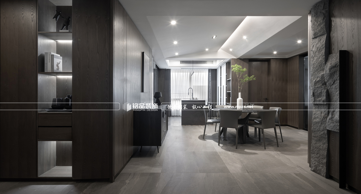 本套杭州臨安裝修案例就是用一種最恰當(dāng)?shù)姆绞綕M足業(yè)主物質(zhì)與精神的雙重需求,通過(guò)現(xiàn)代精神和古典特質(zhì)間的演繹,跳脫風(fēng)格與材質(zhì)、色彩的束縛,在多與少、深與淺、古典和現(xiàn)代之間輕柔踱步,營(yíng)造了一個(gè)不造作、不浮夸、不喧囂的“輕奢”空間。