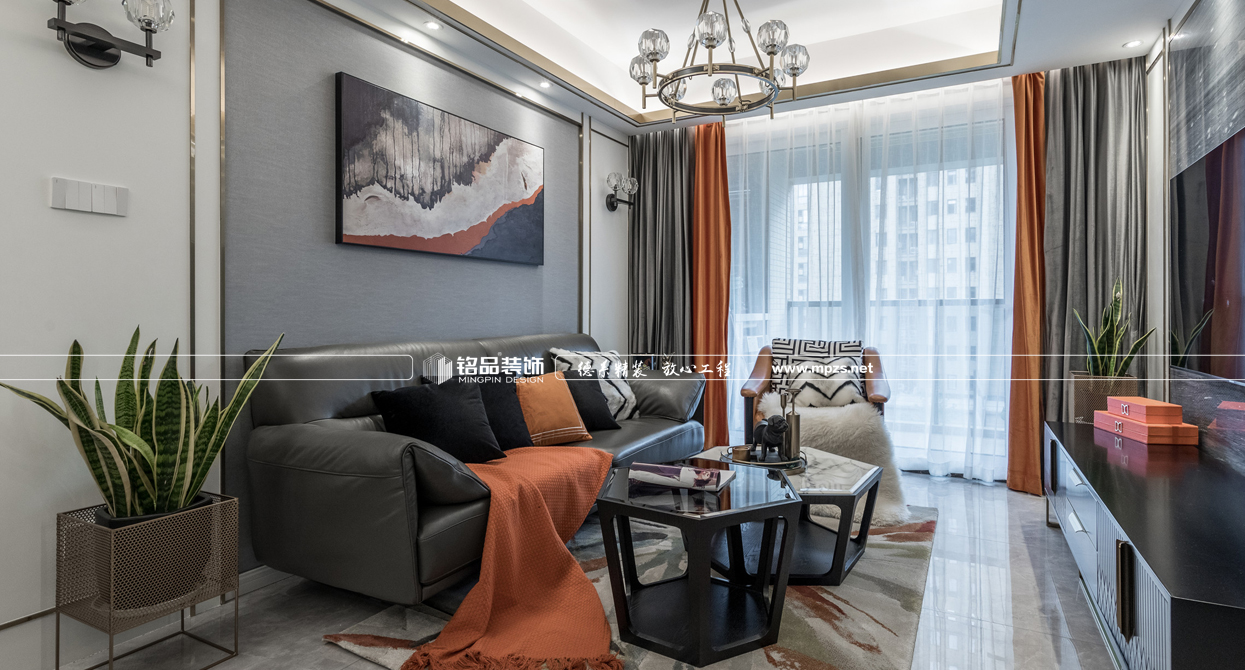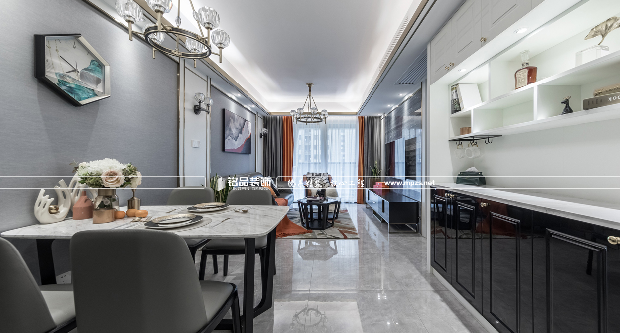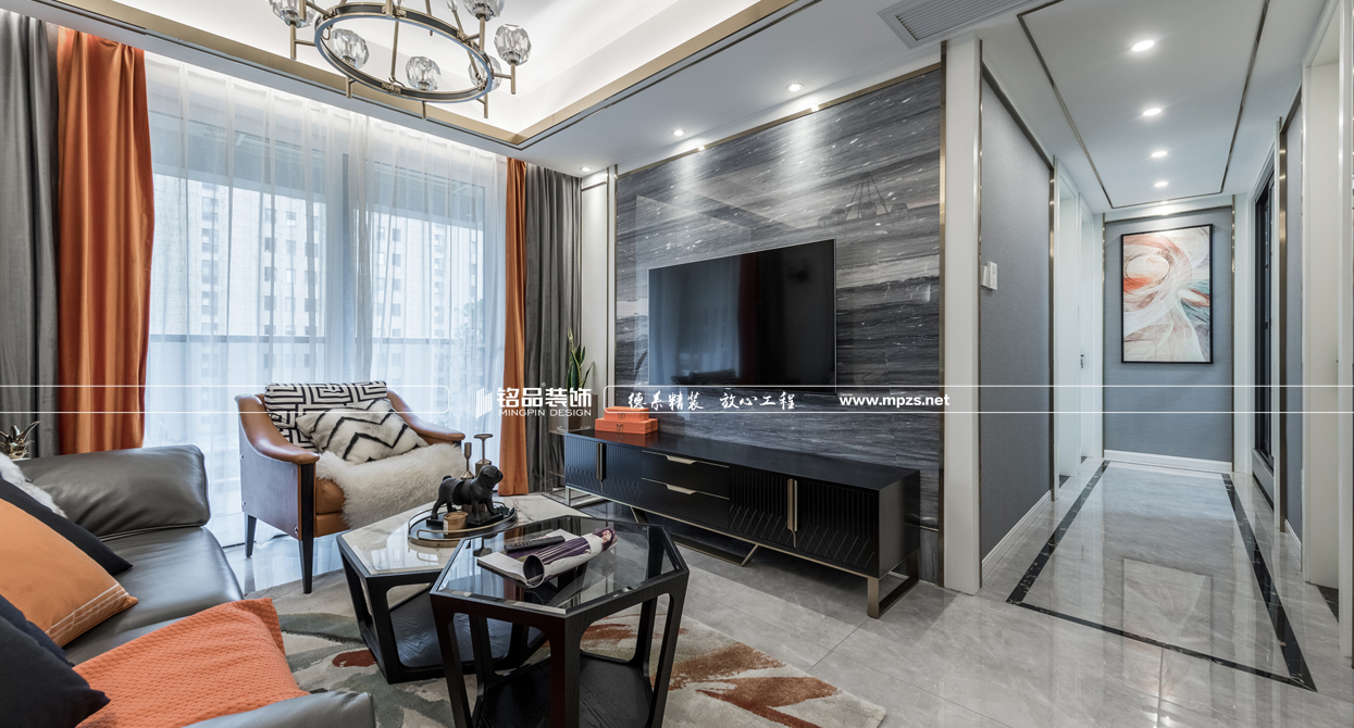 現(xiàn)代風(fēng)格的裝修從設(shè)計出發(fā)點以人為本為中心,創(chuàng)造功能合理、舒適優(yōu)美、滿足人們物質(zhì)和精神生活需要的室內(nèi)環(huán)境!戶型結(jié)構(gòu)方形構(gòu)圖、黑鈦鑲嵌,格局是從三房改四房增加房屋面積的使用率,整體的色彩搭配用黑白灰+橙的配色。讓整體的裝修風(fēng)格更具協(xié)調(diào)。室內(nèi)房屋裝修設(shè)計師最終以四房兩廳兩衛(wèi)一廚的格局,為業(yè)主帶來新的裝修效果體驗。