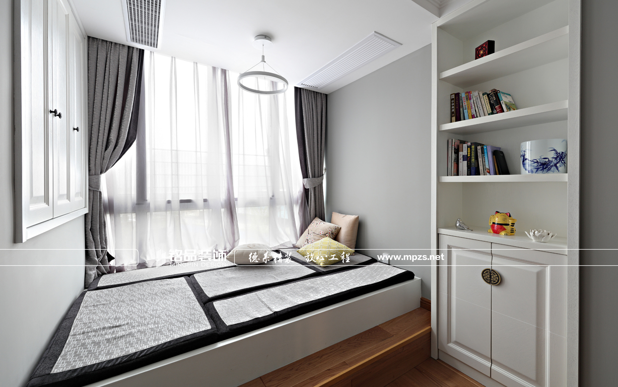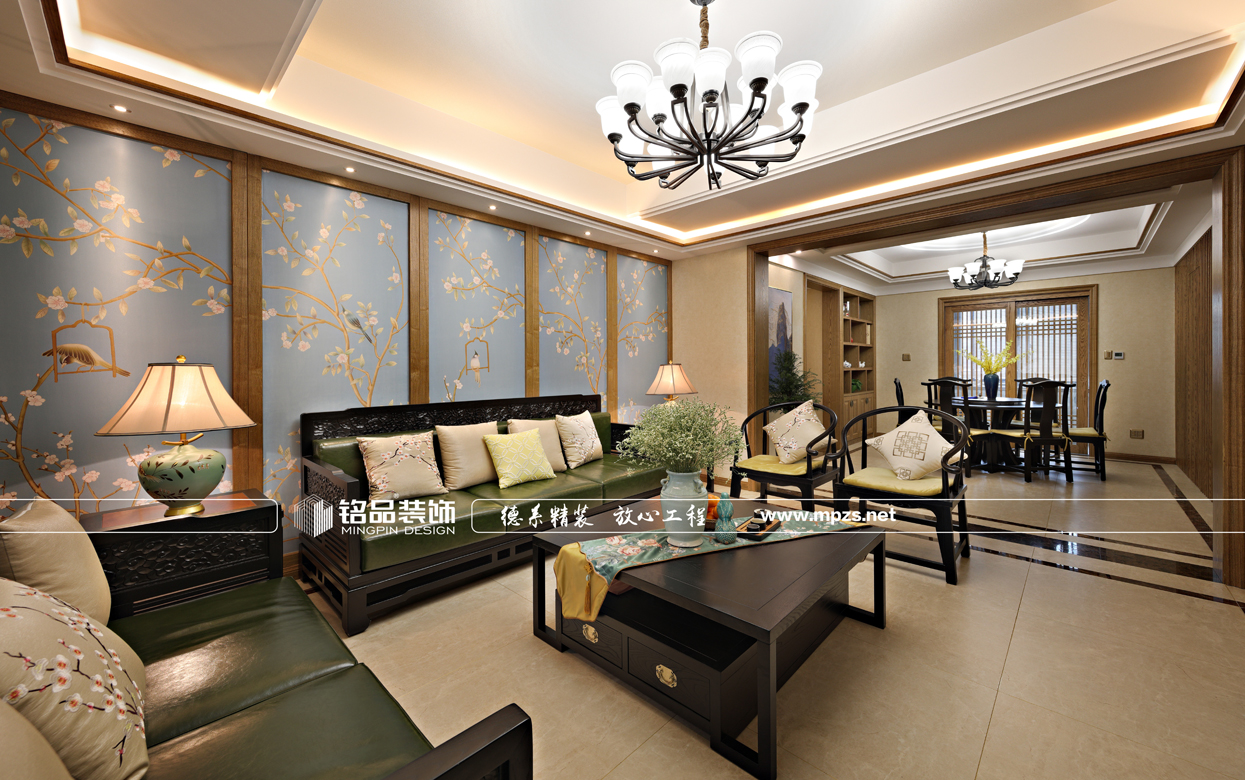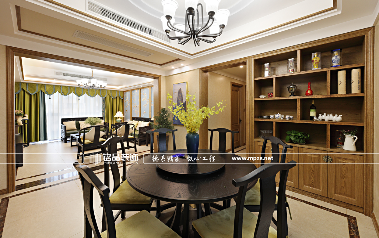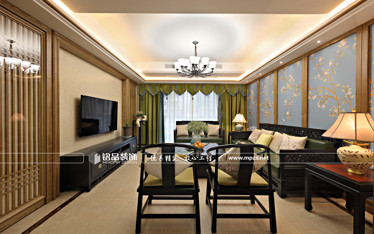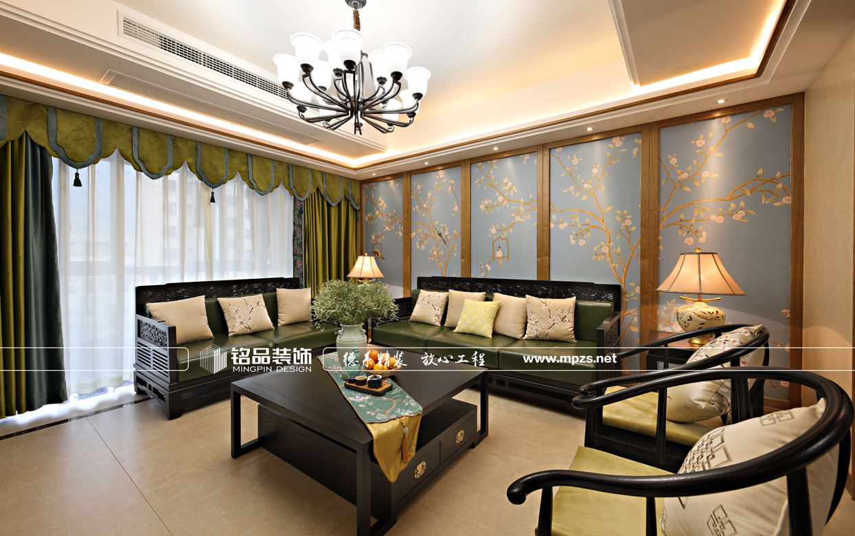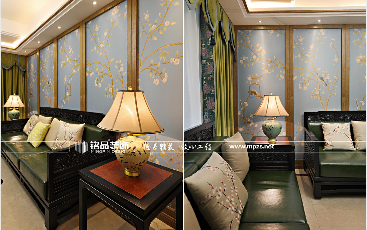 本案精髓簡(jiǎn)單沉穩(wěn)大氣,顏色用得大膽,大廳都是走原木風(fēng)的中式,之前的家具原本考慮紅咖色的,后來(lái)在最終下決定買家具的時(shí)候臨時(shí)改成黑色的家具,配上了大膽的軍綠的皮坐墊,整體放完家具,客戶一家人都很滿意