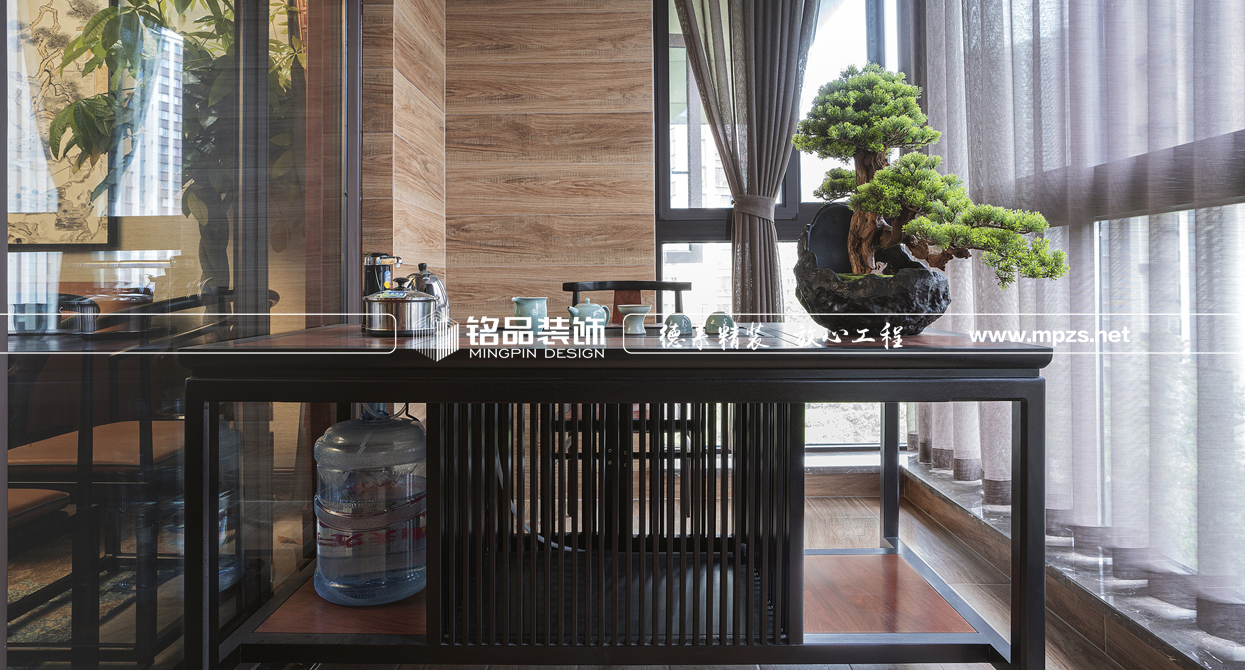 本案沒(méi)有做過(guò)多的空間改造,在原規(guī)整空間內(nèi)在色彩上利用中式元素和西方愛(ài)馬傳仕橙色的相融合,為空間添加一抹光亮,陽(yáng)臺(tái)上摒棄傳統(tǒng)(陽(yáng)臺(tái)即洗衣房)的做法,做成一個(gè)全面向陽(yáng)的茶室,室內(nèi)外空間融為一體。
