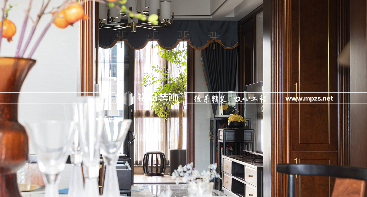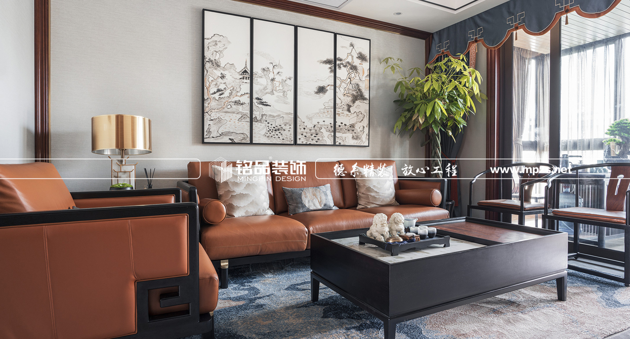 這套新中風(fēng)格裝修效果圖主要將中式風(fēng)與現(xiàn)代風(fēng)進(jìn)行融合,客廳外設(shè)陽(yáng)臺(tái)可以在疲憊時(shí)約上三五好友,品品茶調(diào)節(jié)一下疲憊
