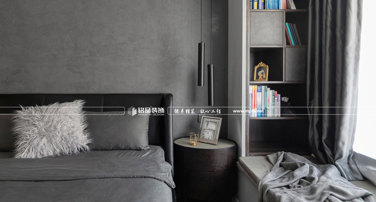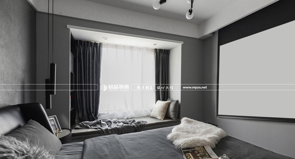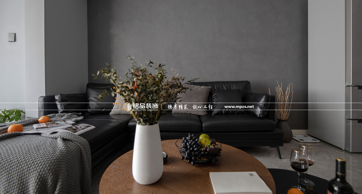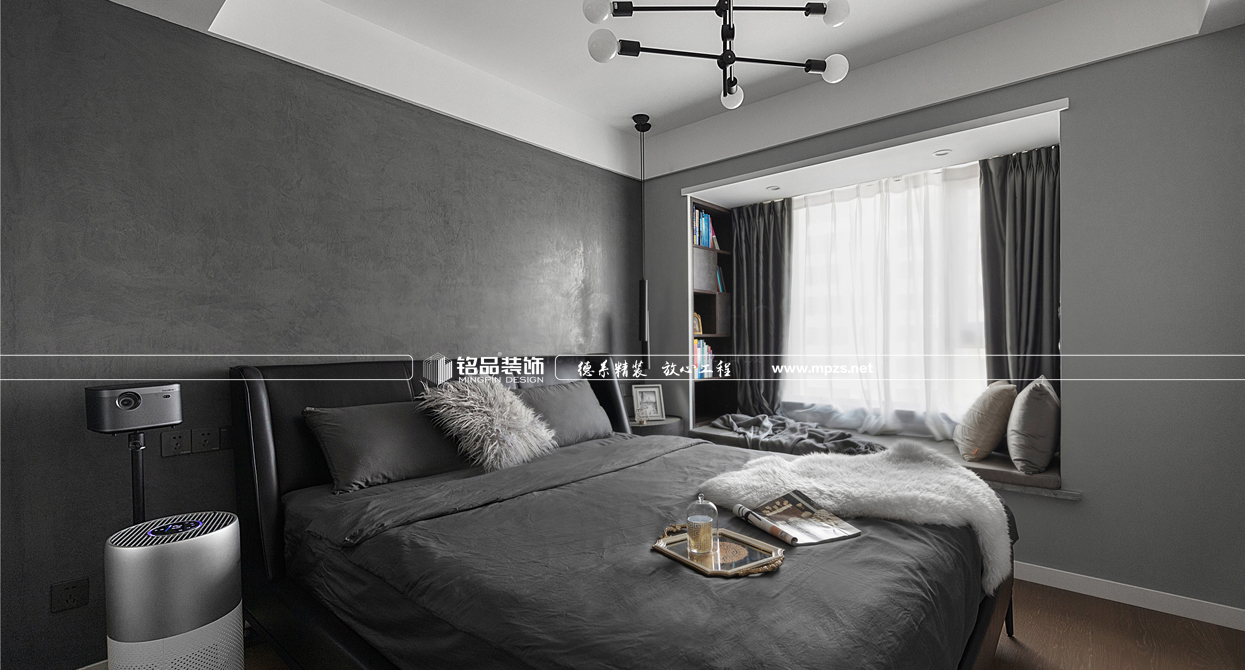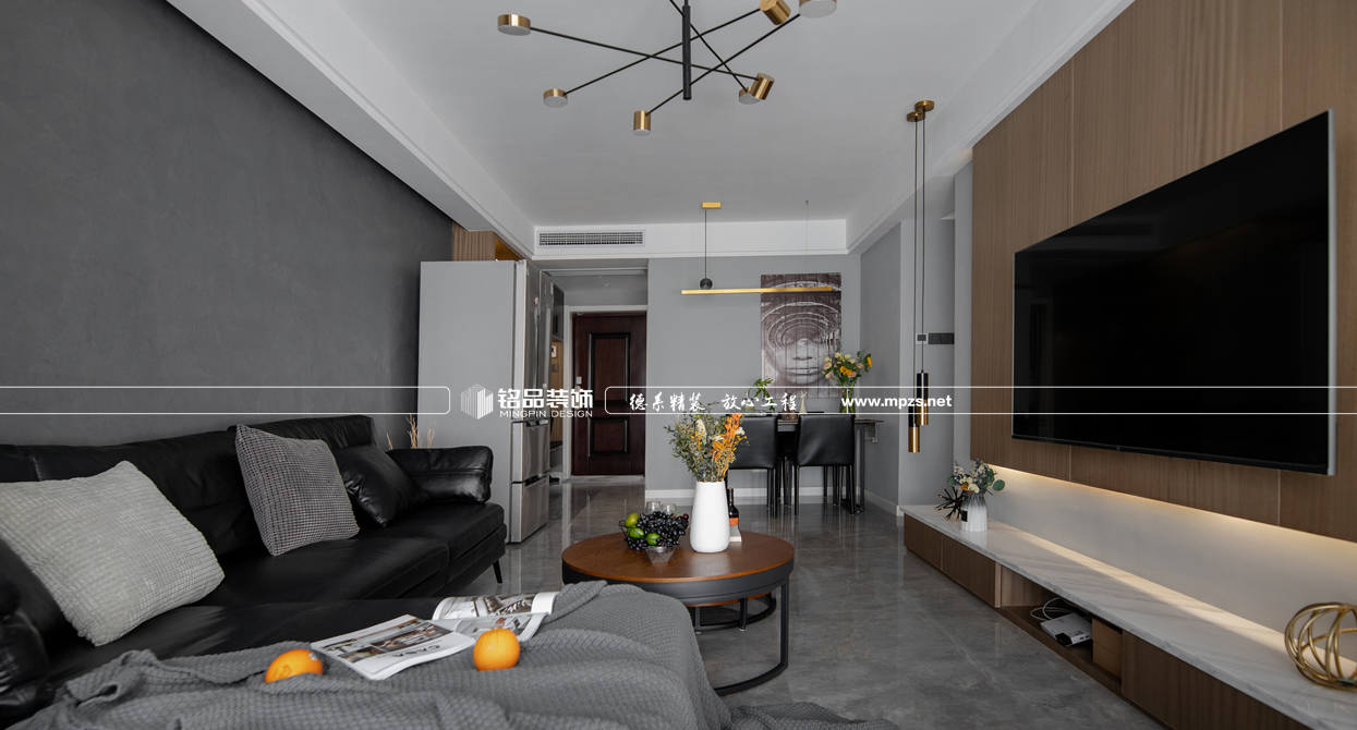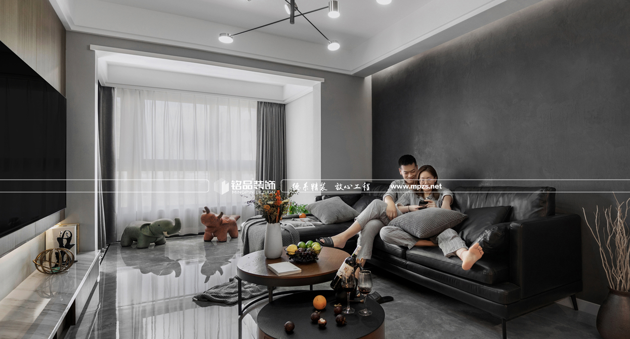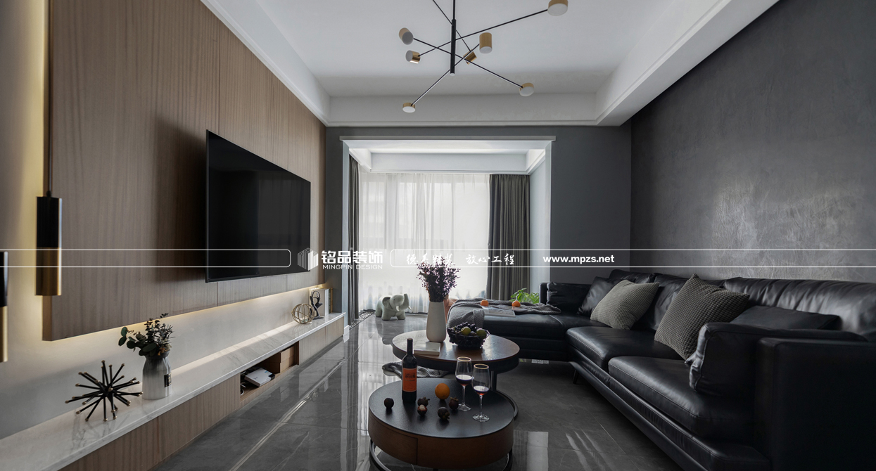主題風(fēng)格是現(xiàn)代極簡,主色是黑白灰,材質(zhì)是木飾面,藝術(shù)漆,不銹鋼,爵士白大理石,長虹玻璃