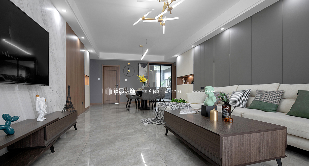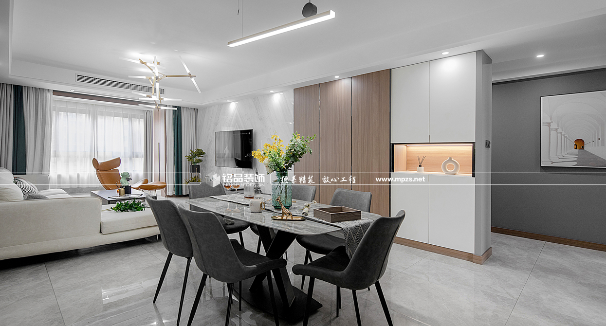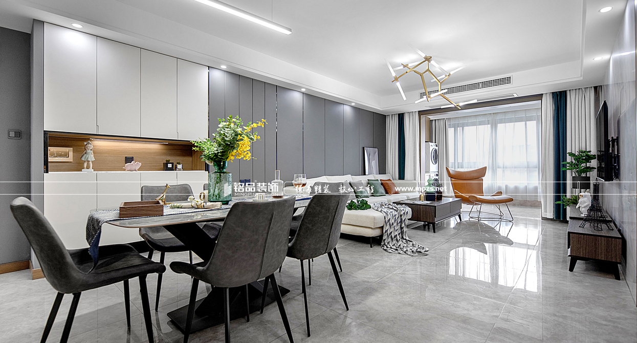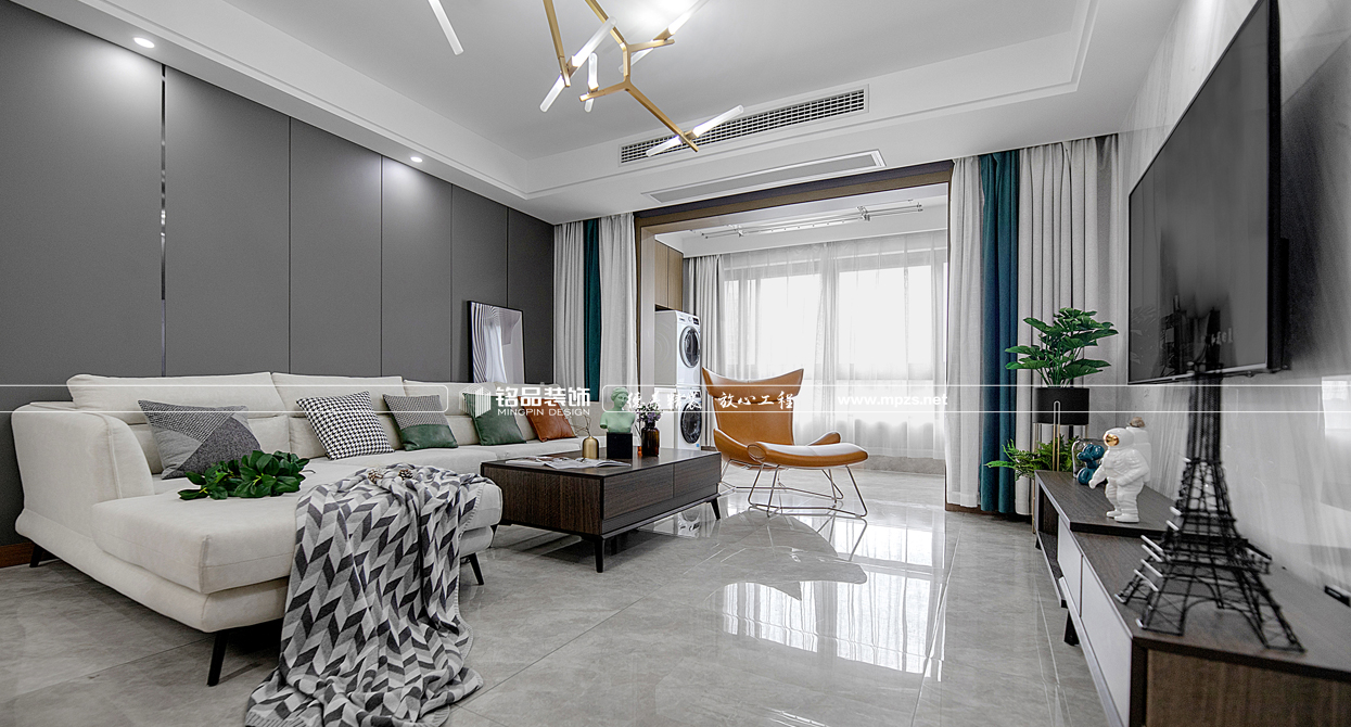 本案例房屋面積為126㎡,主要是公寓裝修,以輕奢風(fēng)格為主,色系以白色、灰色作為空間的主色,裝飾主要體現(xiàn)空間通透奢華