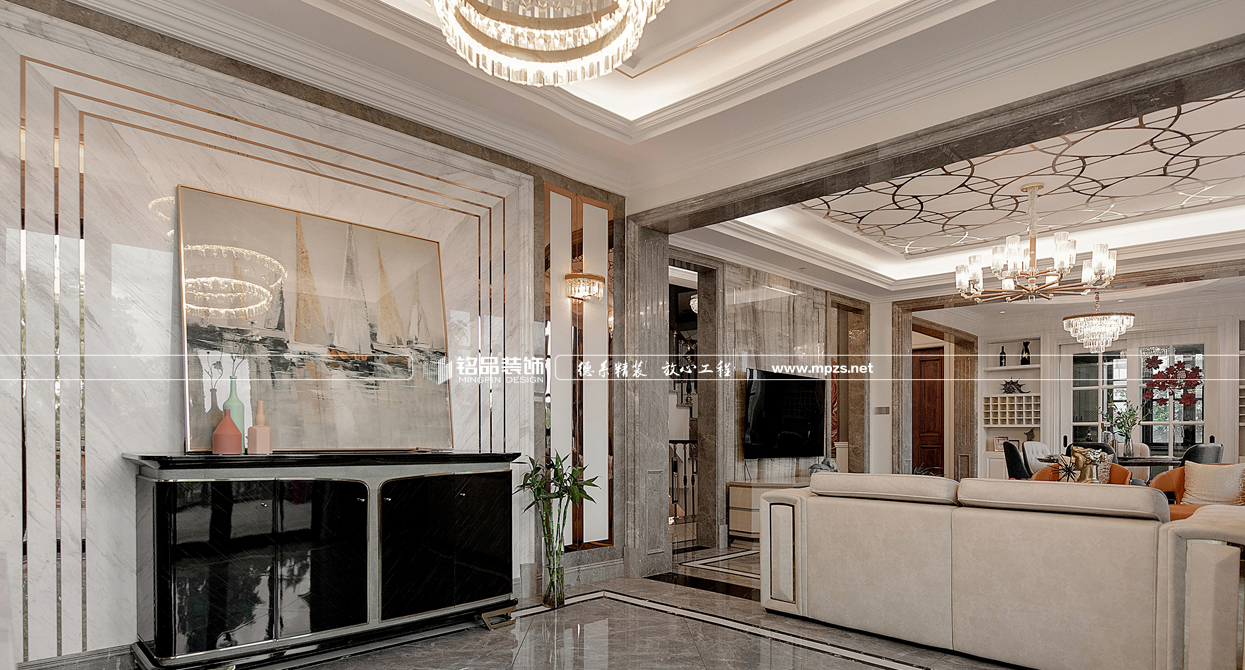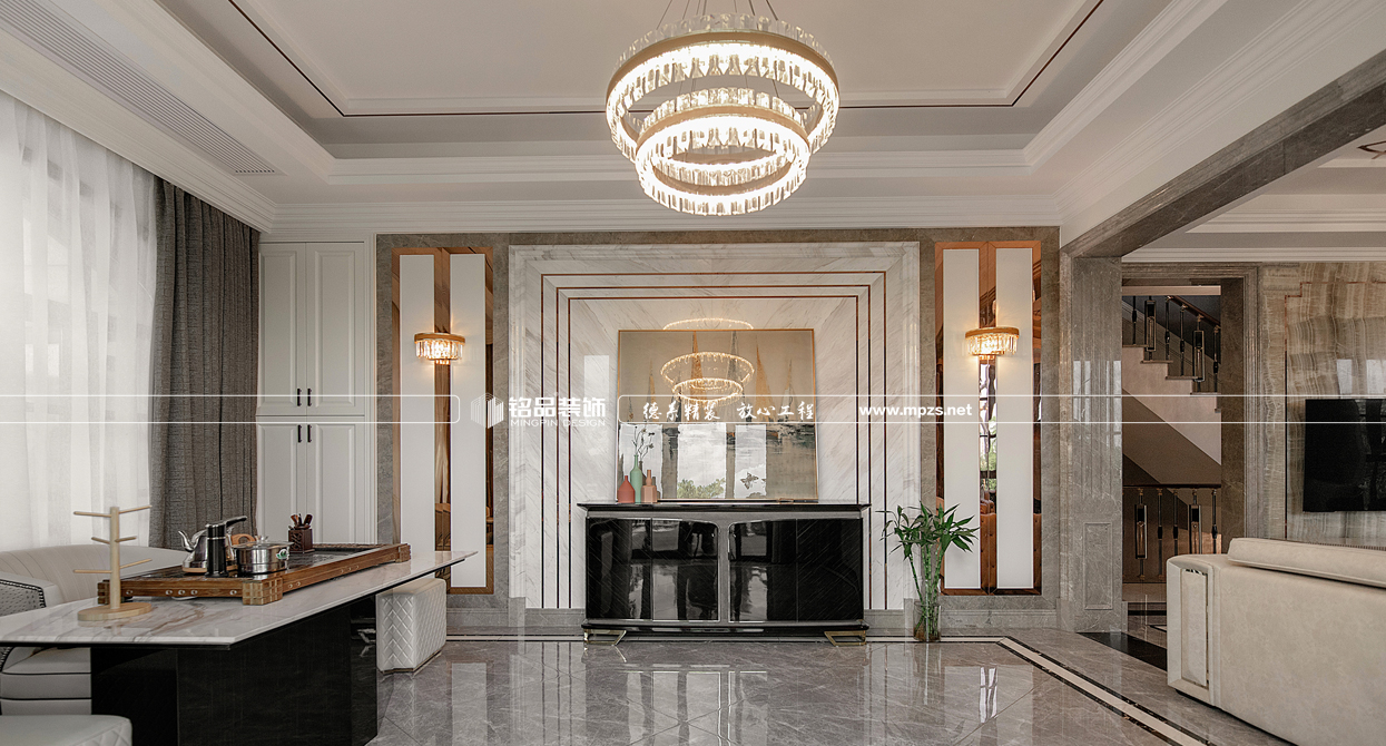 本案例房屋面積為430㎡,以新古典風格裝修為主,色系以白色、金色作為空間的主色,空間以優(yōu)雅唯美裝飾搭配,彰顯出業(yè)主對居室環(huán)境的追求。