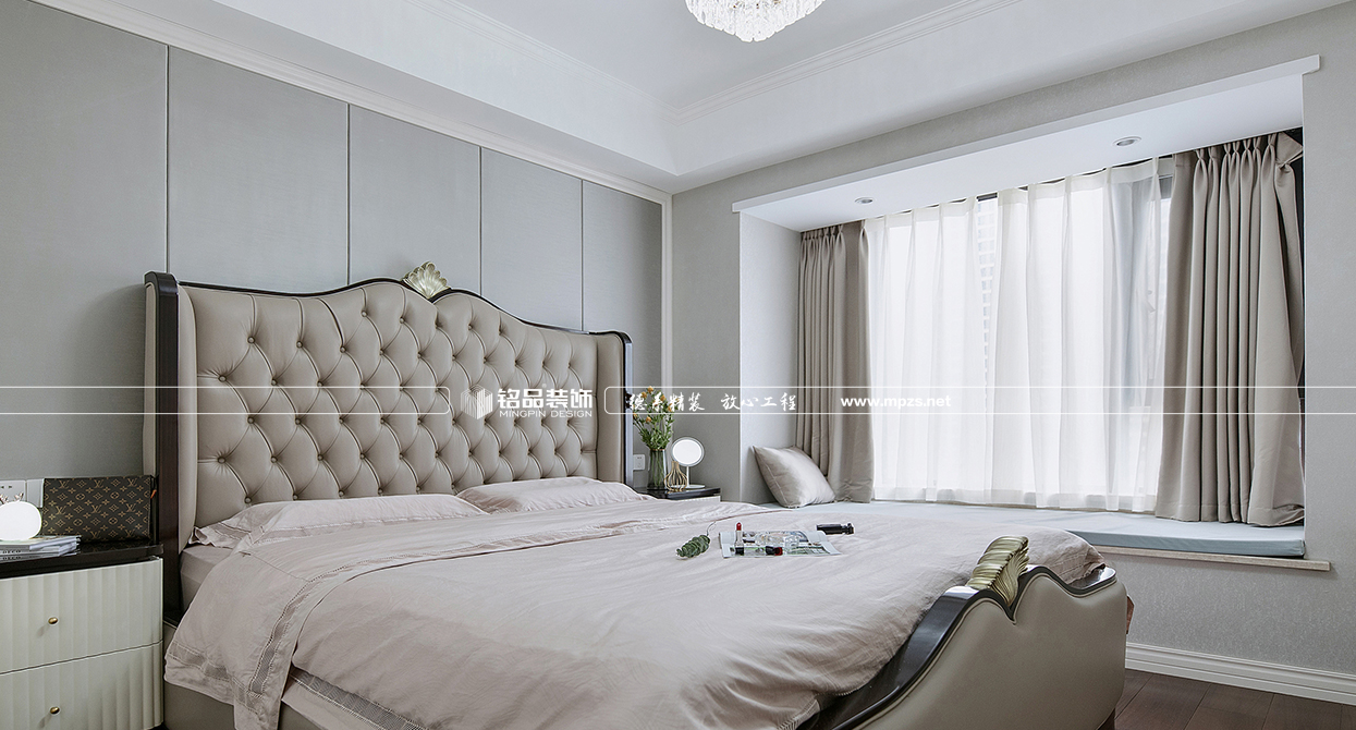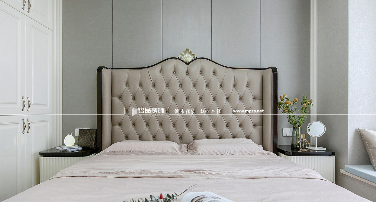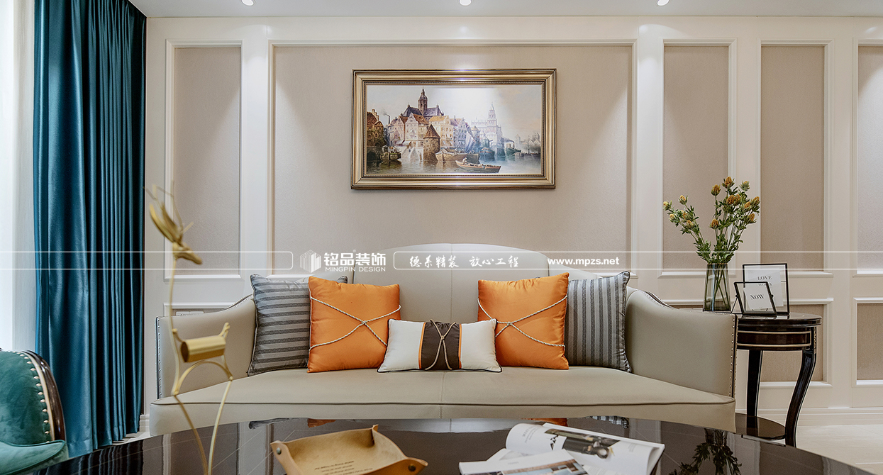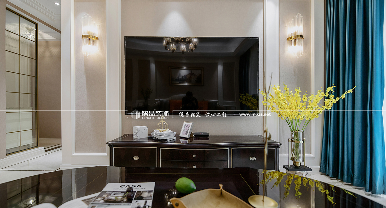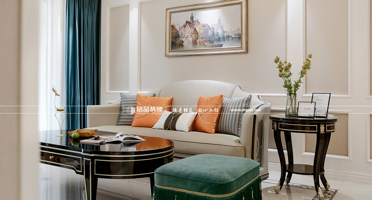 本案例房屋面積為105㎡,以美式風格裝修為主,色系以米色作為空間的主色,加以金屬色點綴,使空間整體溫馨而又不失奢華,客廳筒燈加主燈設(shè)計使空間光線最大化,提升空間通透感