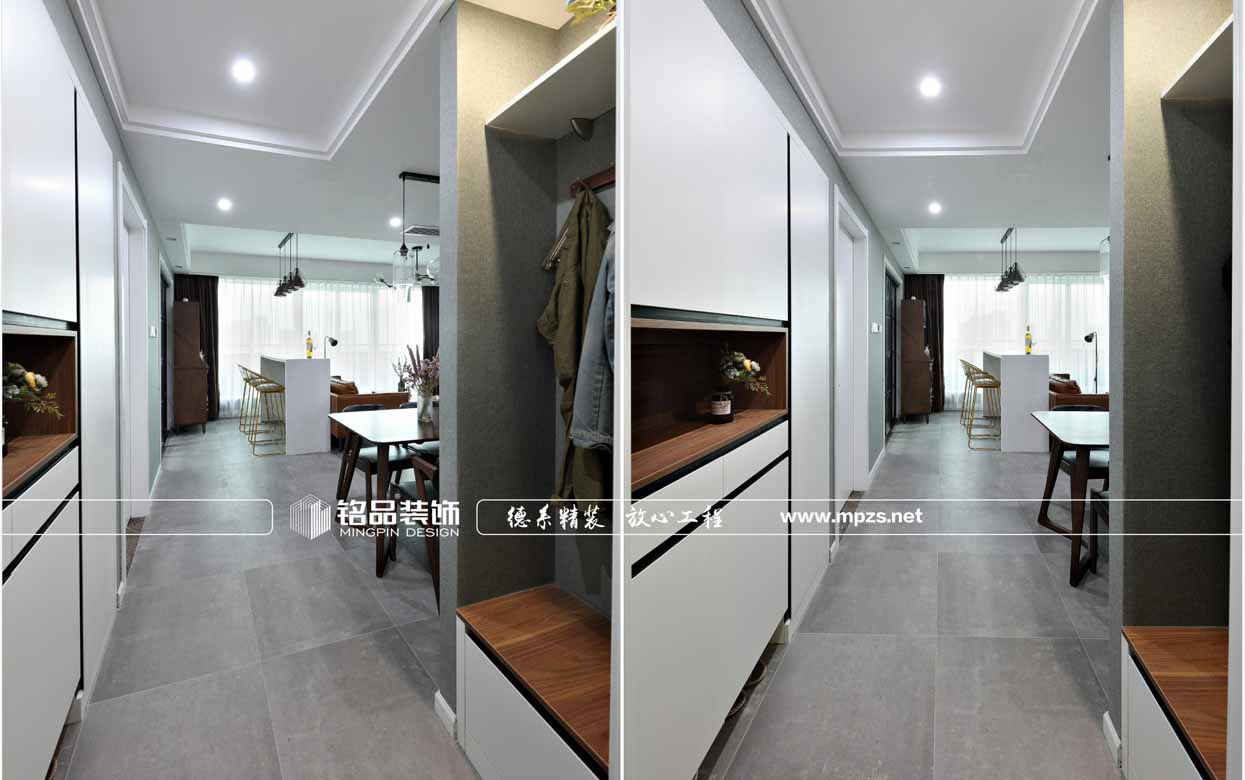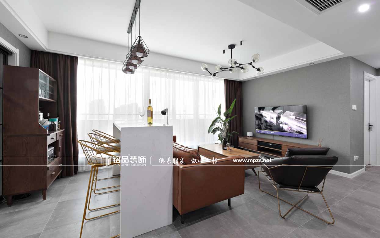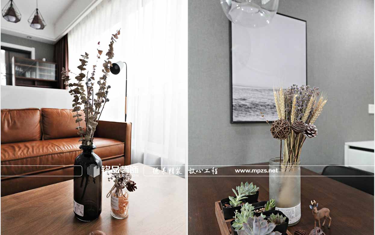 通過對(duì)客戶需求的深度剖析,結(jié)合戶型,做了一次大膽的改動(dòng),犧牲一個(gè)衛(wèi)生間的功能,來增加公共區(qū)域的空間,以營造入戶后空曠的視覺體驗(yàn),再運(yùn)用石材、黃銅飾品、黃銅家具、鐵藝、皮革、墻布等材質(zhì)來彌補(bǔ)北歐風(fēng)格的質(zhì)感單一,達(dá)到視覺和功能上的高度契合。
