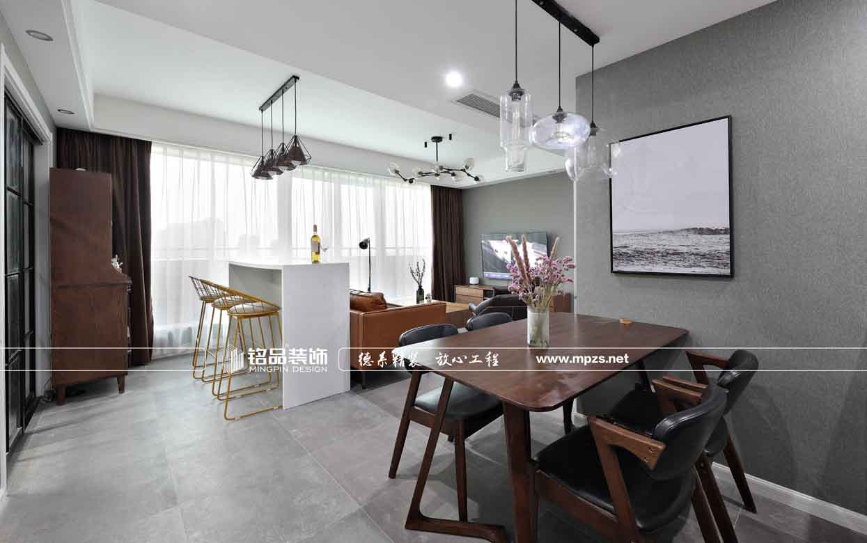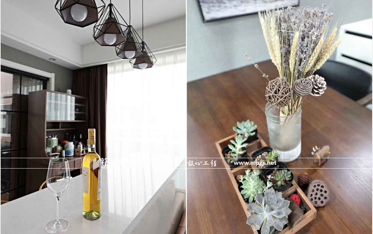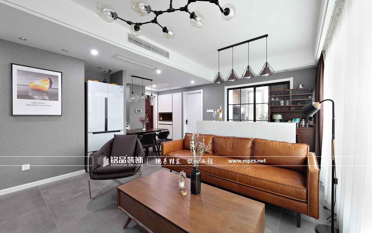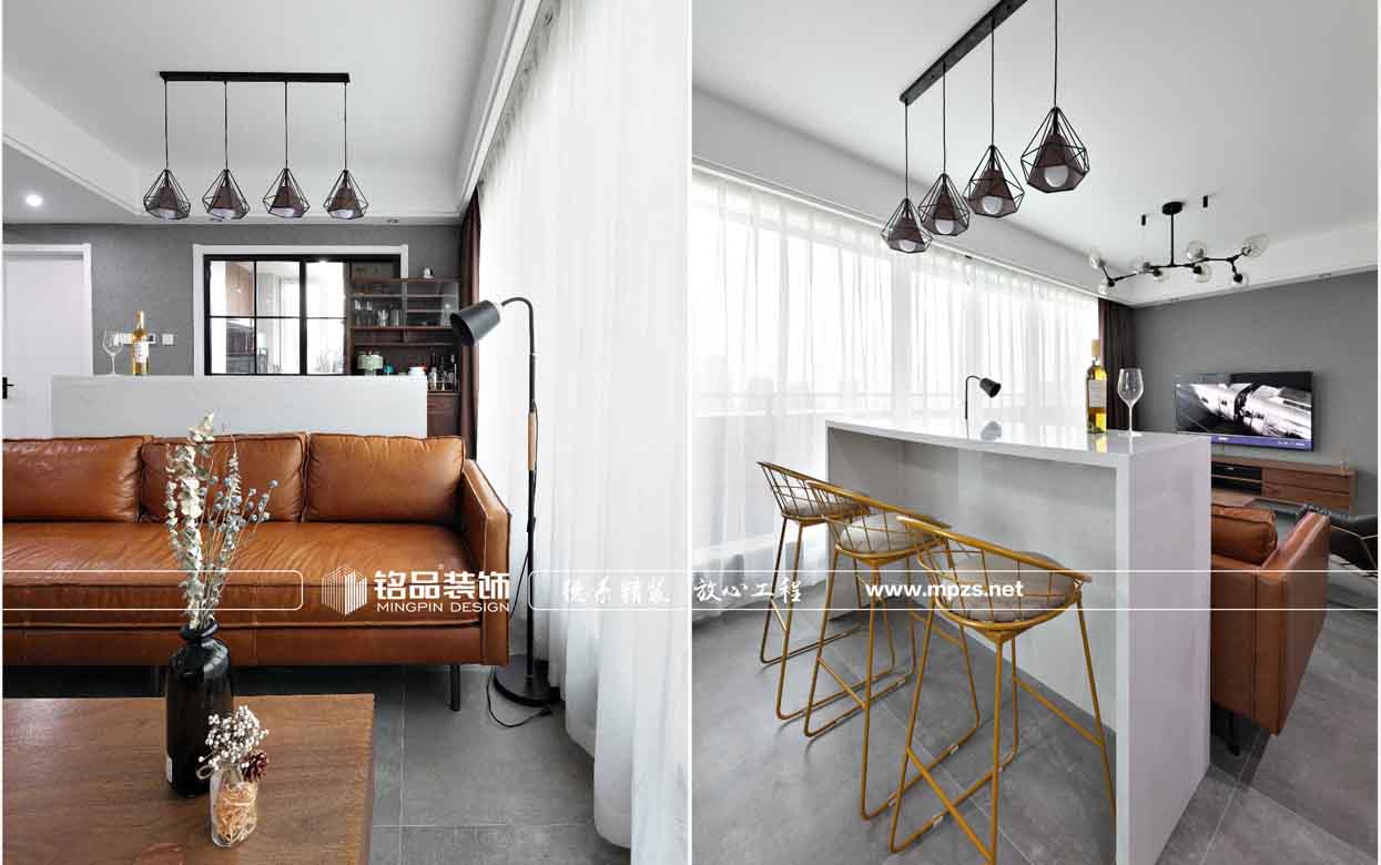 通過對(duì)客戶需求的深度剖析,結(jié)合戶型,做了一次大膽的改動(dòng),犧牲一個(gè)衛(wèi)生間的功能,來增加公共區(qū)域的空間,以營造入戶后空曠的視覺體驗(yàn),再運(yùn)用石材、黃銅飾品、黃銅家具、鐵藝、皮革、墻布等材質(zhì)來彌補(bǔ)北歐風(fēng)格的質(zhì)感單一,達(dá)到視覺和功能上的高度契合。