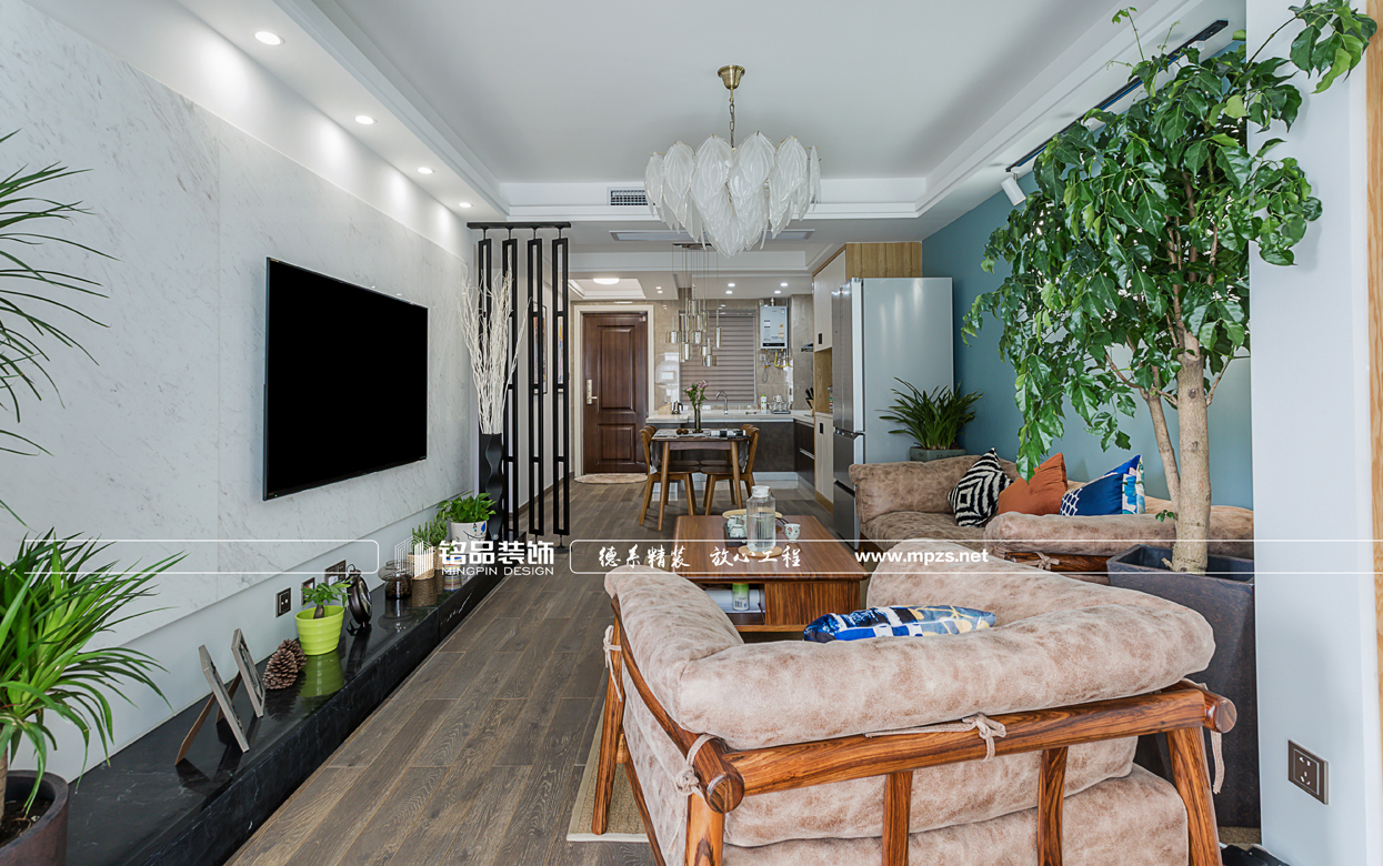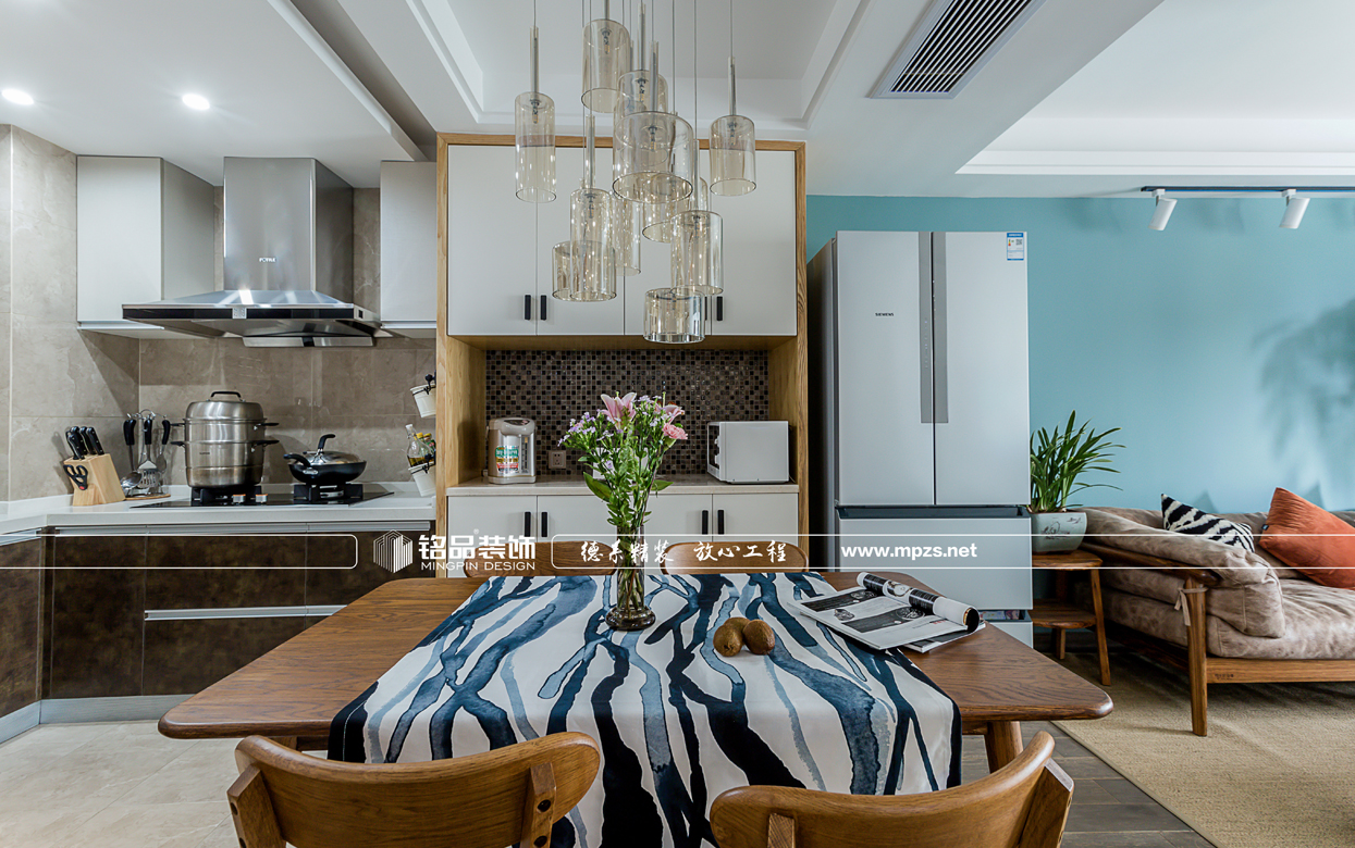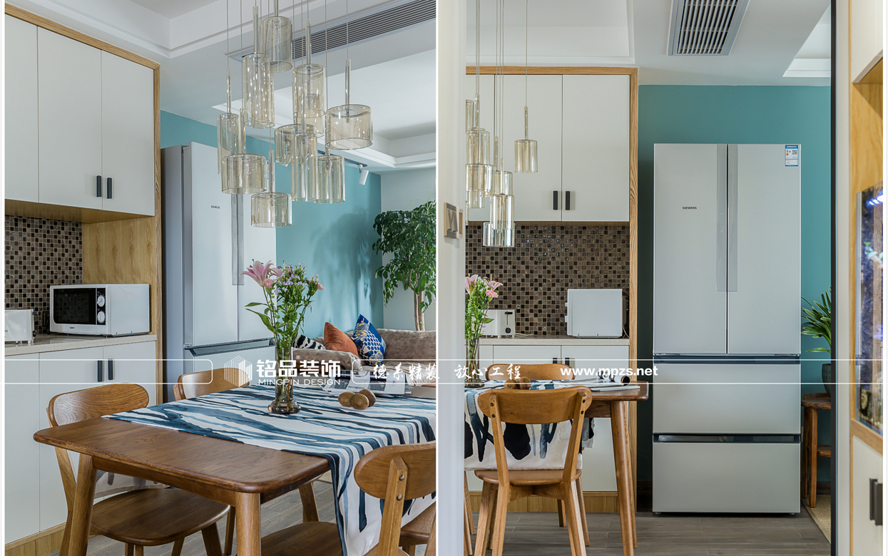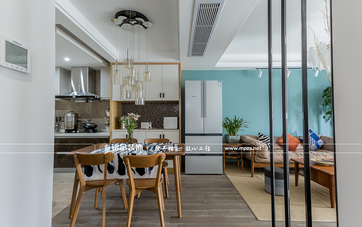 時尚,年輕有朝氣,但又兼顧了實用(儲物,空間感,采光,通風(fēng),行進路線) 此戶型業(yè)主年齡在20來歲,比較年輕有朝氣,而且戶型是90方戶型三房兩衛(wèi),多了一個衛(wèi)生間固然實用,但是收納空間也相應(yīng)的減少,所以前期需要設(shè)計盡可能多的空間,而且本身戶型餐廳較小,廚房又較暗,又考慮到小年輕平時燒飯也不多,所以就將廚房設(shè)計成了靠方式廚房,陽臺可外擴,所以又將陽臺的位置利用起來包進客廳,做了一排收納柜。整體色調(diào)偏向于更時尚年輕的灰色系,并在軟裝上相應(yīng)的出彩些,符合了業(yè)主的朝氣與時尚氣質(zhì)