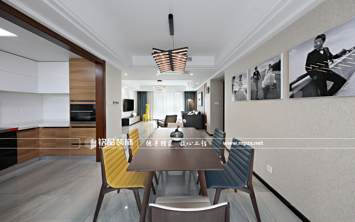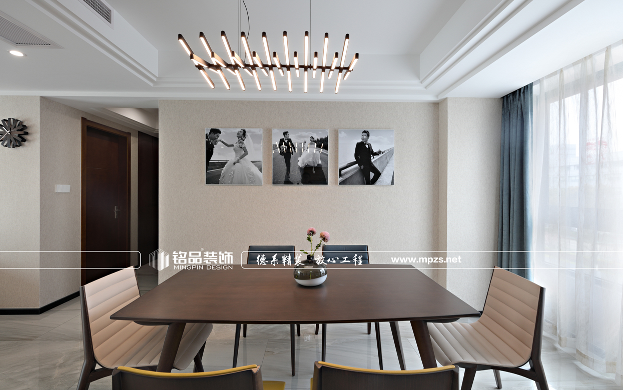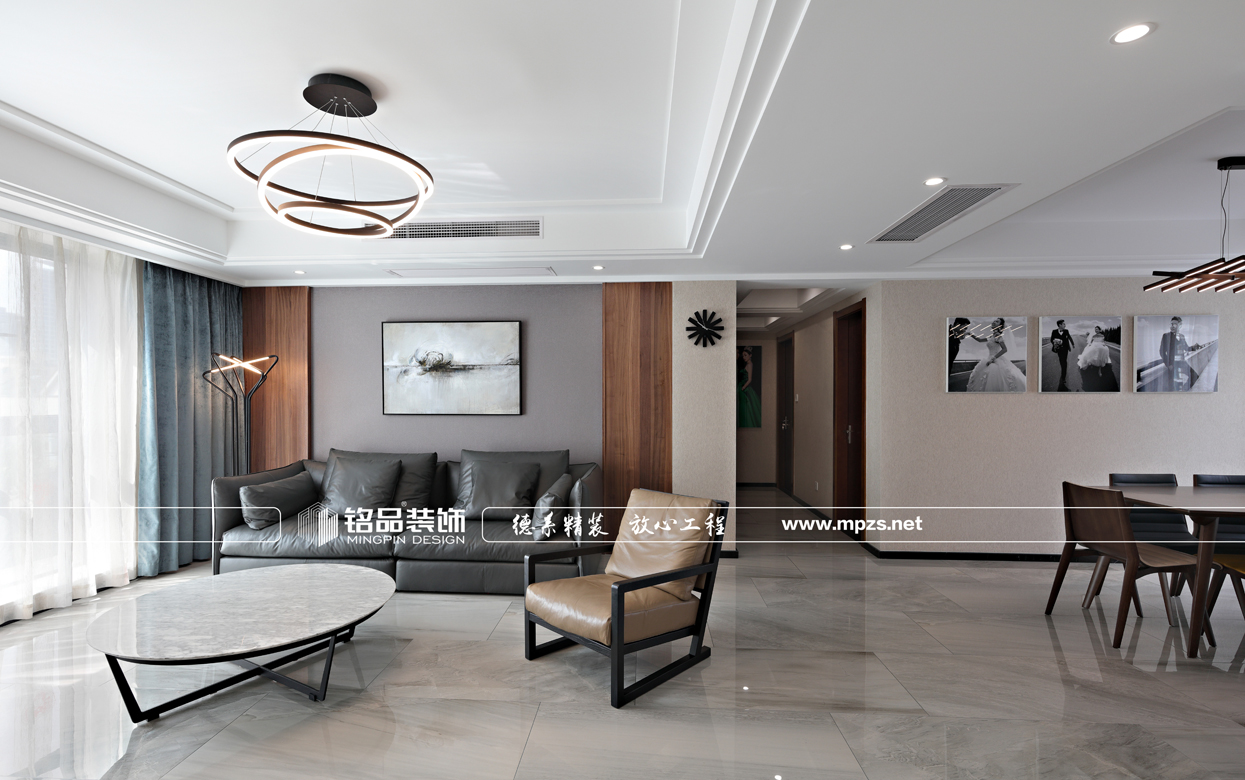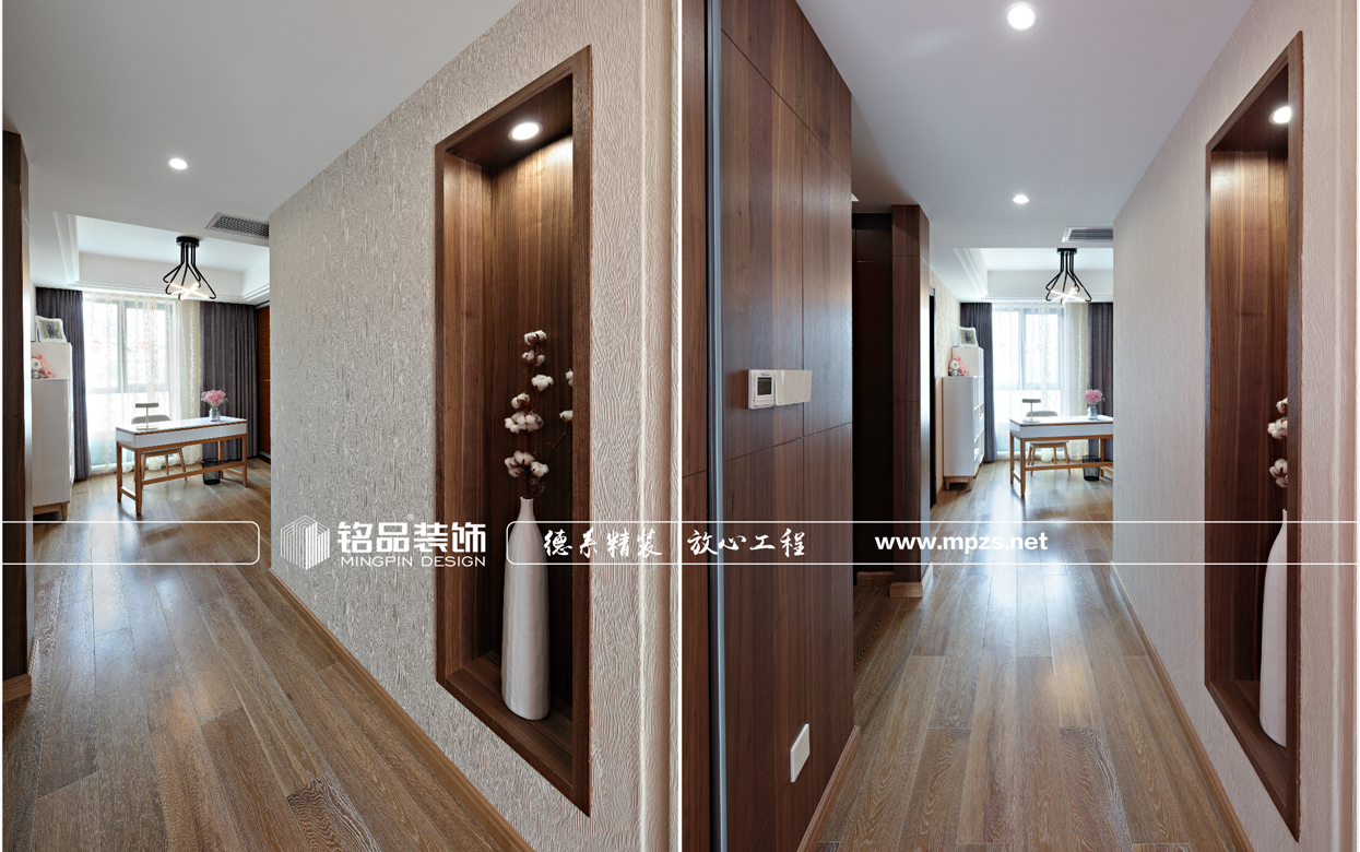 設計上根據(jù)業(yè)主的實際居住情況,在布局上作了重新布局以符合二人世界的居住要求,提高使用空間的舒適度和居住品質,在用材上選擇大面對比,形成不同材質的顏色/質感/肌理的對比及對應,選用了冷色系的地磚及石材和暖色系墻紙和成品木飾面,在保持現(xiàn)代簡練的主體又讓空間更符合居住