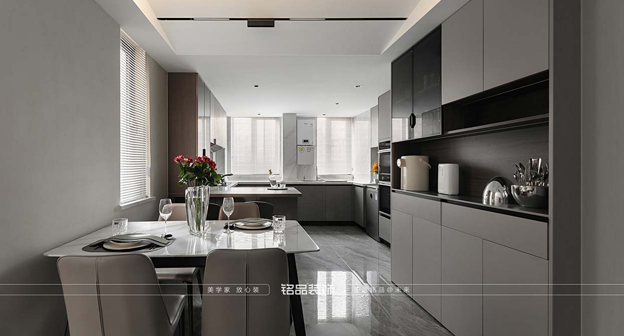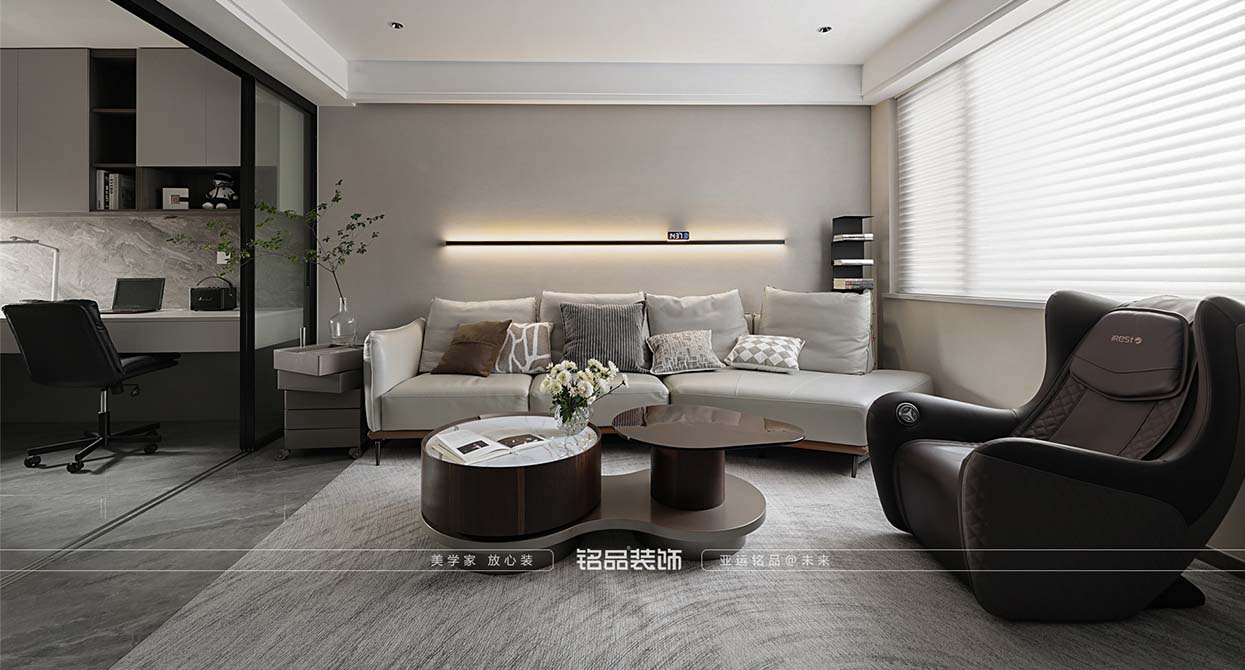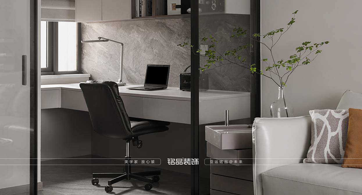 半開放式書房與客廳的連接,使得空間更加通透,空間利用率提高,讓書房和客廳的空間融為一體,玻璃移門在使用書房時可關(guān)閉,使得書房與客廳切割,讓客戶隨時可以有一個小私密空間。敞開式廚房讓整個空間看起來更加開拓,沒有墻體的局限,客廳與廚房連接戶型更為方正,空間利用率也是提高。