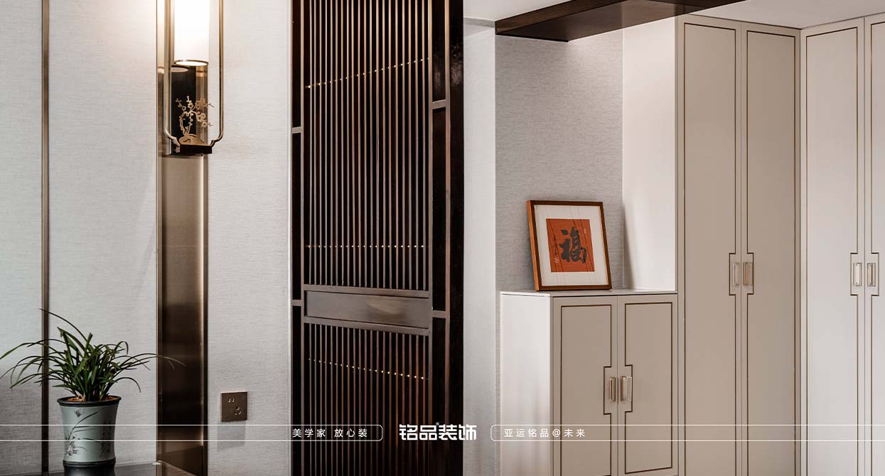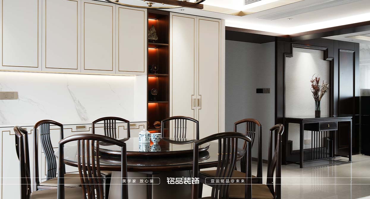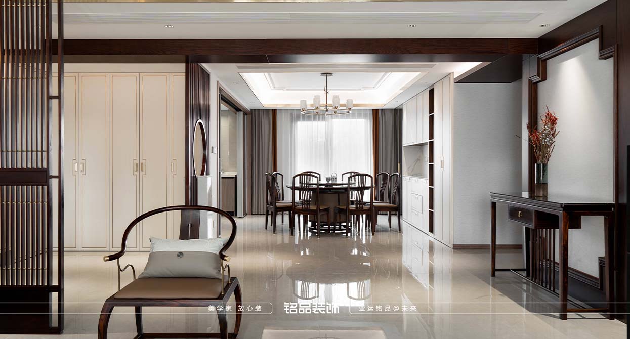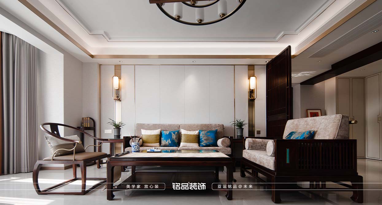 摒棄傳統(tǒng)中式的厚重感和瑣碎,采用簡約的造型搭配明式簡約家具營造新中式的韻味