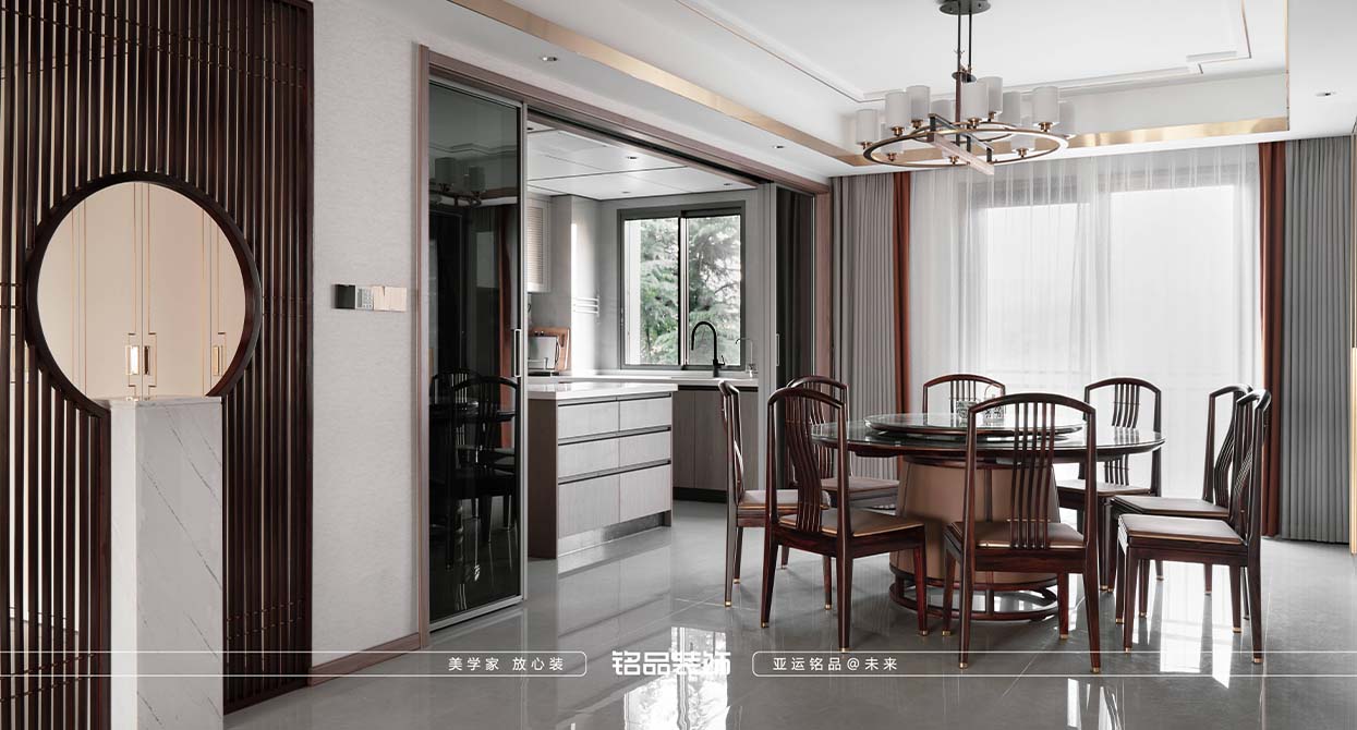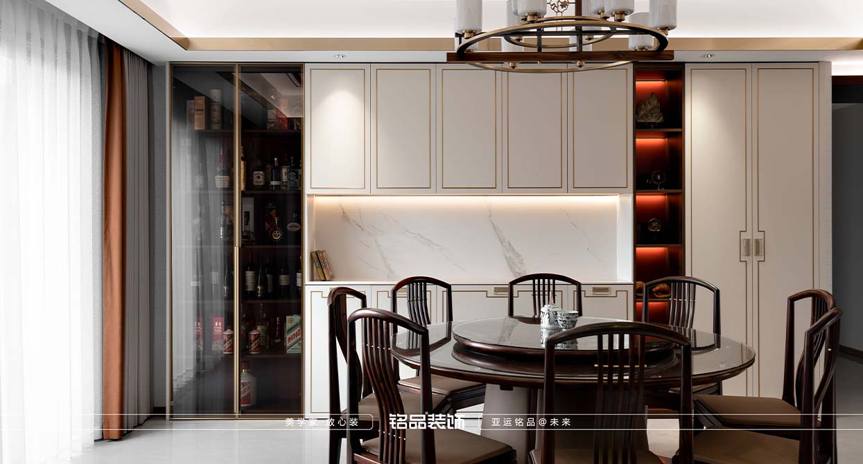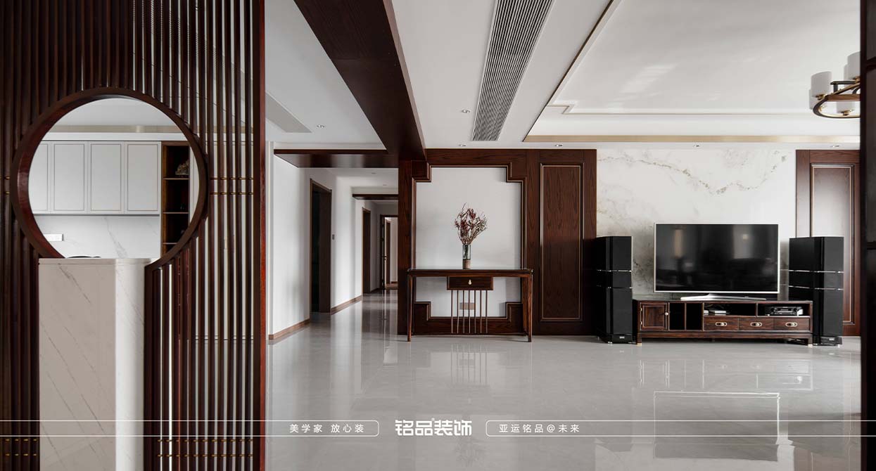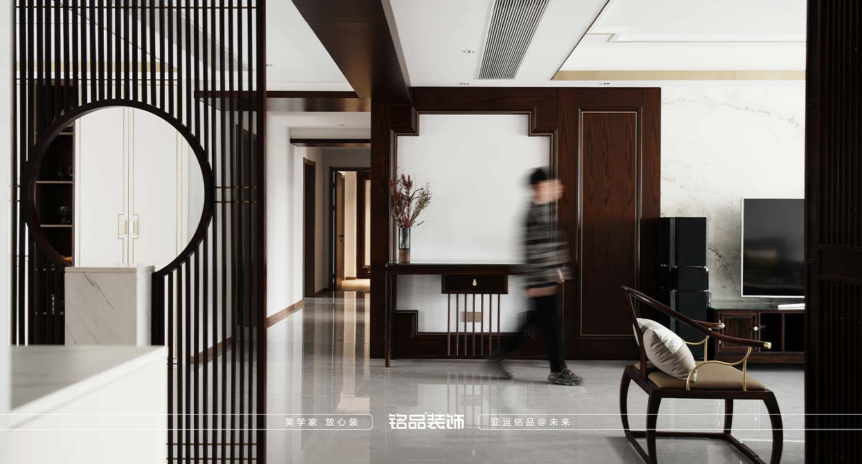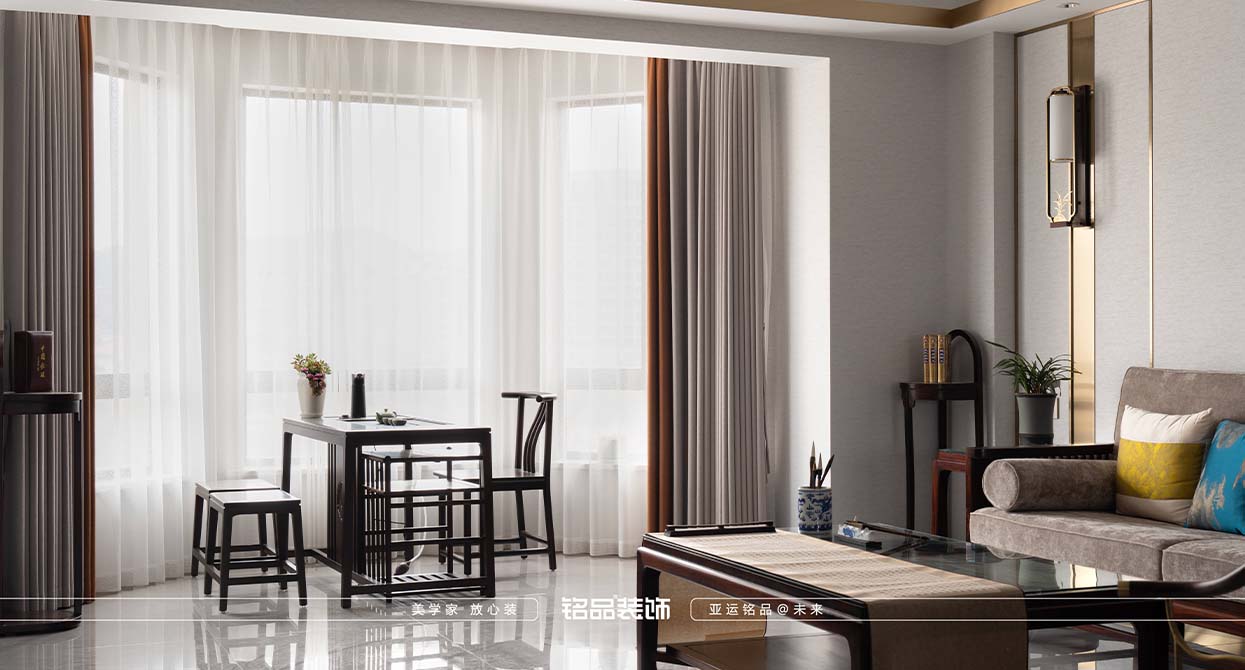 摒棄傳統(tǒng)中式的厚重感和瑣碎,采用簡約的造型搭配明式簡約家具營造新中式的韻味
