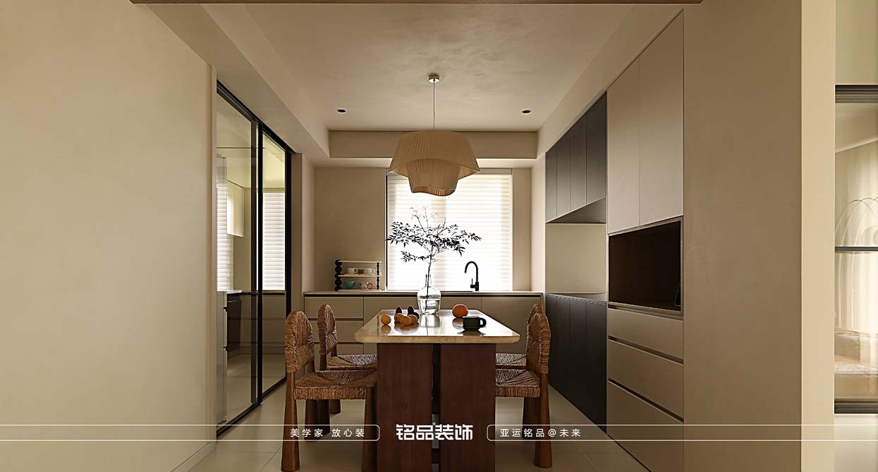 本方案在設(shè)計(jì)上追求功能與形式的完美統(tǒng)一,簡(jiǎn)潔統(tǒng)一,溫馨舒適。針對(duì)這一主題,空間以原木色為主調(diào),配以清新簡(jiǎn)潔的奶白色,散發(fā)自然的氣息,讓空間回歸質(zhì)樸無(wú)華的簡(jiǎn)約基調(diào),還居者一片舒適自在的居心之所。在材料的選擇上,整屋墻面采用了奶油色藝術(shù)涂料,地面選用奶油色瓷磚,達(dá)到空間的一抹色效果,木作上采用了木質(zhì)和白色艾格墻板的搭配。在燈光的選擇上,采用了懸浮型材燈,增加空間的氛圍感。在極簡(jiǎn)的設(shè)計(jì)中,我們特別強(qiáng)調(diào)材質(zhì)的質(zhì)感和表現(xiàn)力。原木作為天然的材料,具有獨(dú)特的紋理和色澤,通過(guò)精細(xì)的工藝處理和恰到好處的運(yùn)用,可以營(yíng)造出溫馨而自然的家居環(huán)境。在色彩運(yùn)用上,我們堅(jiān)持和諧的原則。以原木的自然色調(diào)為基礎(chǔ),通過(guò)巧妙地搭配其他色彩,如灰色、白色、米色等,營(yíng)造出一種溫馨而舒適的氛圍。我們避免使用過(guò)于刺眼或過(guò)于跳躍的色彩,確保整體設(shè)計(jì)的和諧統(tǒng)一。