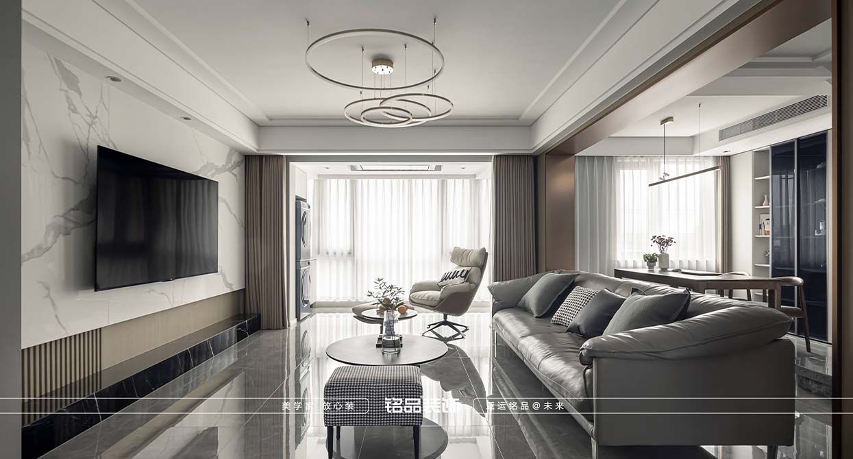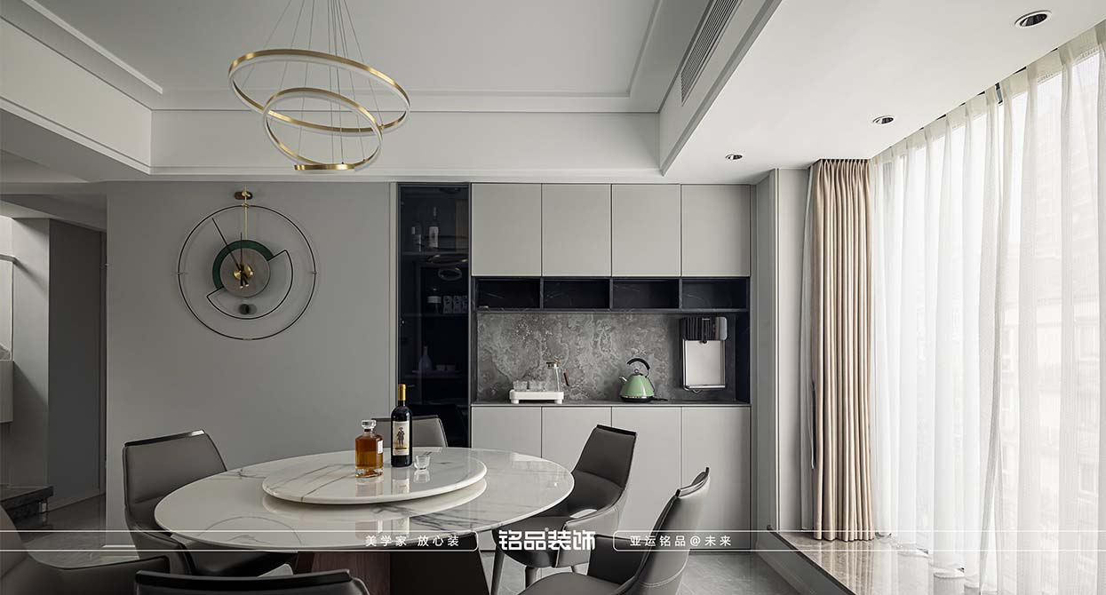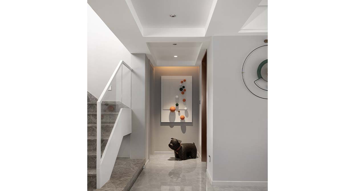杭州嘉利花園裝修原始戶(hù)型空間不夠通透,拆除墻體使客餐廳,樓梯間,品茗區(qū)融為一體