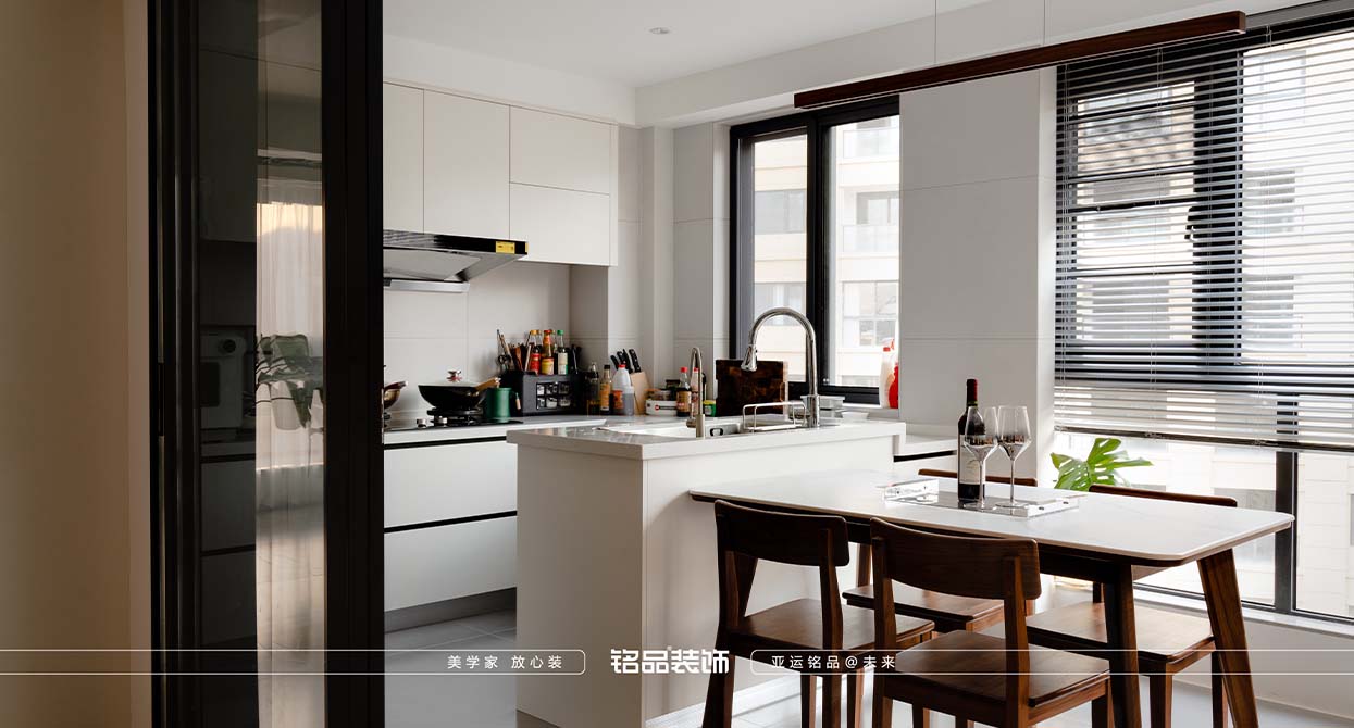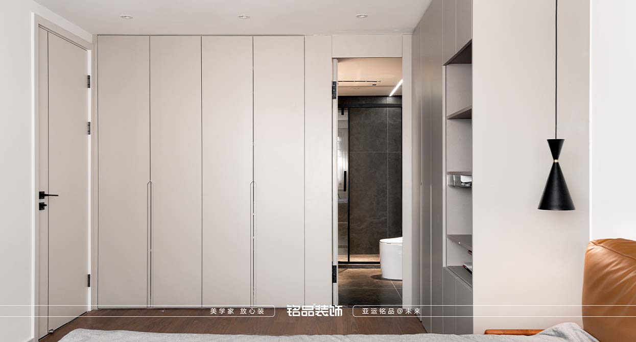 原始結(jié)構(gòu)長長的入戶過道并不算寬敞,所以我借用內(nèi)衛(wèi)的空間來做了一個(gè)鞋柜,客廳裝飾柜一體的轉(zhuǎn)角柜。在入戶的頂上有一根比較低的梁,處理梁的兩種手法無非是強(qiáng)化和弱化,我在這里做了一塊頂上的飾面來強(qiáng)化空間,增加回家的儀式感。 客餐廳:客戶是兩個(gè)新婚小夫妻,并沒有四房的需求,我拿掉了一個(gè)北面的小房間變成了餐廳,客廳,餐廳分到了兩個(gè)區(qū)域,使得整個(gè)空間感更加的從容。把陽臺(tái)也包進(jìn)客廳,再一步放大了空間感。 主臥:主臥是男女主人都比較在意的一個(gè)點(diǎn),我并沒有做一個(gè)封閉式的衣帽間去切割空間,讓整體感受會(huì)更加局促。相反開放式的衣帽間讓設(shè)計(jì)上有更多發(fā)揮的空間,女主人的加大號(hào)工作桌肯定是少不了的,這樣的布局方式兩人也會(huì)有更多的溝通,