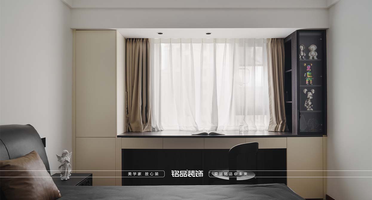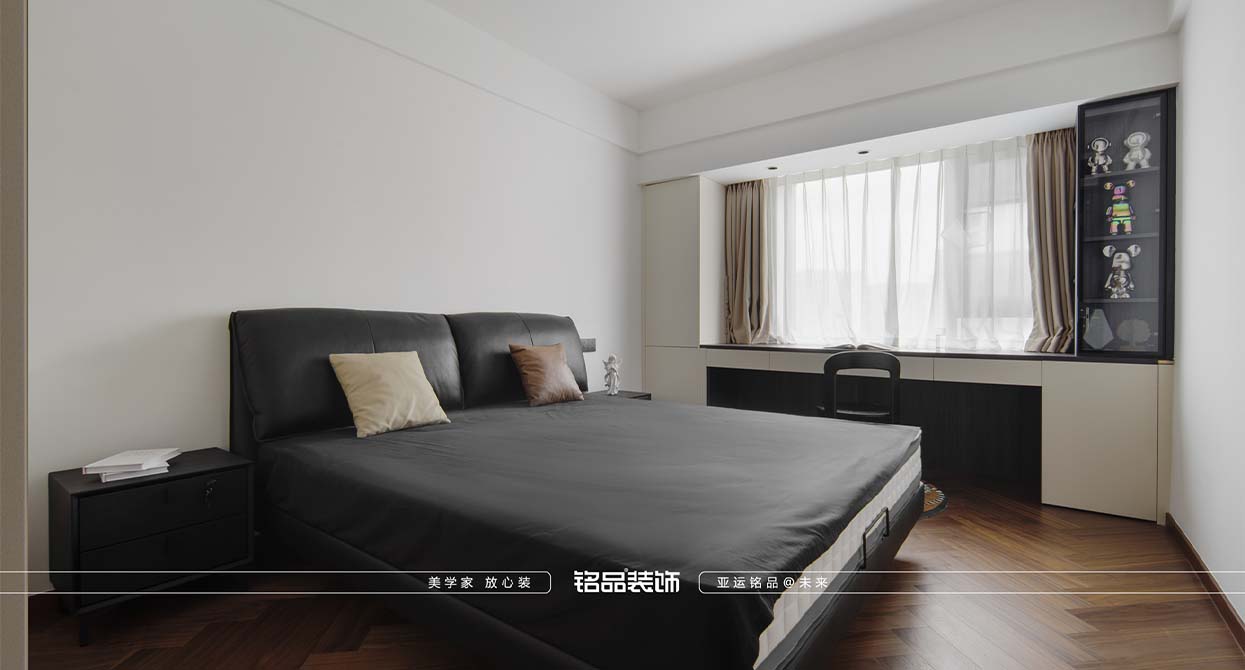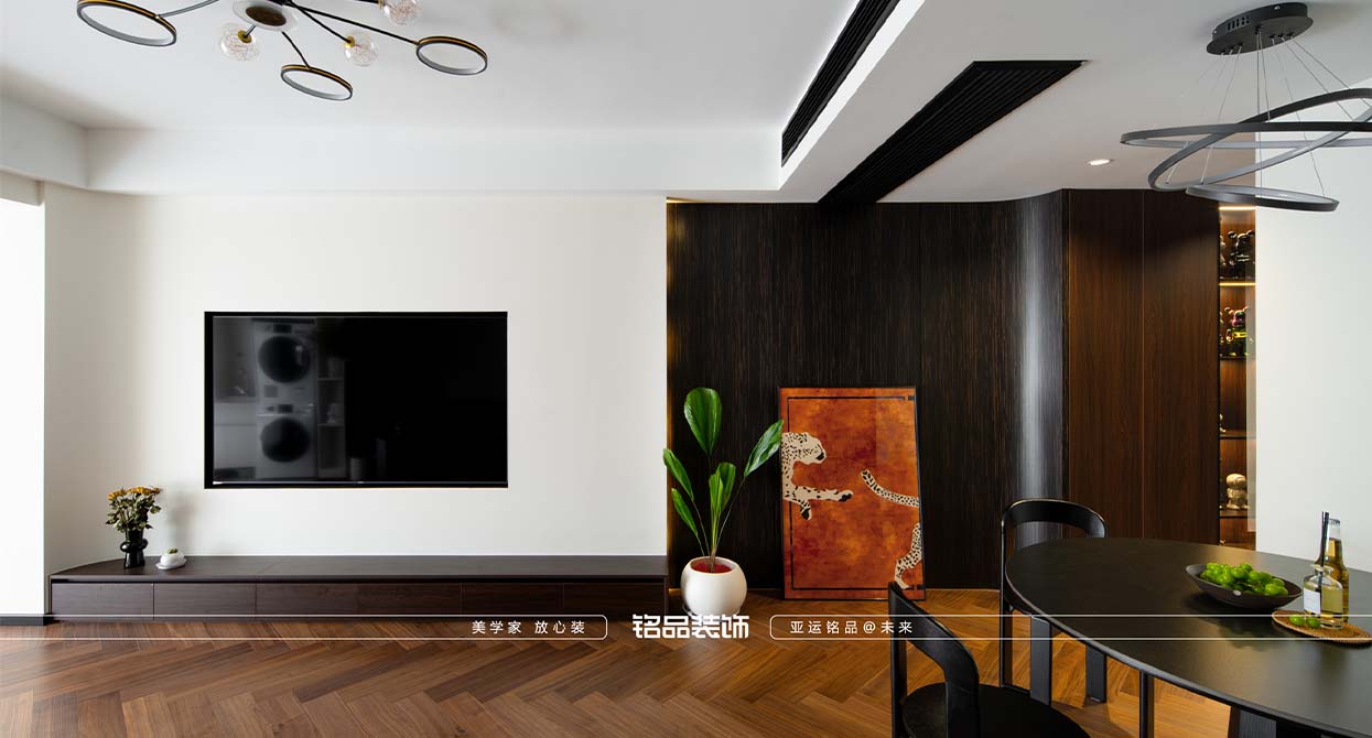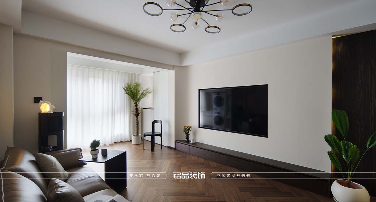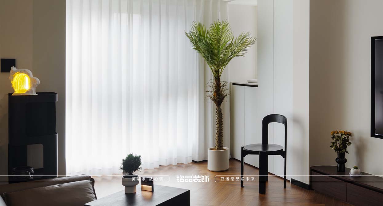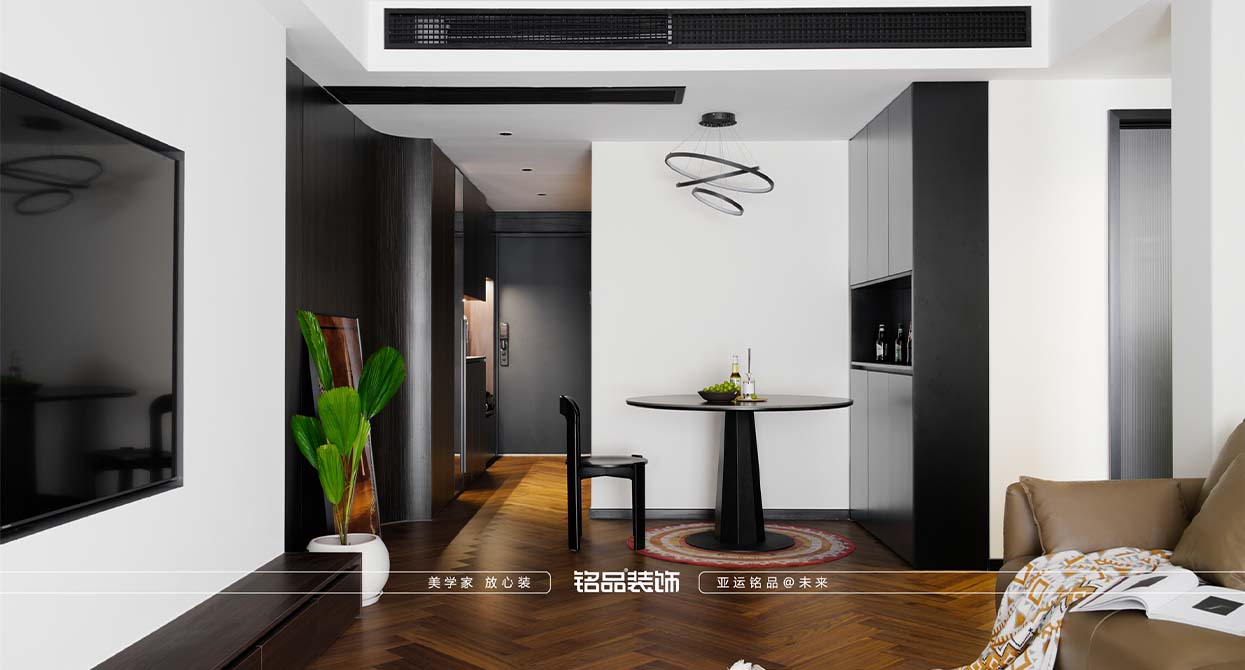 整個戶型因?yàn)槭侵虚g套,所以總體采光不是很好,廚房進(jìn)出口很小,如果做小開門或是折疊門都不合適,剛好邊上一個小書房,就把書房的移門跟廚房的做一個整體的三移門,增加透光度,減少過道的墻體面積。把廚房移門跟書房鏈接起來就起到裝飾 跟采光的效果。陽臺打開一個是為增加采光,再一個是為了拉長客廳的空間感。原戶型的客廳太方正,這樣就變成長方型效果。做為中古風(fēng)來說,全屋地板是最出彩的,但是陽臺要洗衣服所以要考慮一個水的問題。最后效果為主,就在洗衣機(jī)下面做了貼磚的效果。加上移門拆了以后的承重墻體就加了一個側(cè)面柜把陽臺洗衣機(jī)柜跟承重墻完美的收編。衛(wèi)生間是硬做了一個干區(qū),落地效果還是很好,臺盆柜是客戶網(wǎng)上定制 的。沙發(fā)后面有兩個陽角因?yàn)閴θ泻癖?,所以做圓角處理。