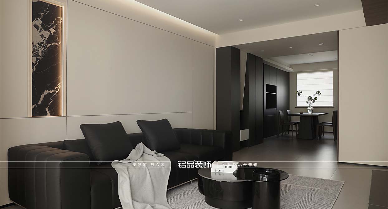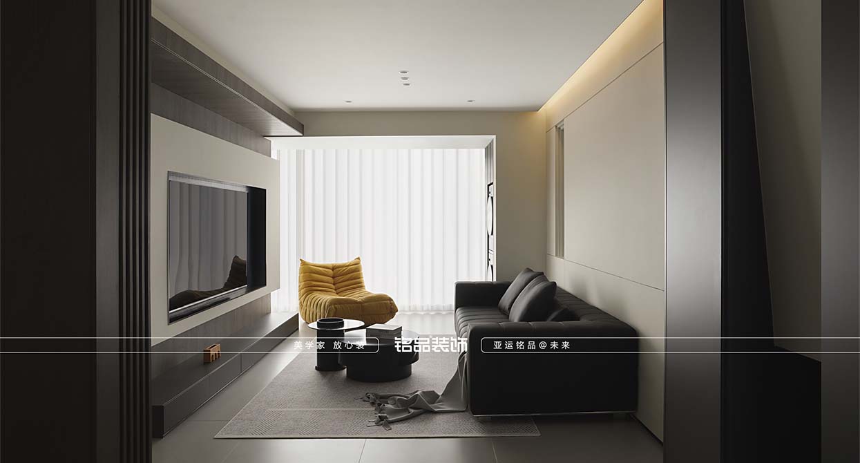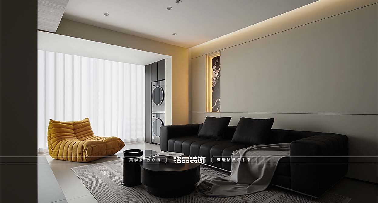 本案采用偏極簡的處理手法,運用線條和色彩塊面的關(guān)系,體現(xiàn)空間層次和空間的氛圍,摒棄一些復(fù)雜的造型裝飾和一些雕刻復(fù)雜的細節(jié),用最少的設(shè)計打造最有張力的空間效果。