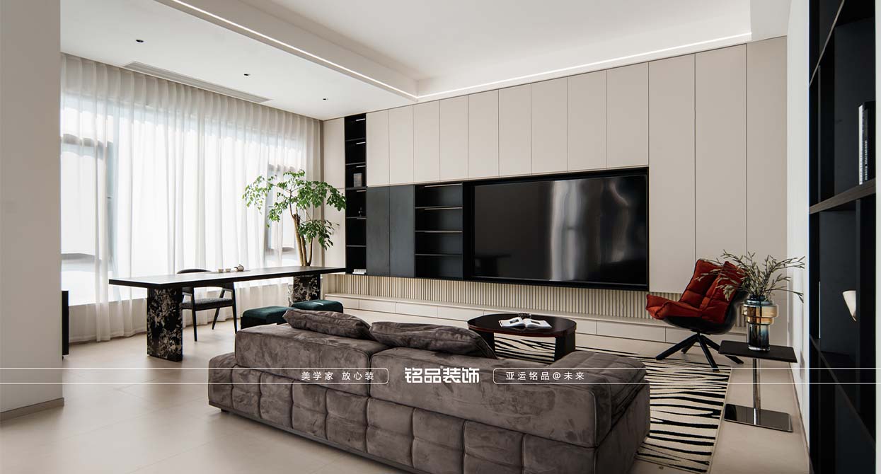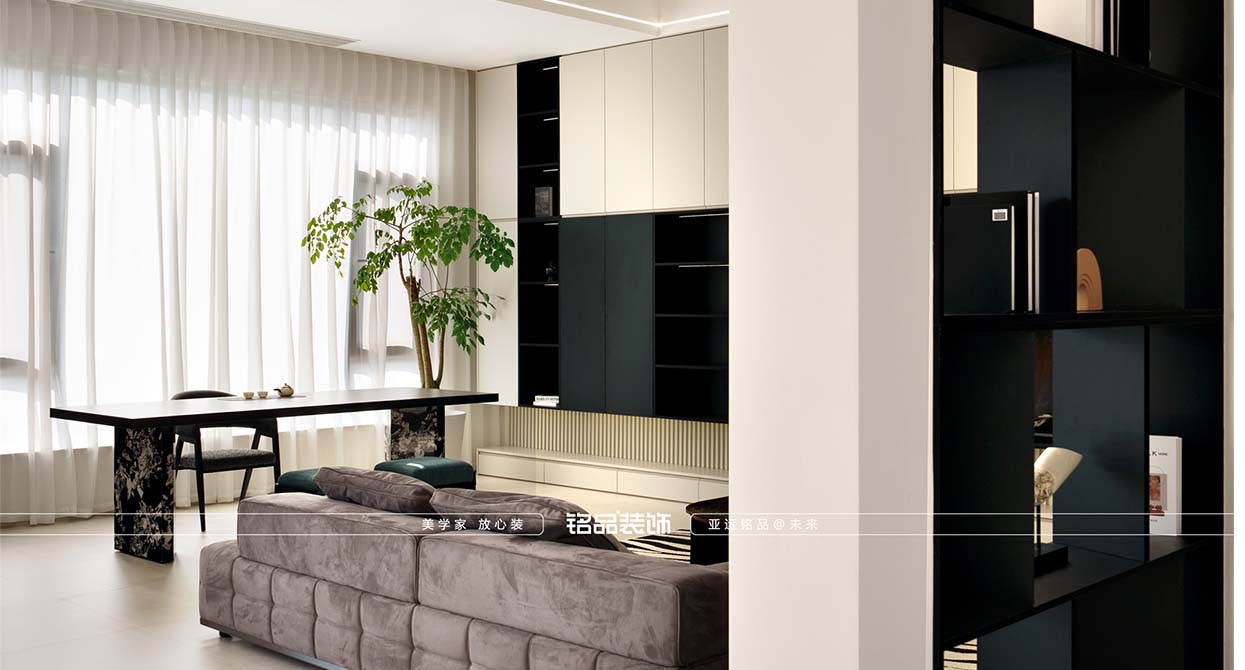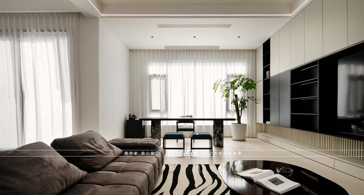 本案是一套意式簡(jiǎn)約風(fēng)格通過(guò)簡(jiǎn)化和減少不必要的元素,以達(dá)到美學(xué)和功能的最大化。每一處細(xì)節(jié)都經(jīng)過(guò)精心策劃,力求在簡(jiǎn)約中尋求奢華,在平靜中感受激情。這種風(fēng)格不僅是一種裝修方式,更是一種生活態(tài)度的體現(xiàn),追求的是空間的通透感、線條的流暢性以及材質(zhì)的質(zhì)感。色彩上多以黑、白、灰等中性色為主,這些色彩能夠營(yíng)造出一種冷靜、沉穩(wěn)的氛圍。同時(shí),也會(huì)巧妙地融入一些低飽和度的色彩,如米色、木色等,以增加空間的溫馨感和層次感。整體色彩搭配簡(jiǎn)潔而不失高級(jí)感,讓人感受到一種簡(jiǎn)約而不簡(jiǎn)單的美。