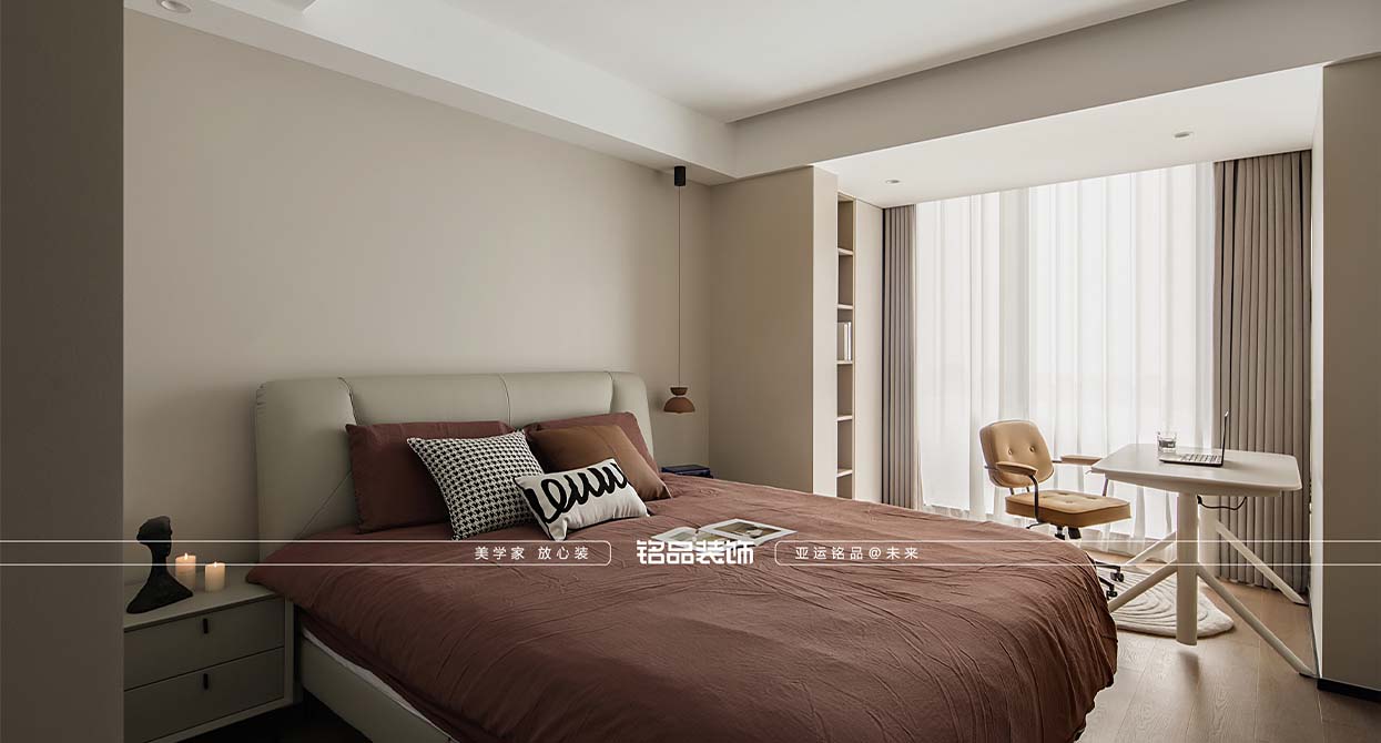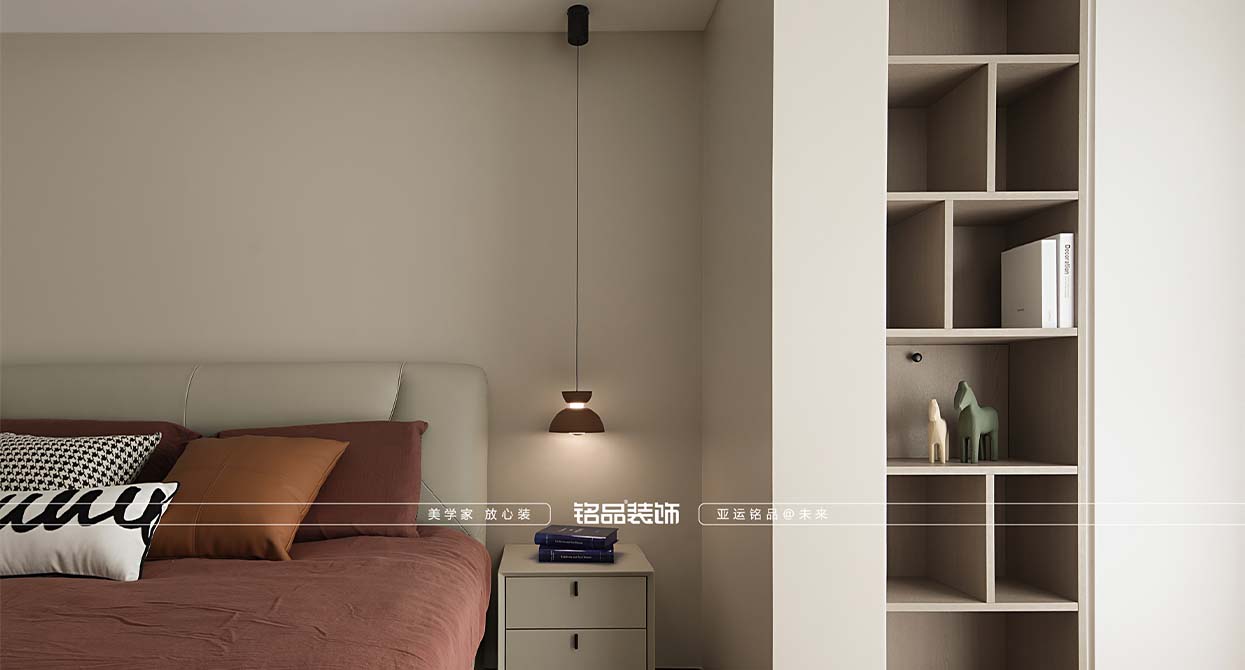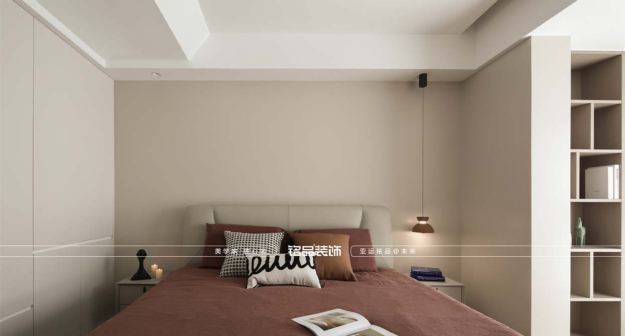 本案采用偏極簡的處理手法,運(yùn)用線條和色彩塊面的關(guān)系,體現(xiàn)空間層次和空間的氛圍,摒棄一些復(fù)雜的造型裝飾和一些雕刻復(fù)雜的細(xì)節(jié),用最少的設(shè)計(jì)打造最有張力的空間效果。