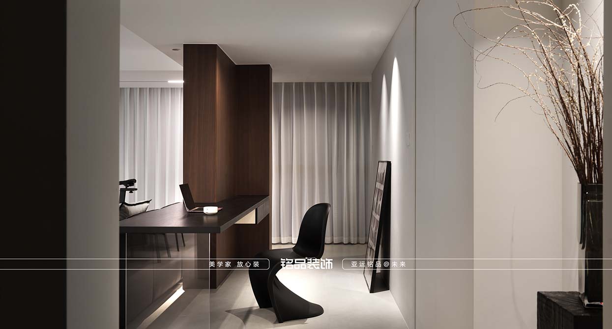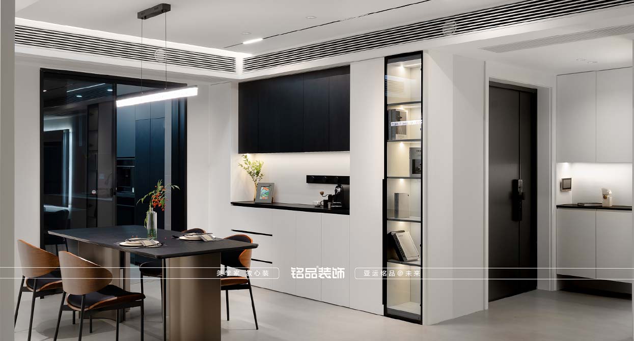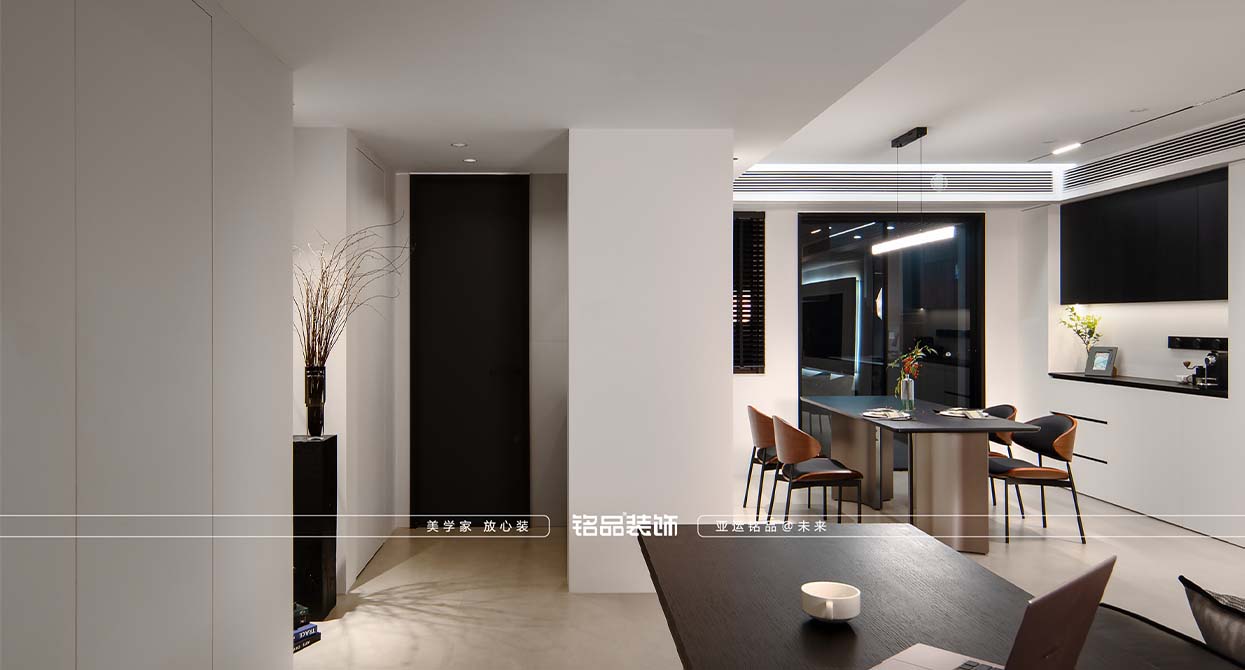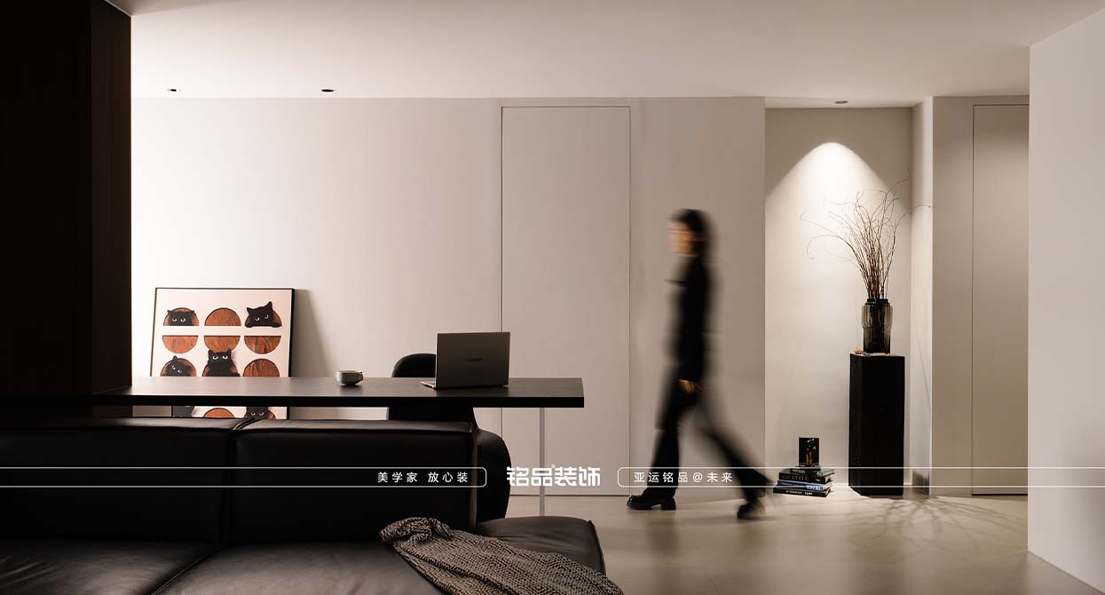 整體風(fēng)格選擇中性色調(diào),白色、胡桃木色、和黑色,以營(yíng)造干凈、明亮的空間氛圍。設(shè)計(jì)家具和裝飾品的選擇偏向簡(jiǎn)約、線條流暢的設(shè)計(jì),注重實(shí)用性和美感的結(jié)合。