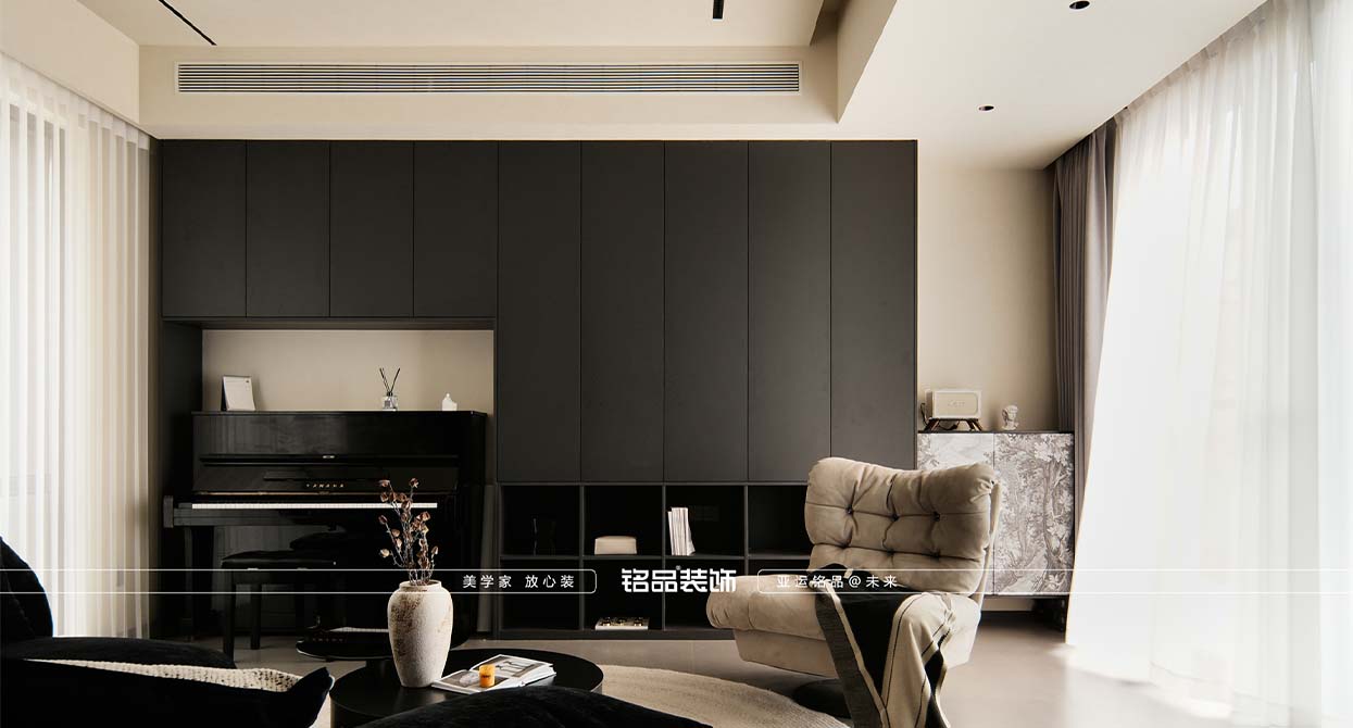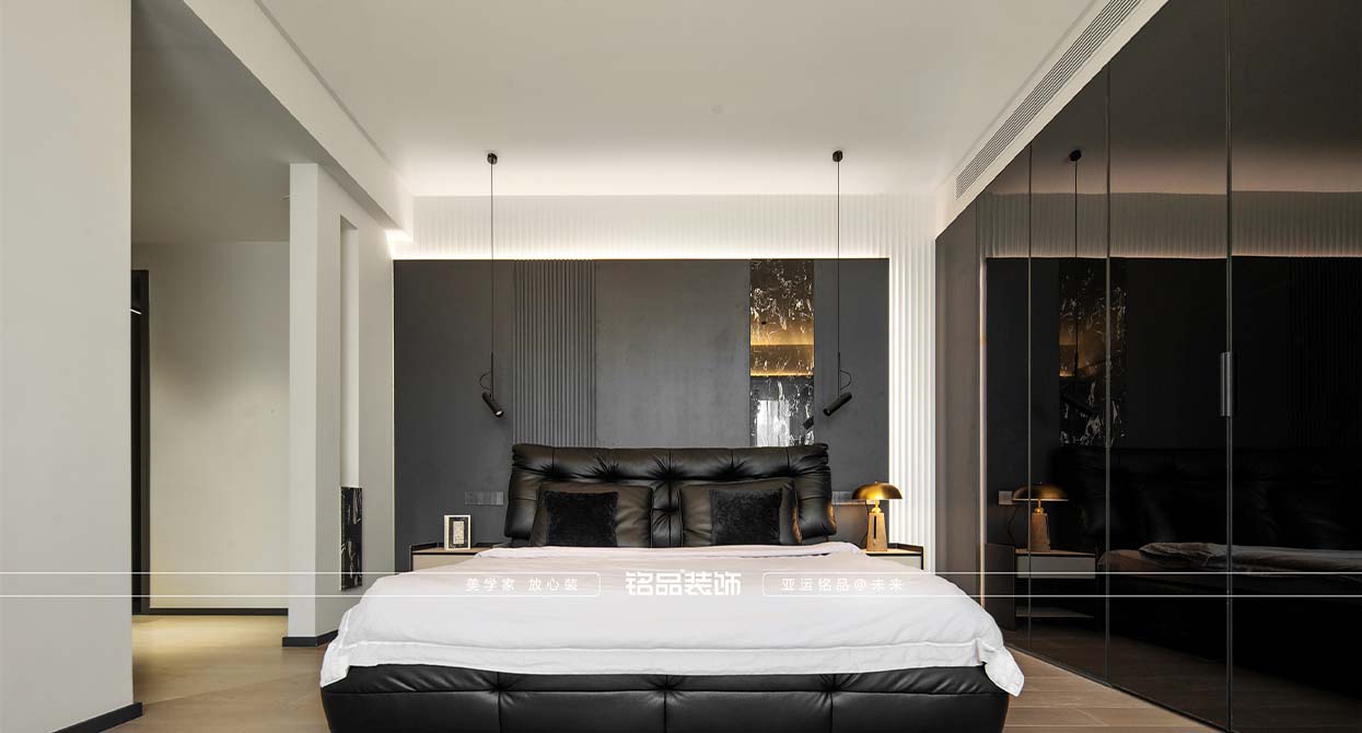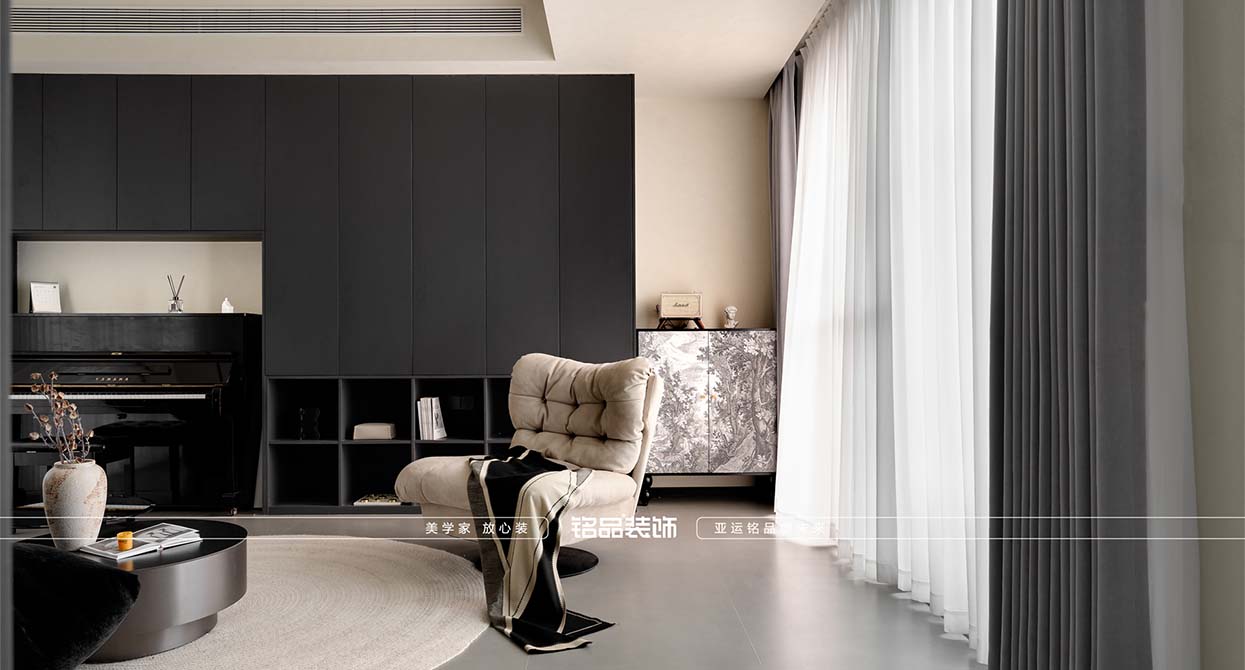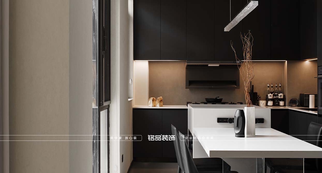 本案業(yè)主是新婚小年輕婚房設(shè)計(jì),整體采用黑白基調(diào)簡(jiǎn)約風(fēng)格。一是追求簡(jiǎn)潔,用最純粹的形式展現(xiàn)空間和物體,去除繁雜的裝飾。從硬裝造型到軟裝家具,都沒(méi)有過(guò)多復(fù)雜造型及花紋,通過(guò)簡(jiǎn)潔的線條和形狀構(gòu)建空間秩序。二是注重對(duì)比,黑色和白色做鮮明對(duì)比,產(chǎn)生強(qiáng)烈視覺(jué)沖擊力。通過(guò)黑色家具以及白色墻面,或者黑白的裝飾,凸顯空間層次和立體感。三是體現(xiàn)高雅質(zhì)感,選擇了淺色系的藝術(shù)漆,黑色的大理石,通透的玻璃磚來(lái)讓空間精致高級(jí)。四是功能主義,無(wú)論是家具設(shè)計(jì)以及空間布局,都以滿足使用為出發(fā)點(diǎn)。