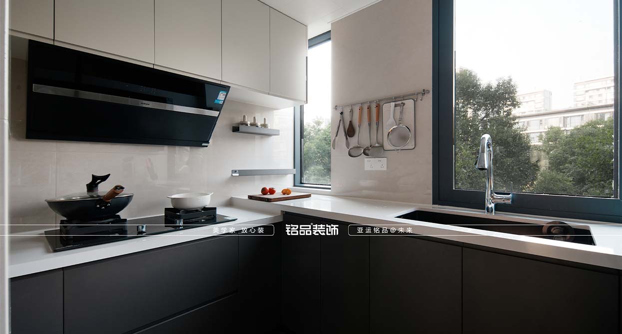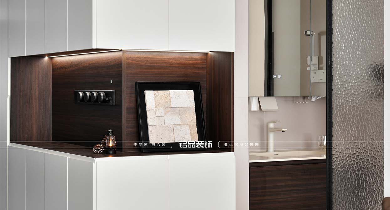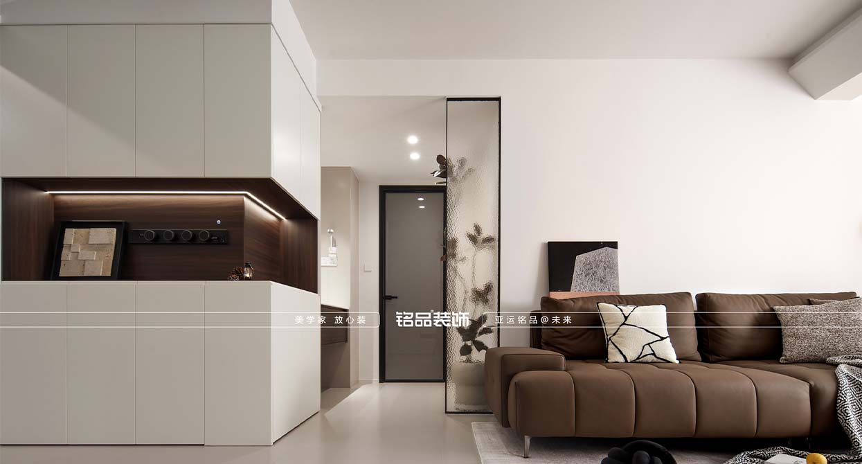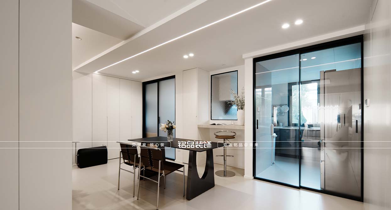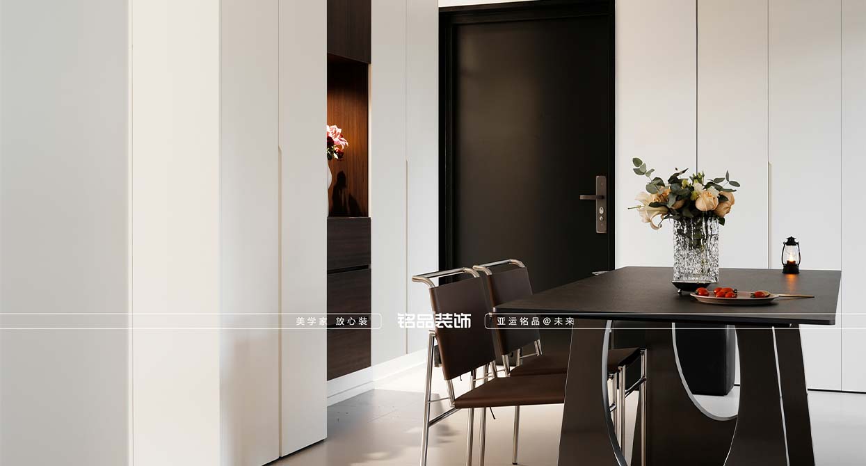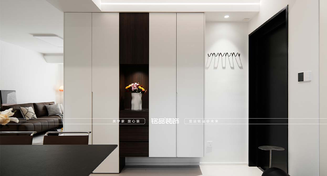 原筑壹號裝修本次設計定位于現(xiàn)代極簡風格,整體色調聚焦在黑白灰三色上。這一風格追求極致的簡約,摒棄多余的裝飾元素,強調空間、材質以及光影效果所營造出的純粹美感。黑白灰的色彩搭配,既彰顯出沉穩(wěn)大氣,又傳遞出簡潔高雅的格調,為整個空間奠定了冷峻且極具質感的視覺基礎。在空間布局方面,我們打破了原始格局,著重打造進門即敞亮的空間效果。通過拆除部分不必要的隔斷墻體,或是采用開放式的設計手法,使得從進門的那一刻起,視野開闊,空間的通透感和連貫性得以增強,給人一種豁然開朗的舒適感受,讓居住者或使用者一踏入空間就能感受到輕松與自在