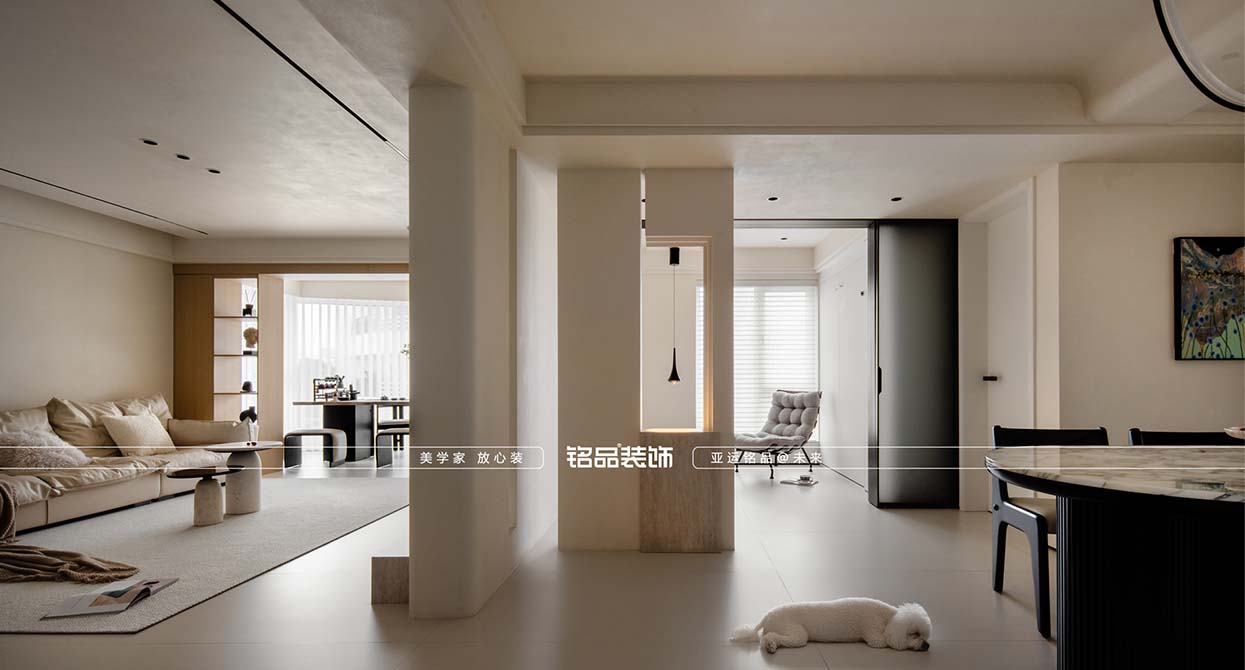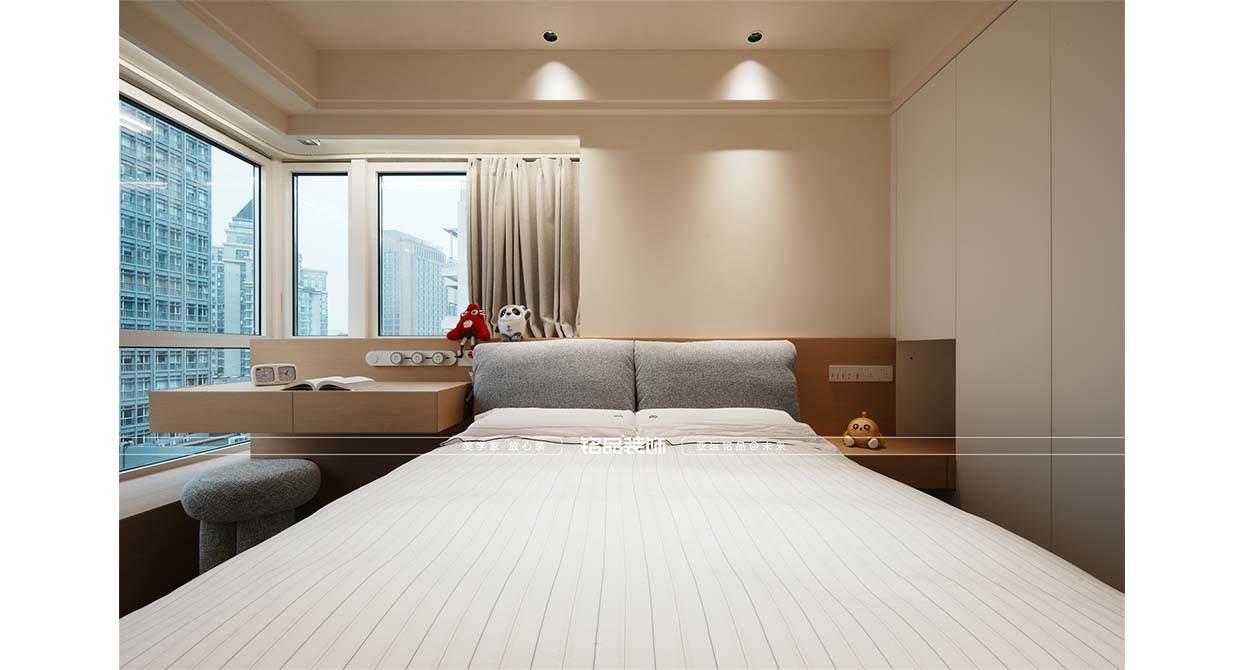 白馬公寓裝修完善符合業(yè)主的居住空能的情況下,讓空間更加打開通透、高級(jí)、美觀。進(jìn)門玄關(guān)運(yùn)用一些僵住手法設(shè)計(jì),既有空間感又有造型感。原本獨(dú)立的四個(gè)房間,客戶需求想要一個(gè)開闊的大平層既視感,我把第四個(gè)房間做成開合空間平時(shí)可以作為業(yè)主的獨(dú)立休閑下午茶區(qū)域,廚房空間利用原陽臺(tái)空間做個(gè)補(bǔ)充擴(kuò)大,光線更加充足直接,餐廳在廚房調(diào)整的情況下,第四個(gè)空間的打開變得更大開闊和通透??蛷d區(qū)域劃分一部分作為一個(gè)茶室。主臥在客衛(wèi)的調(diào)整下多出了衣帽間的空間。女兒房和兒子房間飄窗的設(shè)計(jì)讓兩個(gè)房間收納更加多的情況下多了幾分溫馨感。
