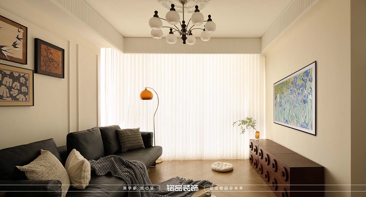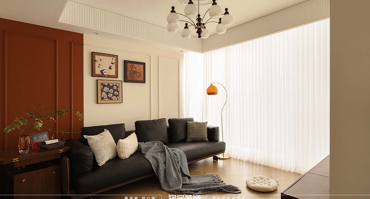 太陽國際公寓裝修本案是輕法式中古風(fēng),主要的設(shè)計理念是摒棄復(fù)雜的設(shè)計,以簡單的線條做點綴,大量使用木材,皮革,藤編等,保留材料的原始紋理和質(zhì)感。適當(dāng)結(jié)合當(dāng)時新興的玻璃纖維,金屬,體現(xiàn)科技與自然的平衡。以大地色為主,營造溫暖氛圍,點綴高飽和度的橙紅色,形成視覺沖擊。選擇抽象幾何圖案的掛畫,球形吊燈等元素凸顯中古韻味。