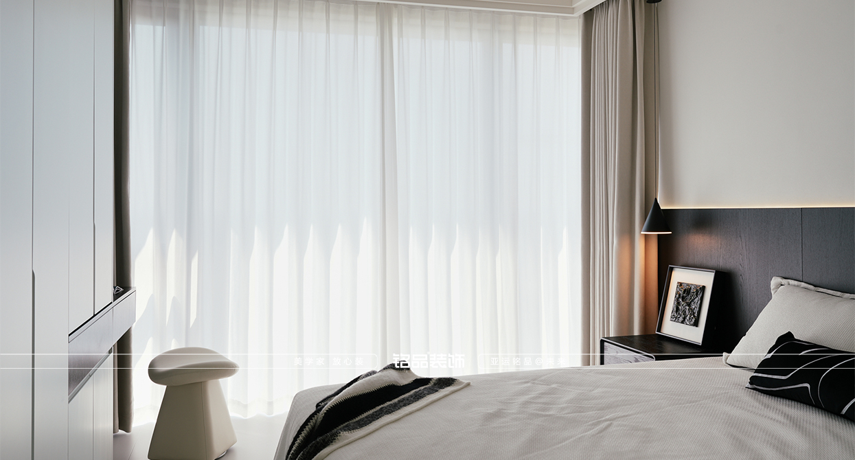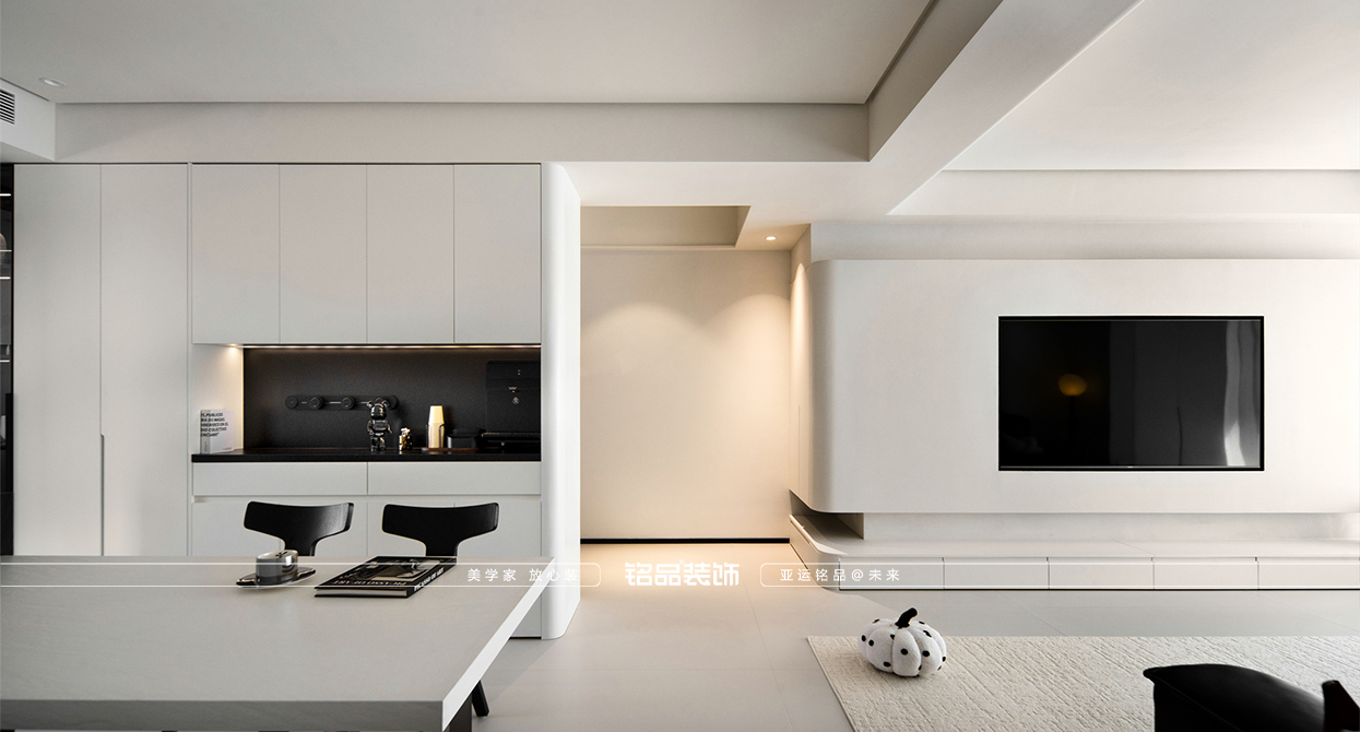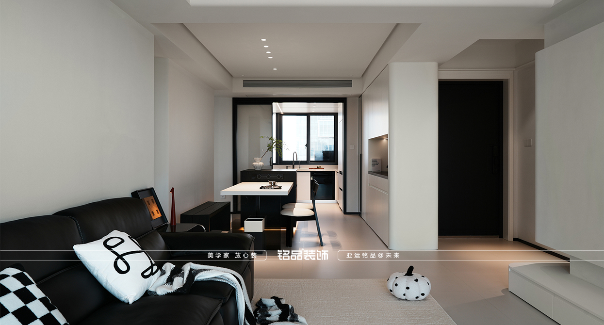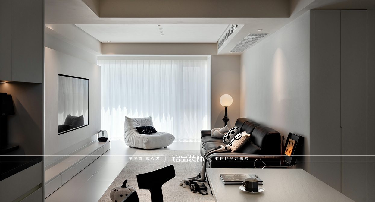 海寧鴻翔云望府裝修以黑白為主,極簡風顯得干凈利落,和客戶強迫癥性格相符,線條感強,空間方正,創(chuàng)造一個能讓人放松、思考、遠離外界喧囂的庇護所。通過極致的簡化,引導居住者關(guān)注內(nèi)心,體驗空間帶來的寧靜、秩序與平和感。