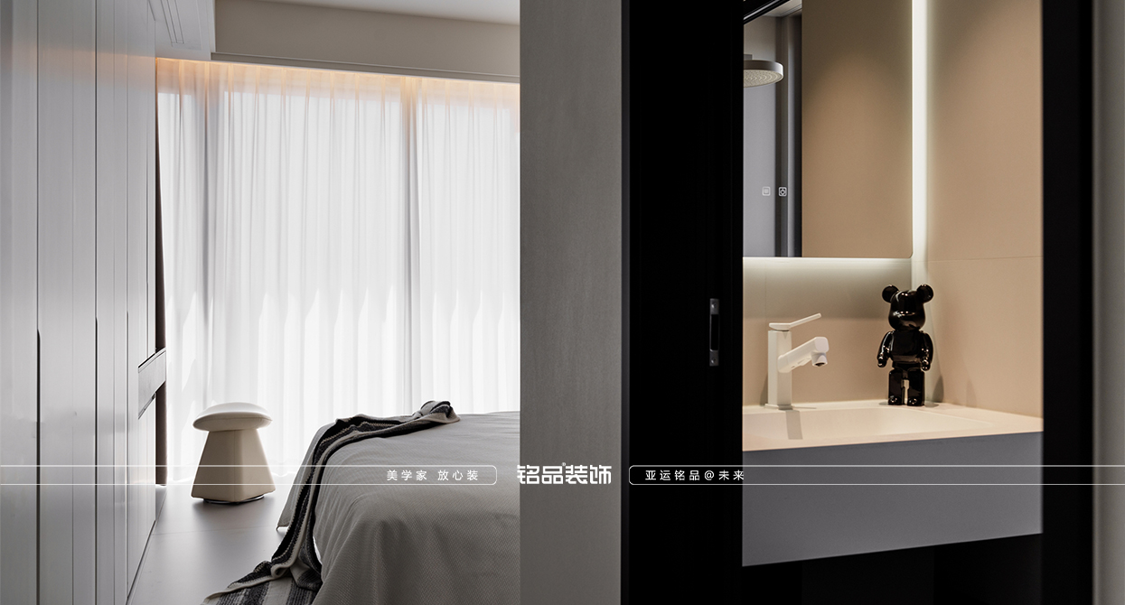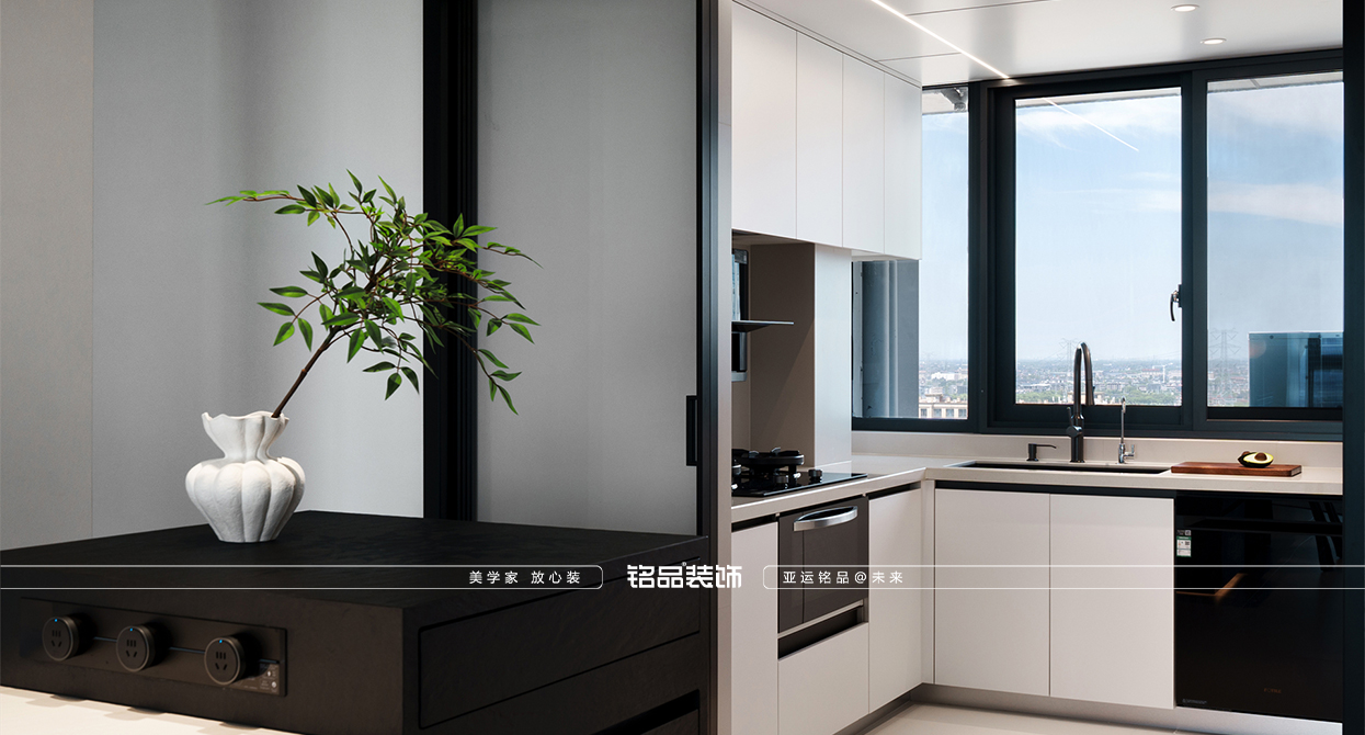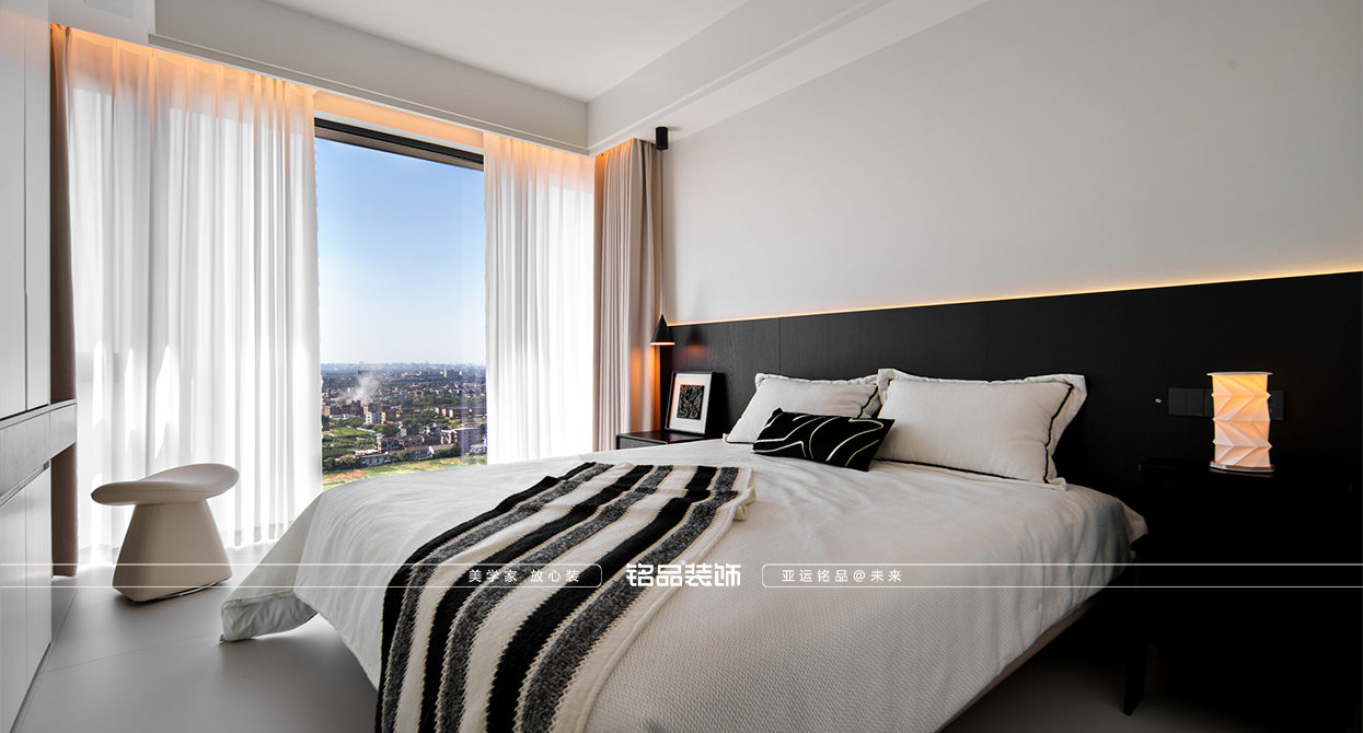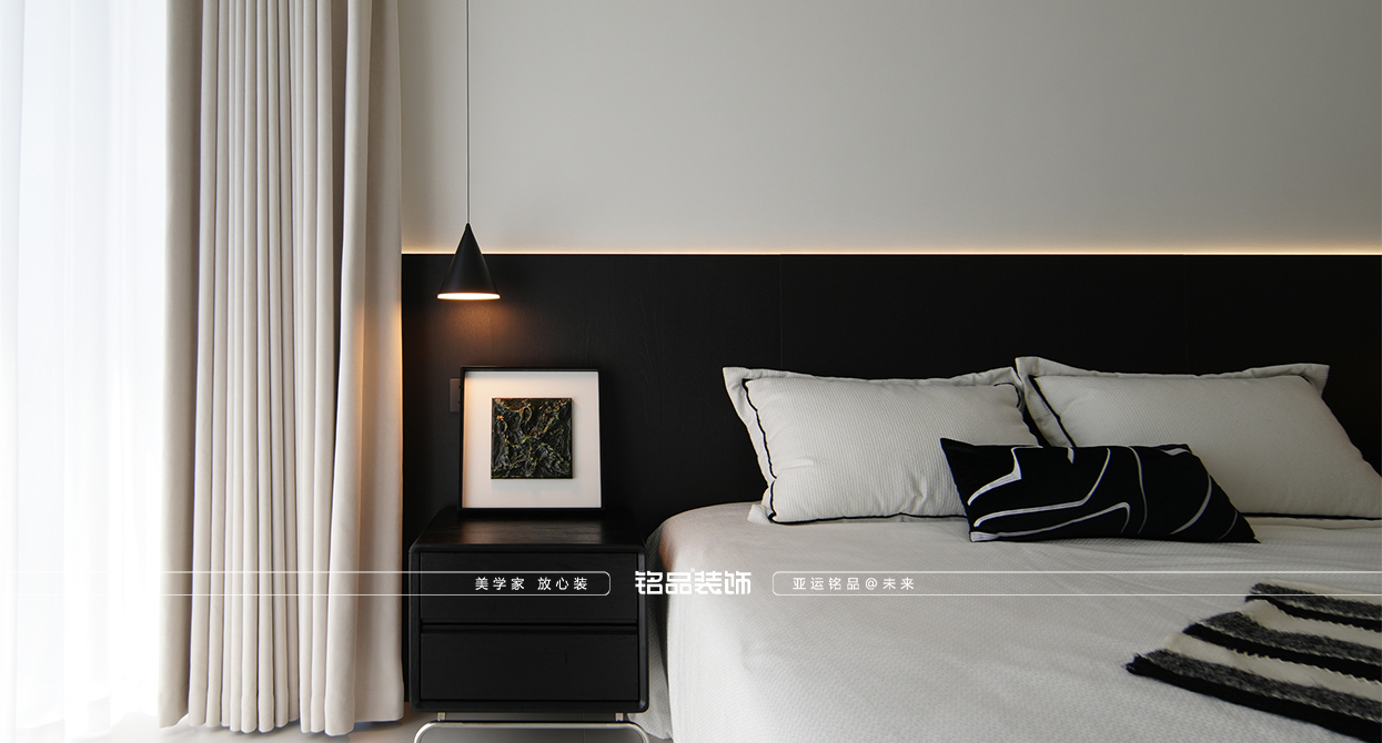 海寧鴻翔云望府裝修以黑白為主,極簡風顯得干凈利落,和客戶強迫癥性格相符,線條感強,空間方正,創(chuàng)造一個能讓人放松、思考、遠離外界喧囂的庇護所。通過極致的簡化,引導居住者關(guān)注內(nèi)心,體驗空間帶來的寧靜、秩序與平和感。