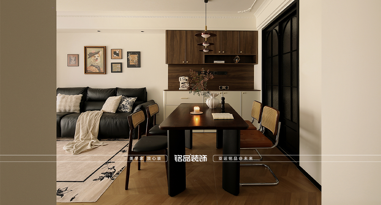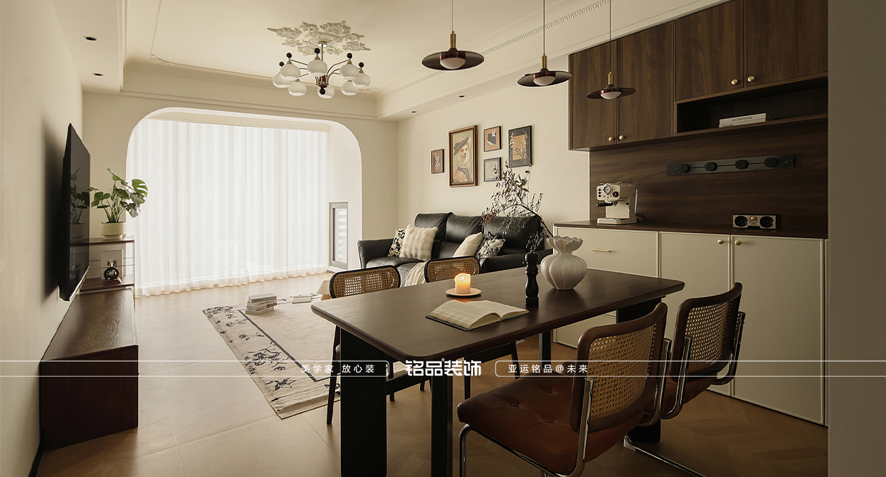 采用原木、黃銅、皮革等耐久材質(zhì),通過(guò)歲月沉淀形成獨(dú)特紋理。配色常選用中性色系(如胡桃木、墨綠、酒紅)搭配少量藝術(shù)掛畫(huà)或單椅,營(yíng)造溫馨復(fù)古氛圍。