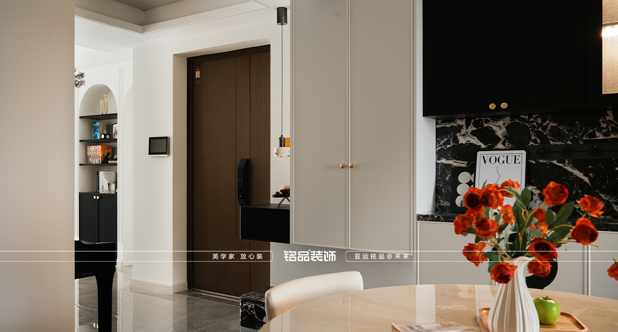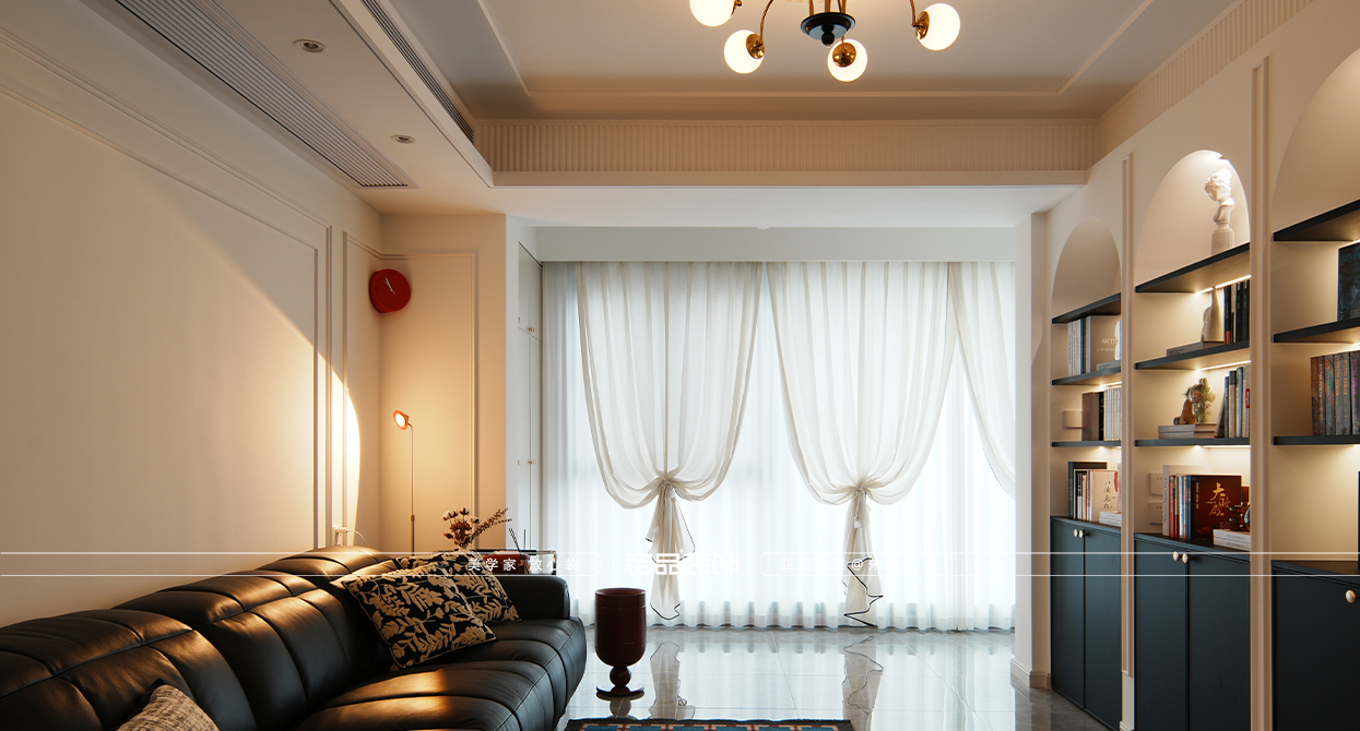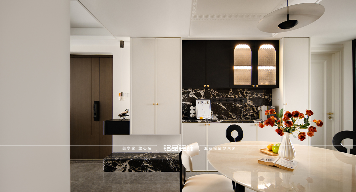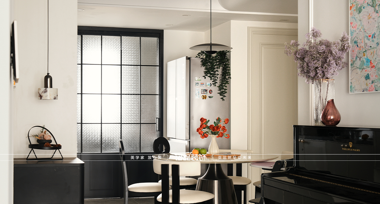 風(fēng)格上,業(yè)主喜歡黑白的輕法式風(fēng)格,客餐廳和臥室都新增加石膏線條,吊頂也做了燈盤和造型線條來增加元素烘托,原有的平板門換成了白色油漆造型門,更具法式風(fēng)情;廚房移門改造成三聯(lián)動海棠玻璃移門,全屋柜子都使用骨骼線造型,增強法式的氛圍感