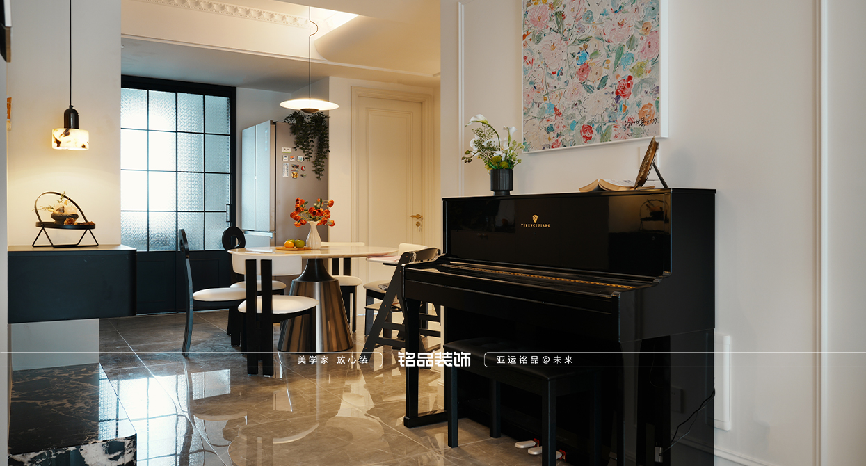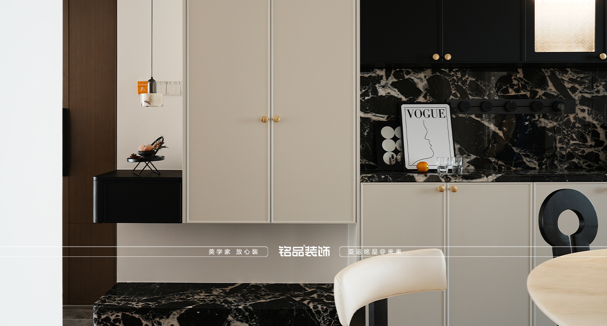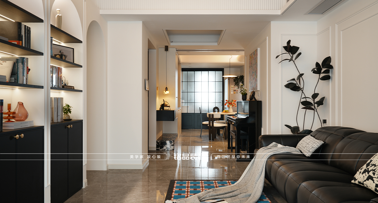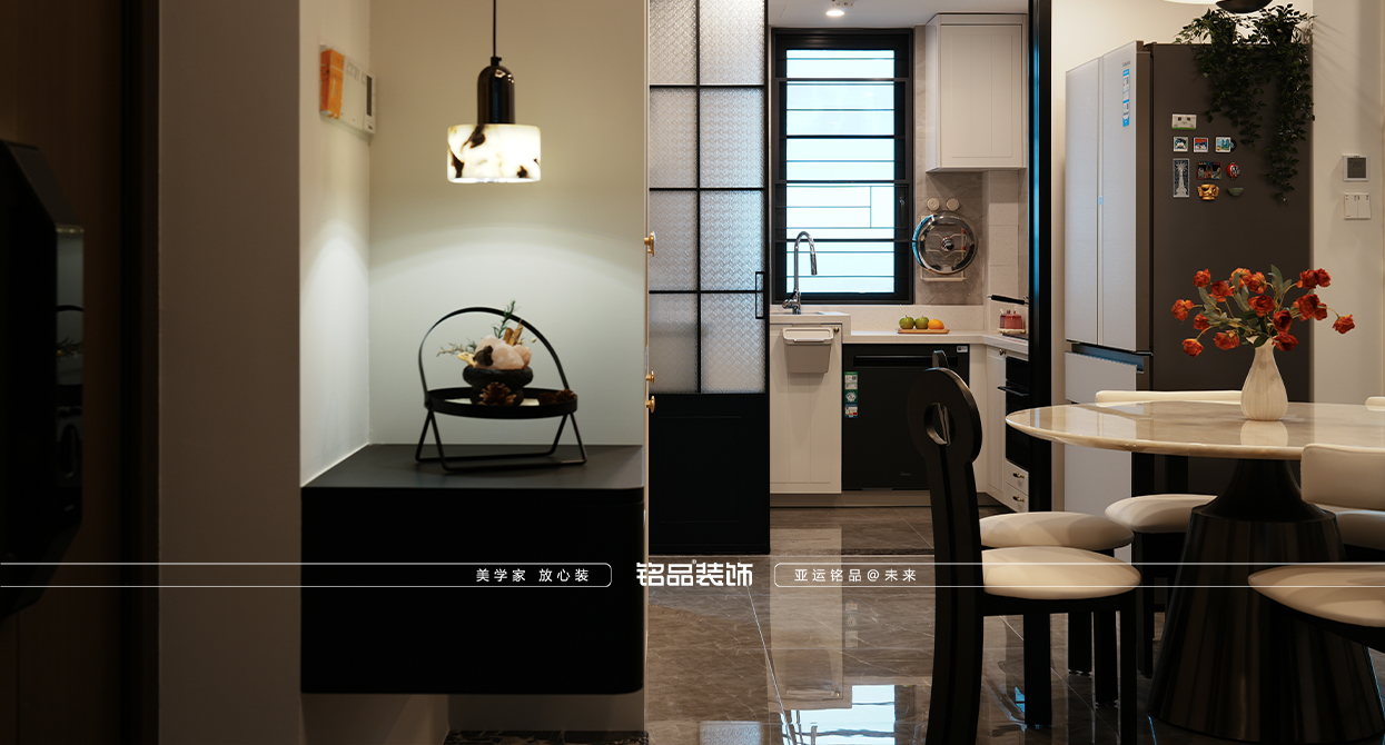 風(fēng)格上,業(yè)主喜歡黑白的輕法式風(fēng)格,客餐廳和臥室都新增加石膏線條,吊頂也做了燈盤和造型線條來增加元素烘托,原有的平板門換成了白色油漆造型門,更具法式風(fēng)情;廚房移門改造成三聯(lián)動海棠玻璃移門,全屋柜子都使用骨骼線造型,增強法式的氛圍感
