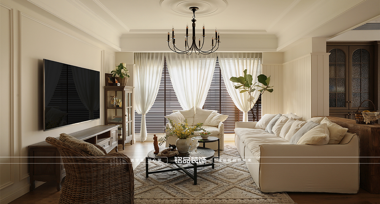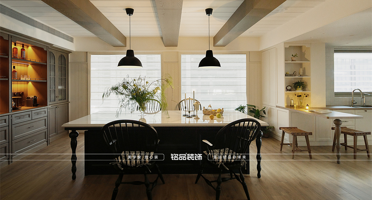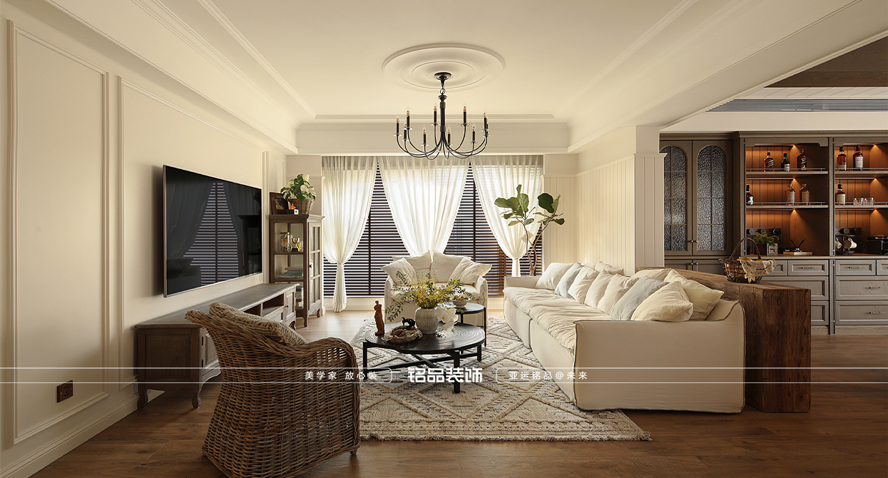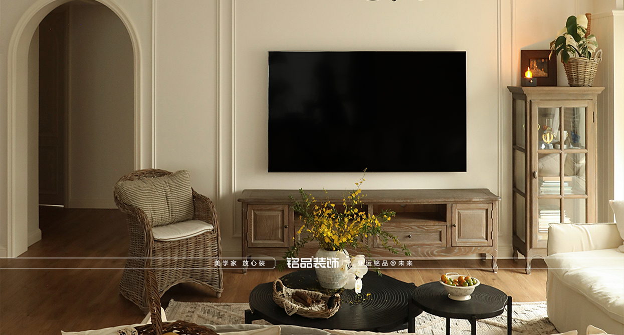 山水國際本案原本的是四房的配置,摒棄了兩房改成一個大橫廳的感覺,從局促的空間調整成大平層的視野感,實用自然元素,整體使空間返璞歸真。 色彩:中性基調(米白、淺灰)搭配低飽和度色彩