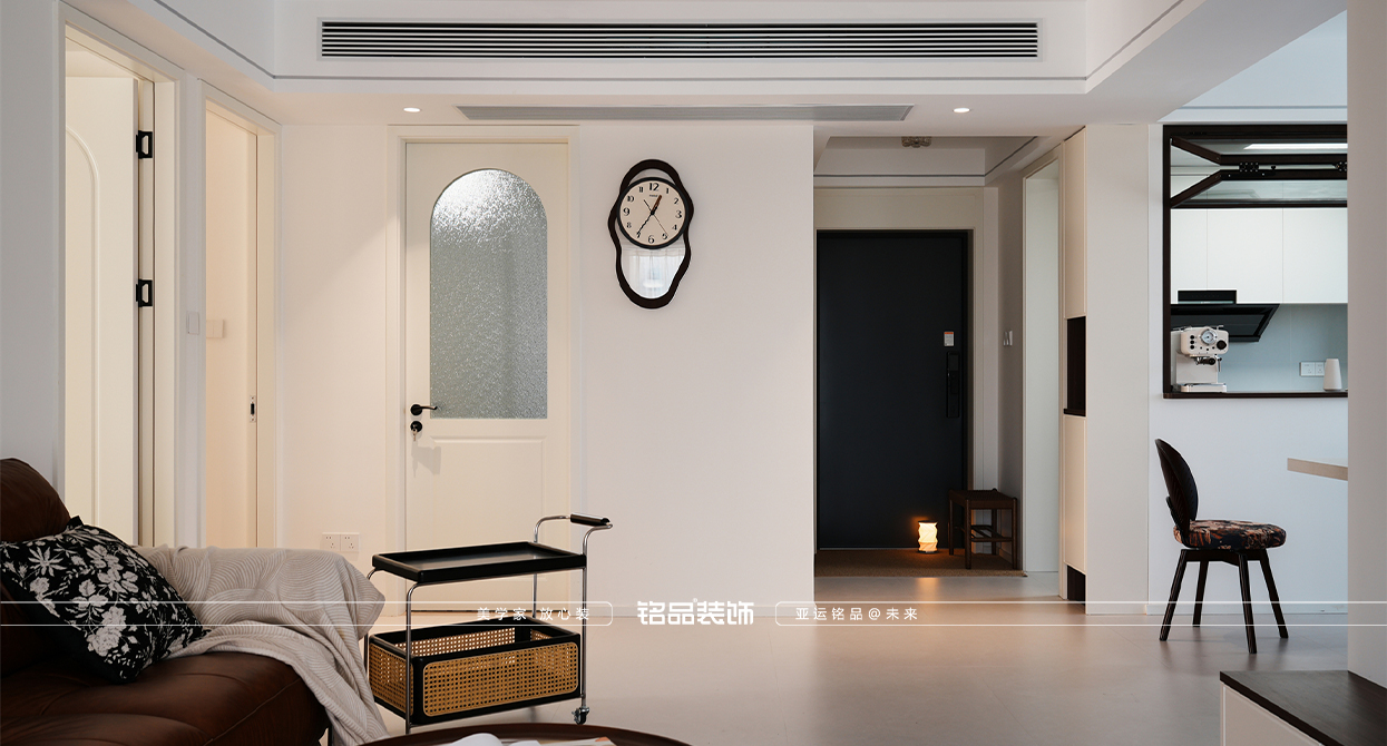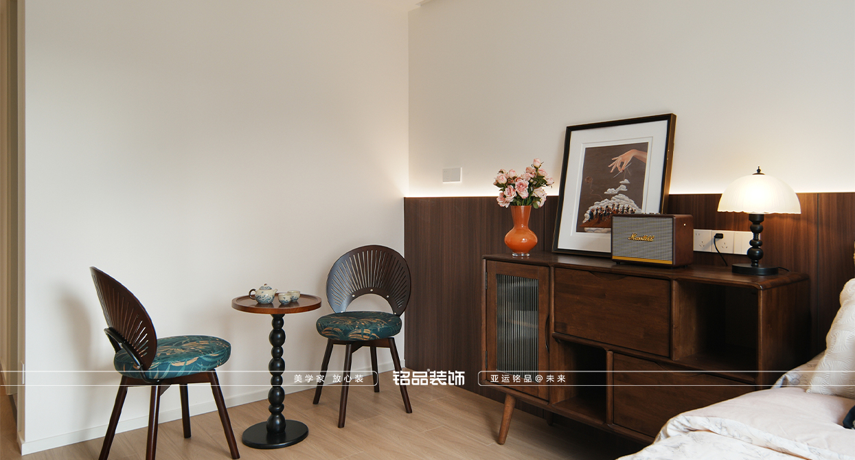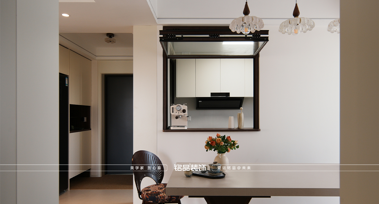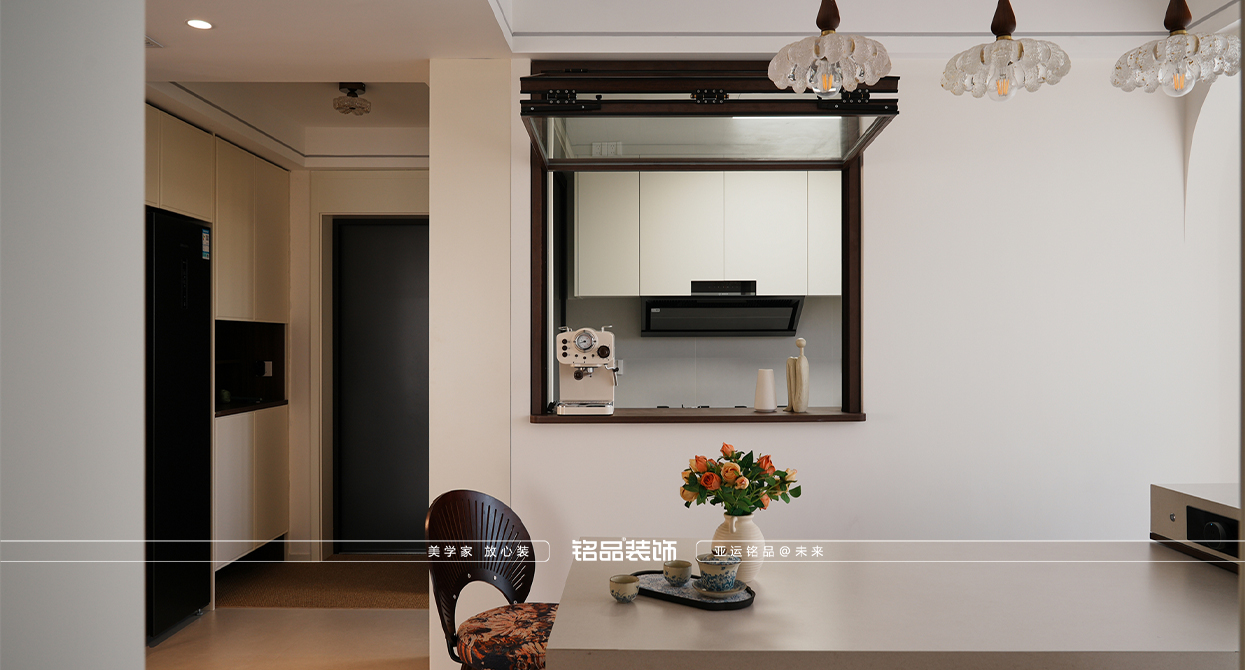 乾韻華庭這套新裝修的房子以新老迭代為核心設(shè)計理念,旨在營造一個既復(fù)古又現(xiàn)代的居住環(huán)境。餐廳的島臺與餐桌一體化設(shè)計,不僅提升了空間的功能性,還增強了家庭成員間的互動,使得烹飪與用餐變得更加便捷和愉悅。廚房的折疊窗設(shè)計巧妙地打破了傳統(tǒng)廚房的封閉感,增加了與家人的交流機會,也使得在廚房操作的同時能關(guān)注到家里老人的動向,確保安全。同時也讓空間感得到延伸,使得整個居住空間更加通透和開放。主臥的雙床設(shè)計考慮到了對老人的照顧需求,既方便了日常的護理,又保證了居住的舒適性和私密性。整體設(shè)計在滿足現(xiàn)代生活需求的同時,也體現(xiàn)了對傳統(tǒng)文化的尊重和傳承。
