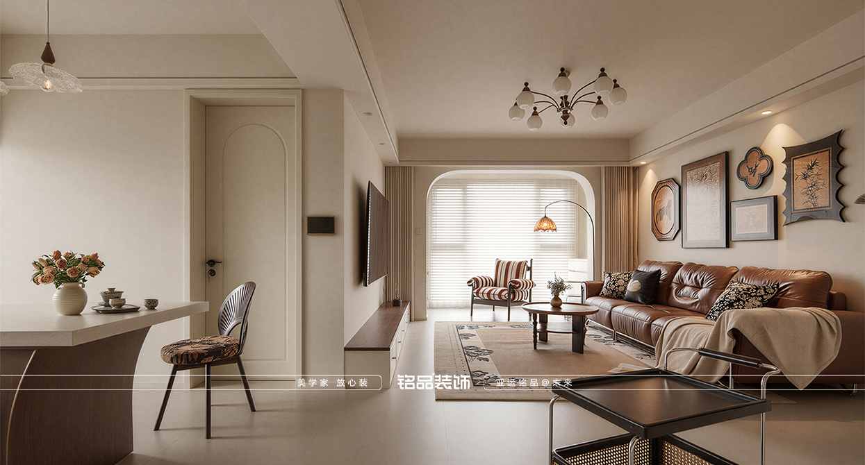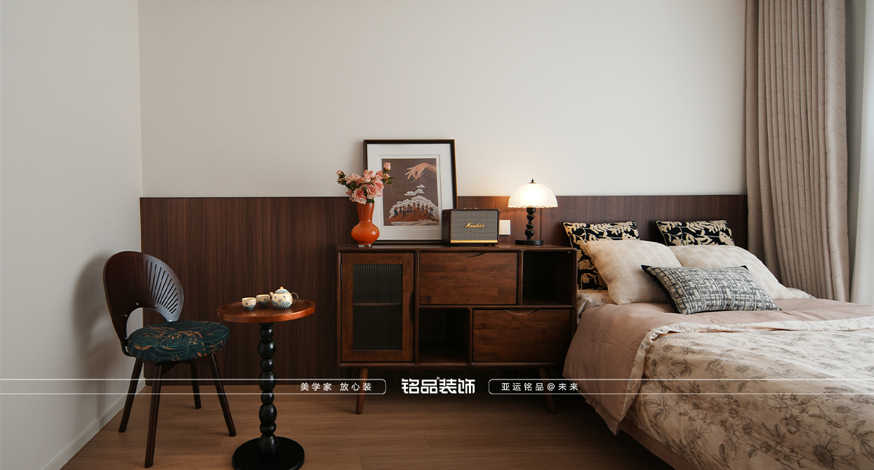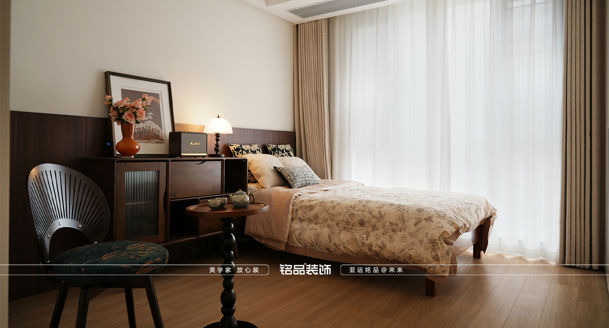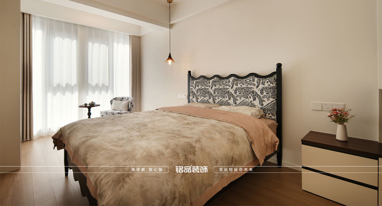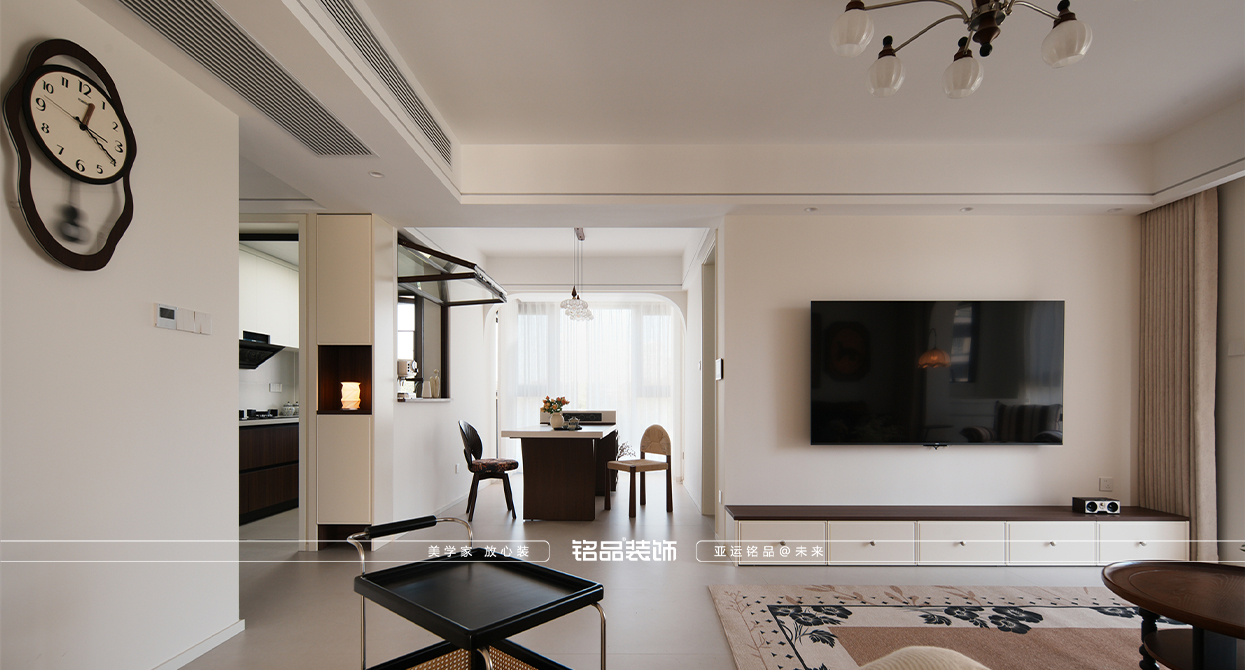 乾韻華庭這套新裝修的房子以新老迭代為核心設(shè)計理念,旨在營造一個既復(fù)古又現(xiàn)代的居住環(huán)境。餐廳的島臺與餐桌一體化設(shè)計,不僅提升了空間的功能性,還增強了家庭成員間的互動,使得烹飪與用餐變得更加便捷和愉悅。廚房的折疊窗設(shè)計巧妙地打破了傳統(tǒng)廚房的封閉感,增加了與家人的交流機會,也使得在廚房操作的同時能關(guān)注到家里老人的動向,確保安全。同時也讓空間感得到延伸,使得整個居住空間更加通透和開放。主臥的雙床設(shè)計考慮到了對老人的照顧需求,既方便了日常的護理,又保證了居住的舒適性和私密性。整體設(shè)計在滿足現(xiàn)代生活需求的同時,也體現(xiàn)了對傳統(tǒng)文化的尊重和傳承。