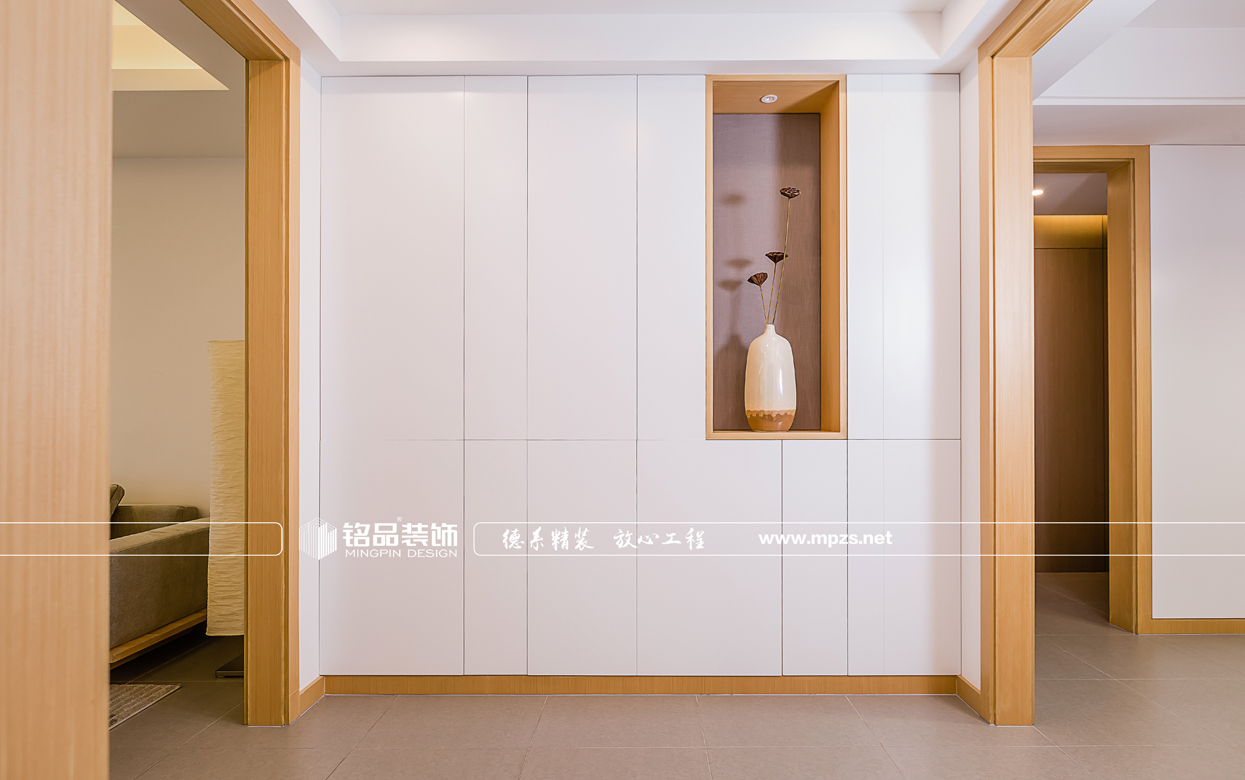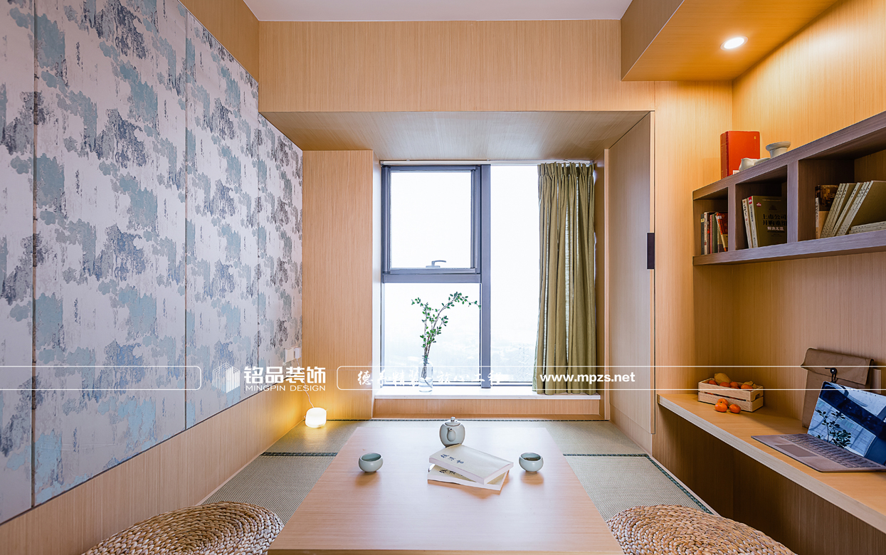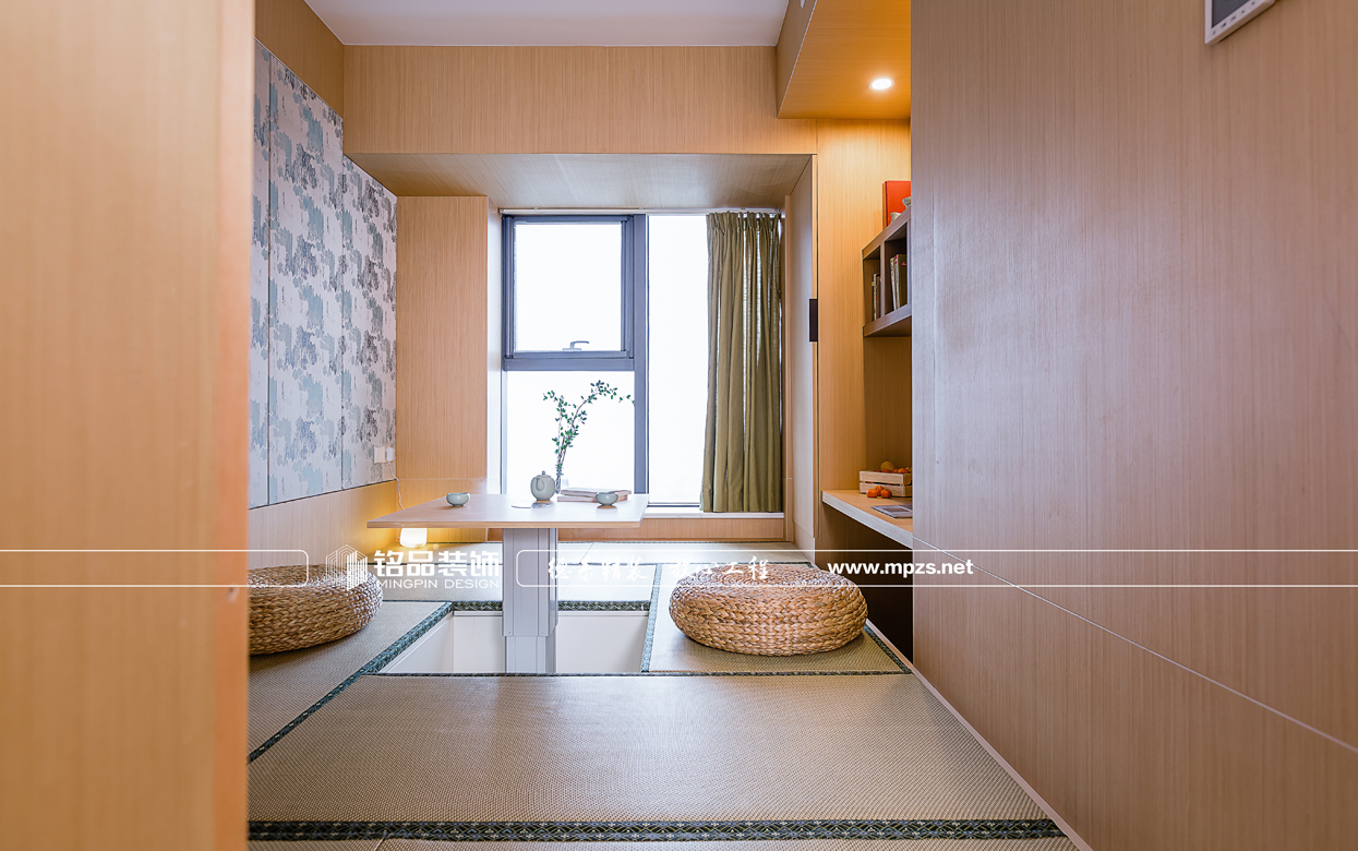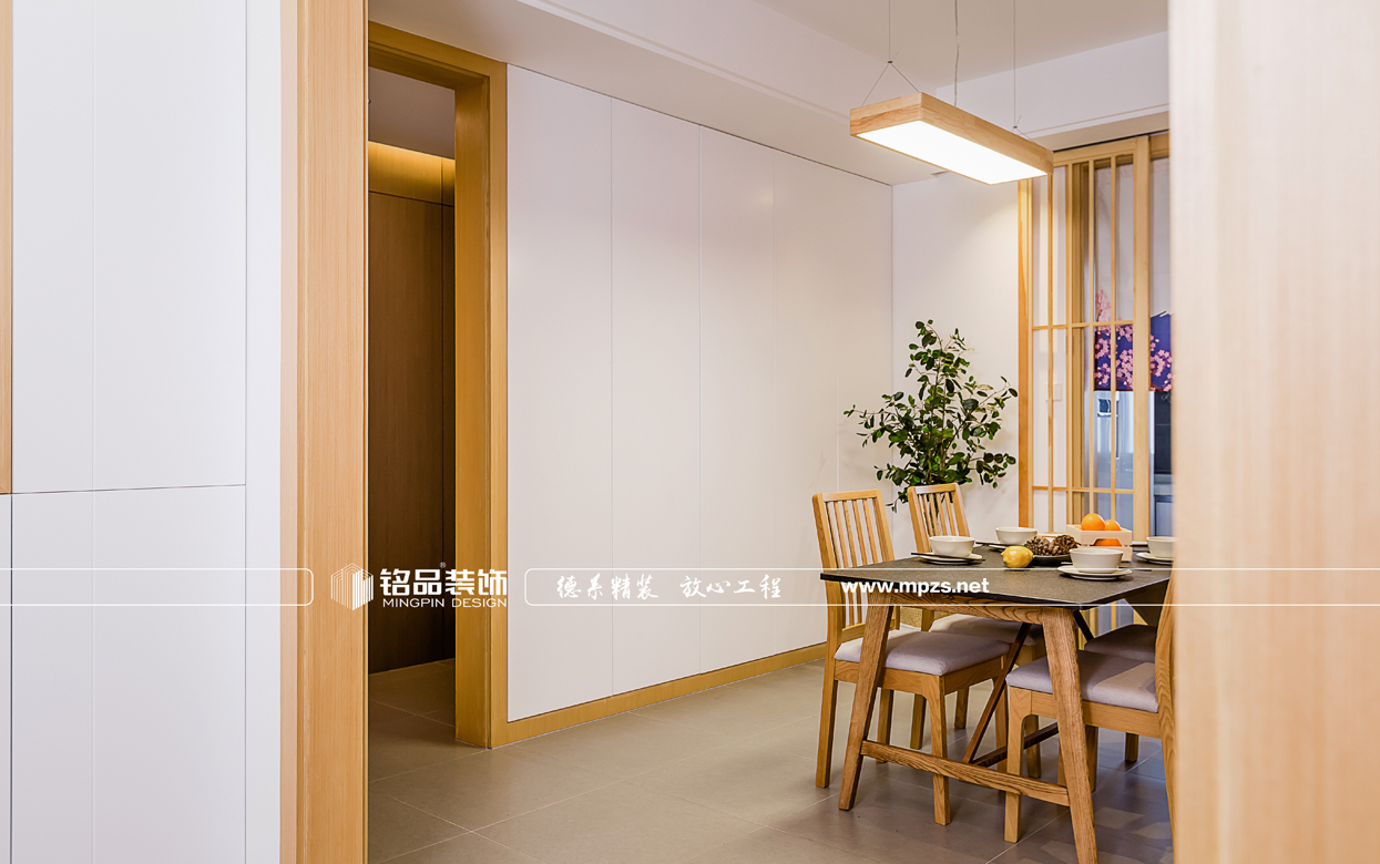 門廳玄關(guān)鞋柜加深的設(shè)計大大提高了儲納收藏的空間,因?yàn)椴蛷d空間有衛(wèi)生間、廚房、和兩個通道,比較破碎,故此在餐廳空間的設(shè)計時 把衛(wèi)生間的的門與墻面做了隱形門的設(shè)計,壁畫也突出了日式的風(fēng)格。書房兼顧儲物收納、休閑娛樂以及睡眠的功能