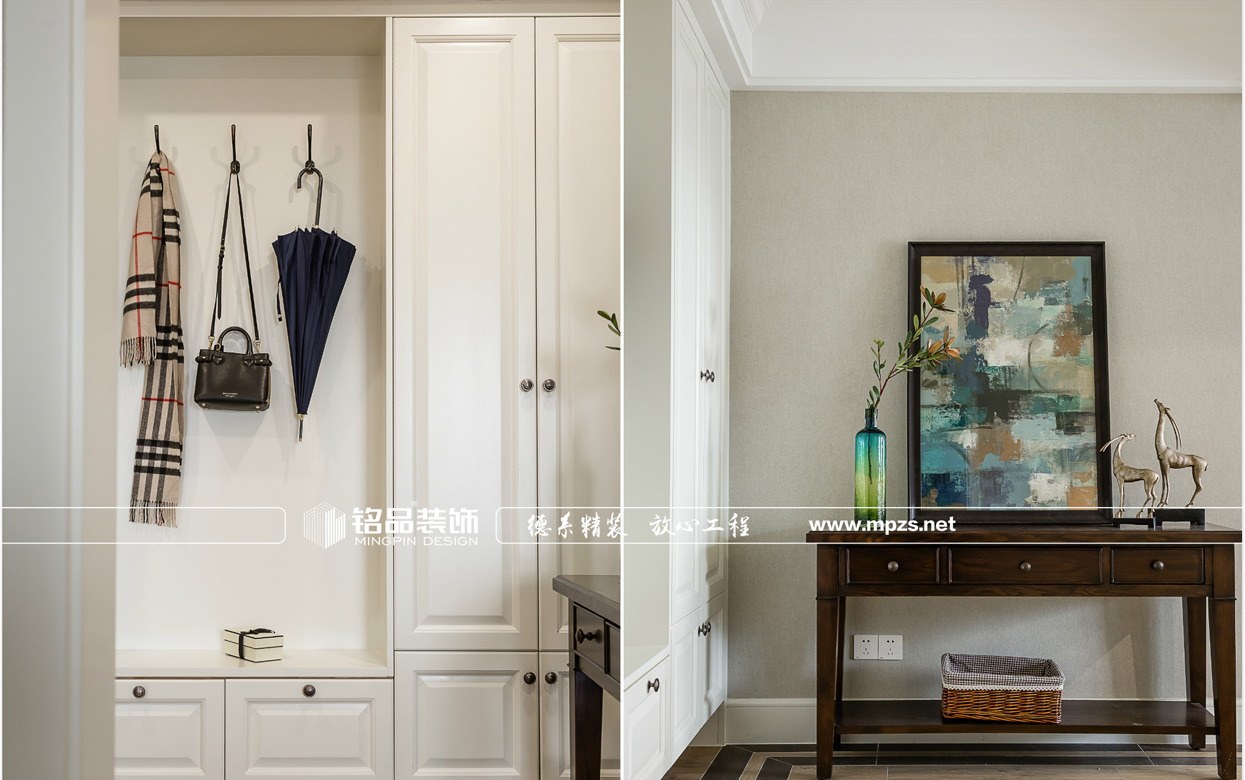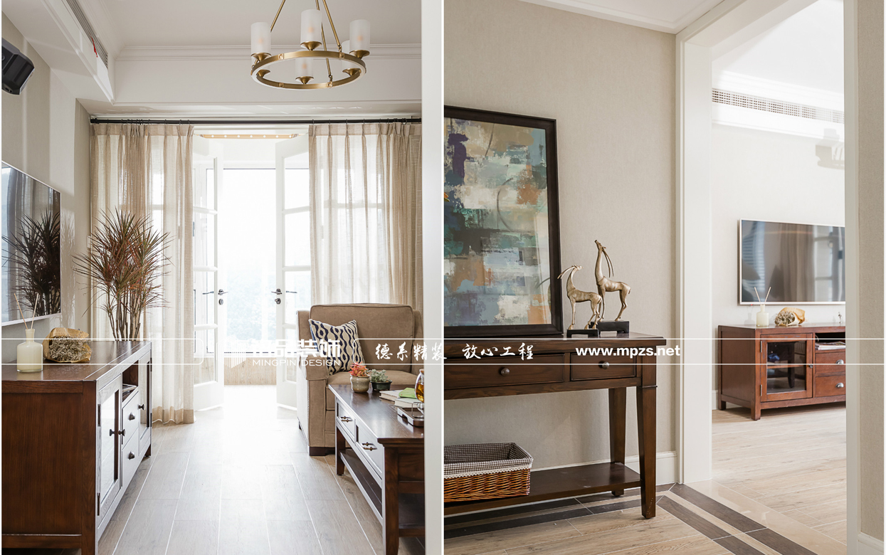 進(jìn)門處把房間的一面墻改成全落地玻璃隔斷,讓室內(nèi)光線更明亮。餐廳邊墻該成整體的邊柜連同冰箱一起現(xiàn)代感十足。個性的墻紙和直線條造型的大理石臺面組成了簡約時尚的電視背景。主臥的亮點是床背景的斑馬紋墻紙,醒目霸氣。主衛(wèi)也改成了落地玻璃,就是為了業(yè)主前期要求的浴缸,讓他在泡澡時更享受。小孩房把飄窗改成了書桌增加實用性。 整體感覺,簡潔明快,灰白色的運(yùn)用構(gòu)成了空間的美感。