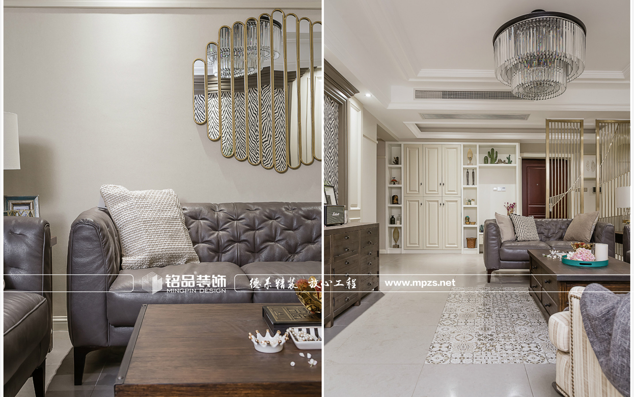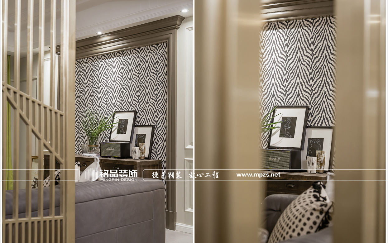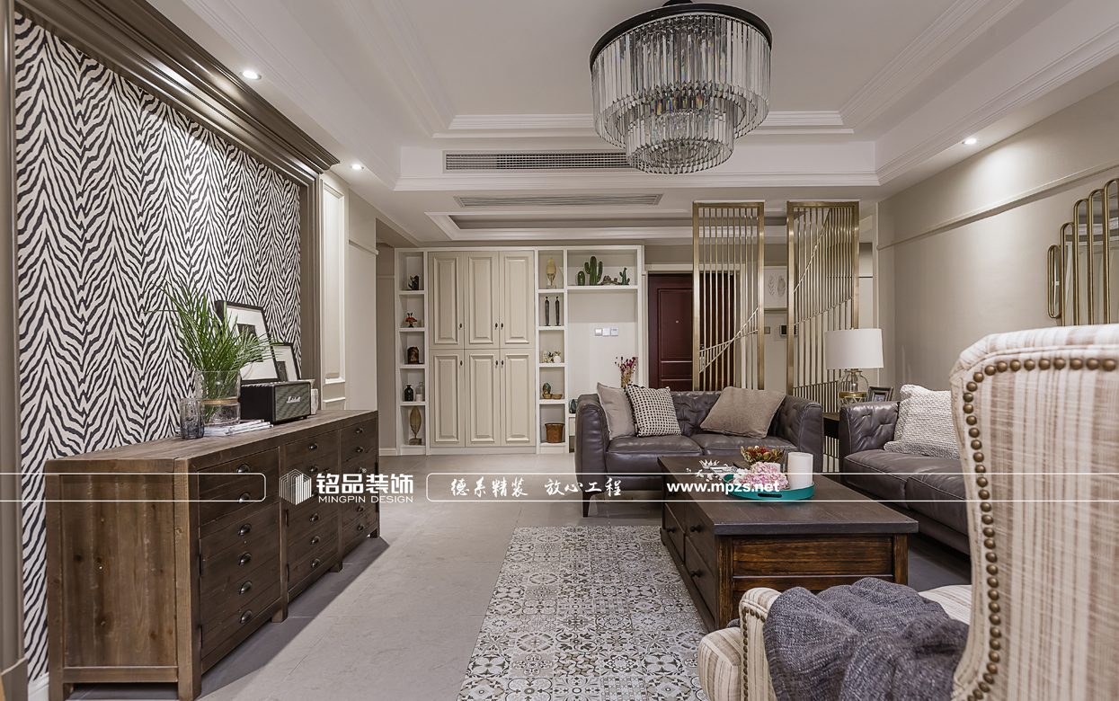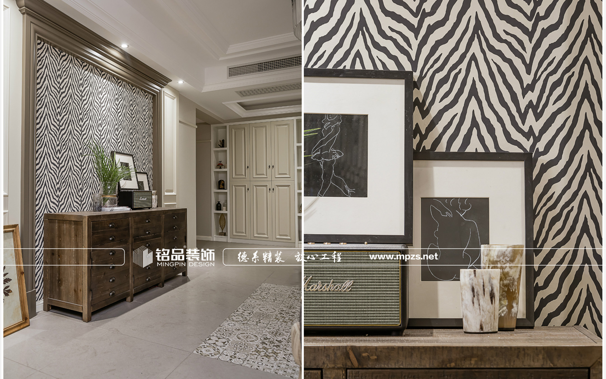 這所美式公寓,客廳空間以灰色調(diào)為主,電視背景墻個性斑馬紋墻紙,搭配深咖色美式休閑家具,提升了家居的協(xié)調(diào)性和空間感,將美式風(fēng)格展示出別樣的休閑感。為了調(diào)和空間的氣質(zhì),空間增加了不少綠植元素,營造出溫馨舒適的生活環(huán)境。