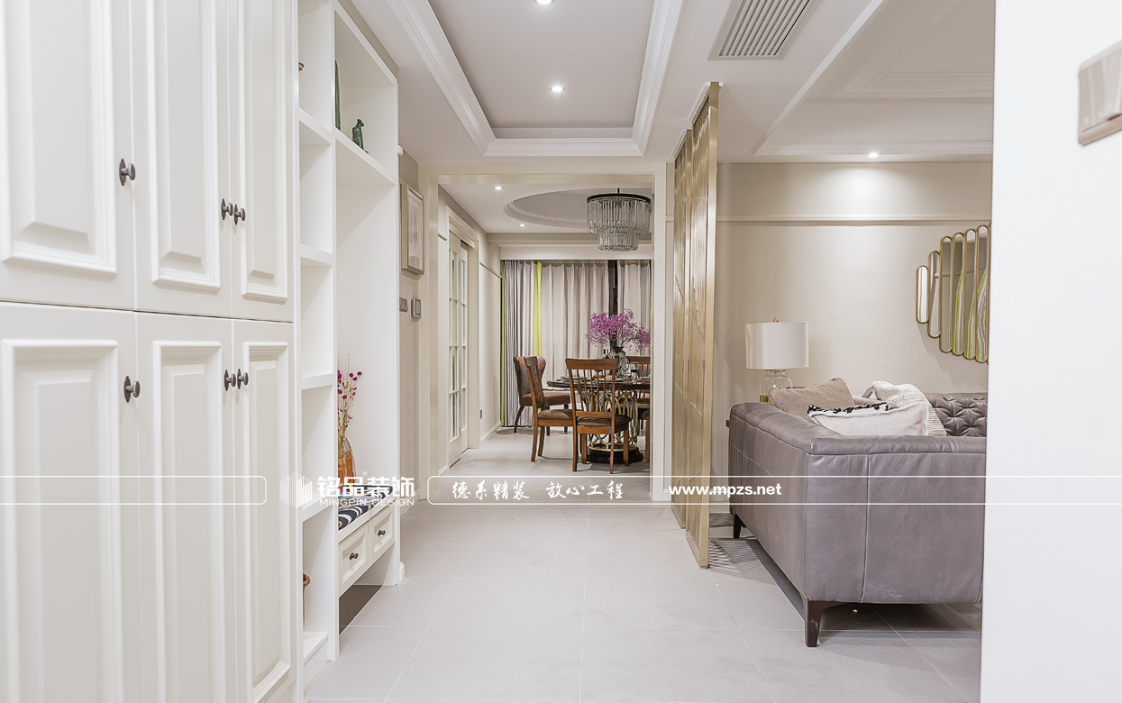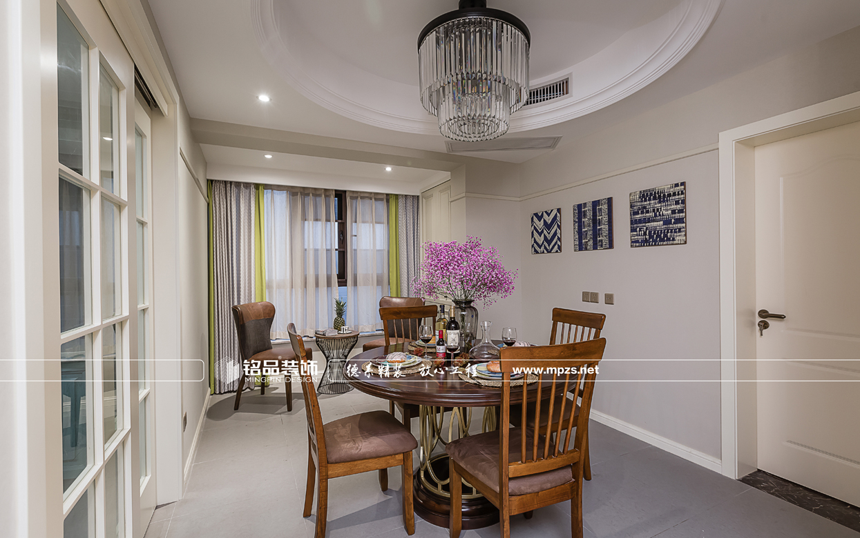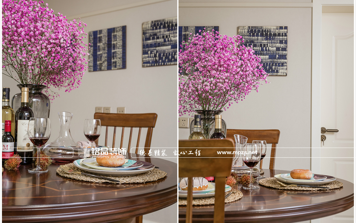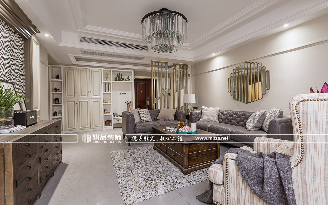 這所美式公寓,客廳空間以灰色調(diào)為主,電視背景墻個性斑馬紋墻紙,搭配深咖色美式休閑家具,提升了家居的協(xié)調(diào)性和空間感,將美式風(fēng)格展示出別樣的休閑感。為了調(diào)和空間的氣質(zhì),空間增加了不少綠植元素,營造出溫馨舒適的生活環(huán)境。